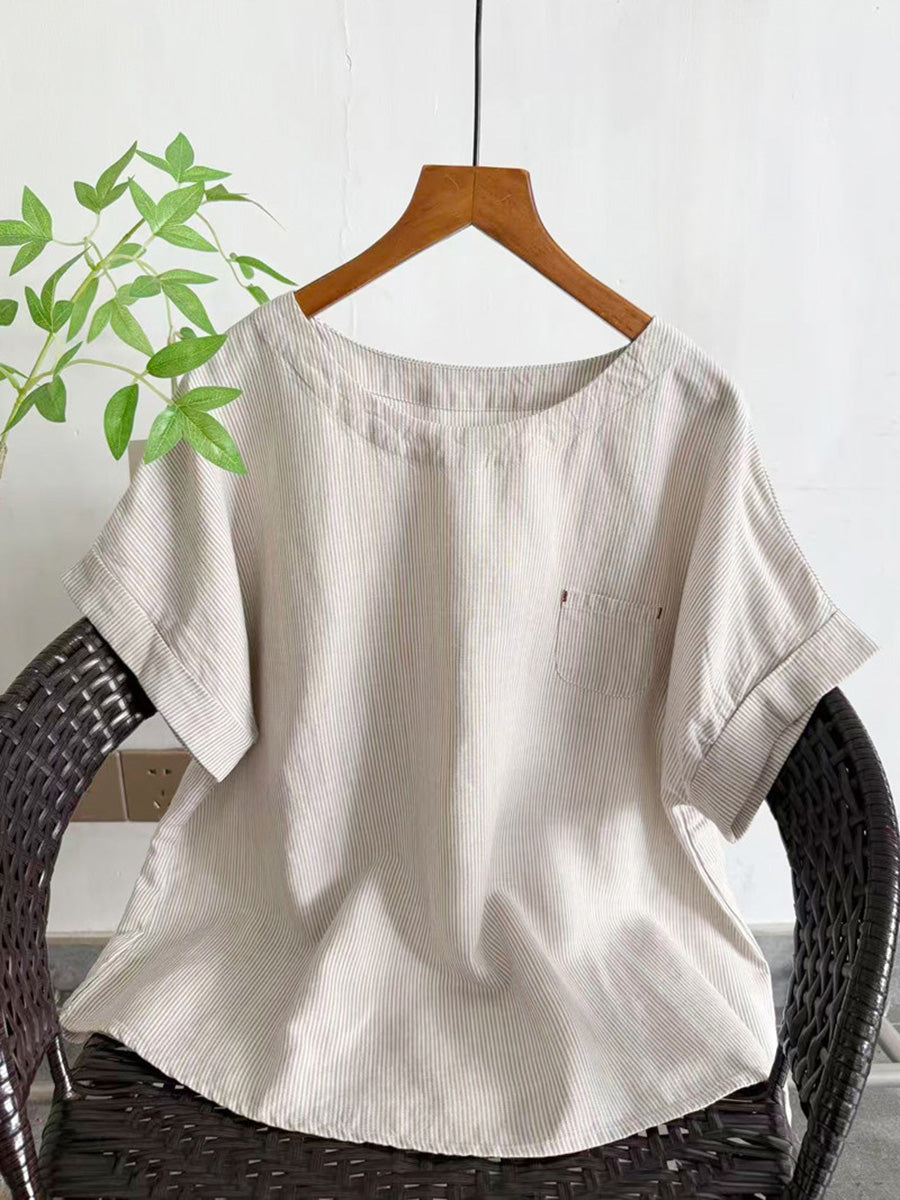Damen Sommerbluse Casal mit Streifen und Rundhalsausschnitt