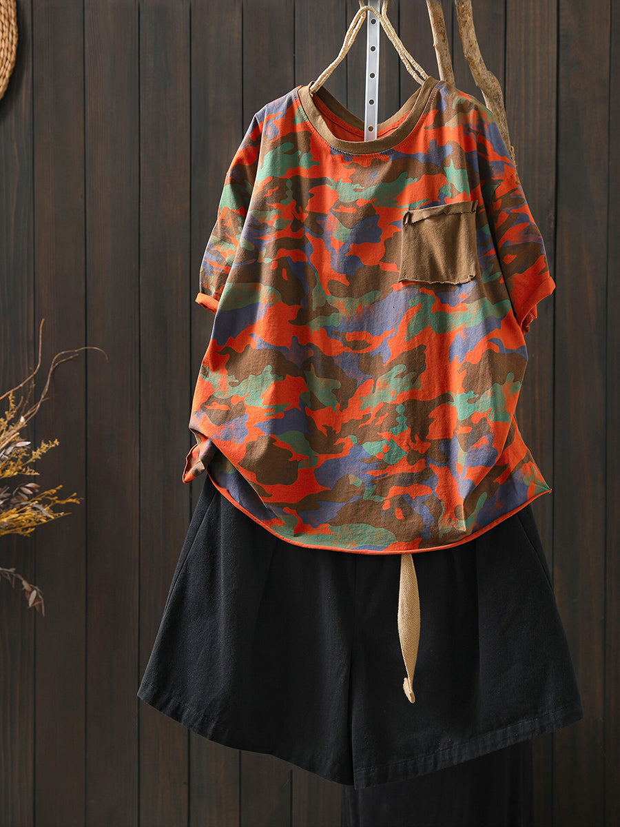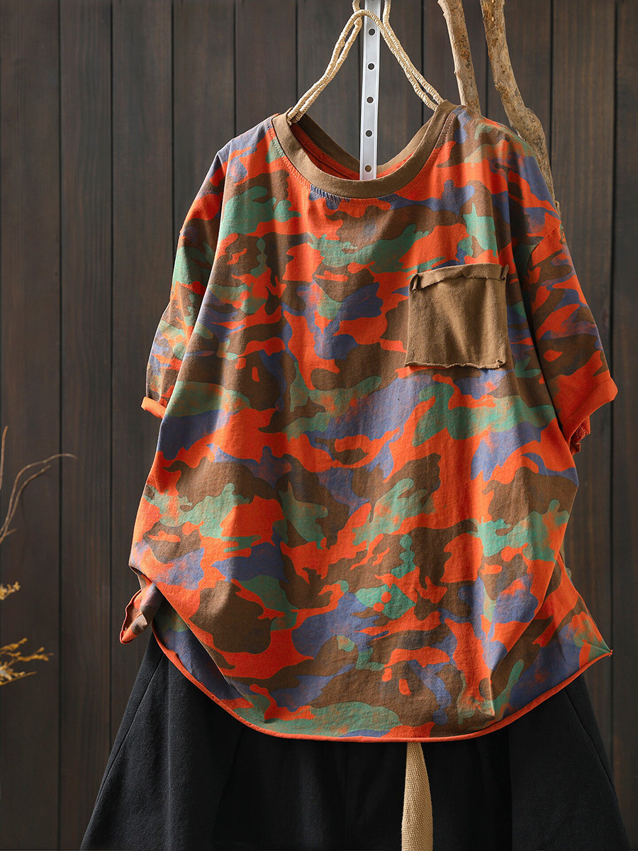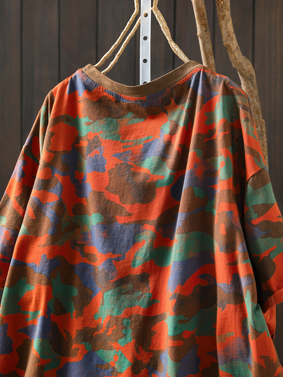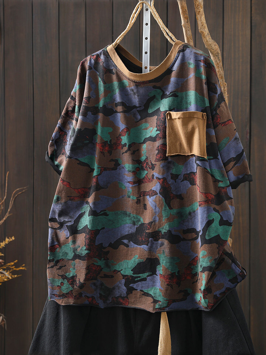 Damen Sommer Freizeit Camouflage Rundhalshemd