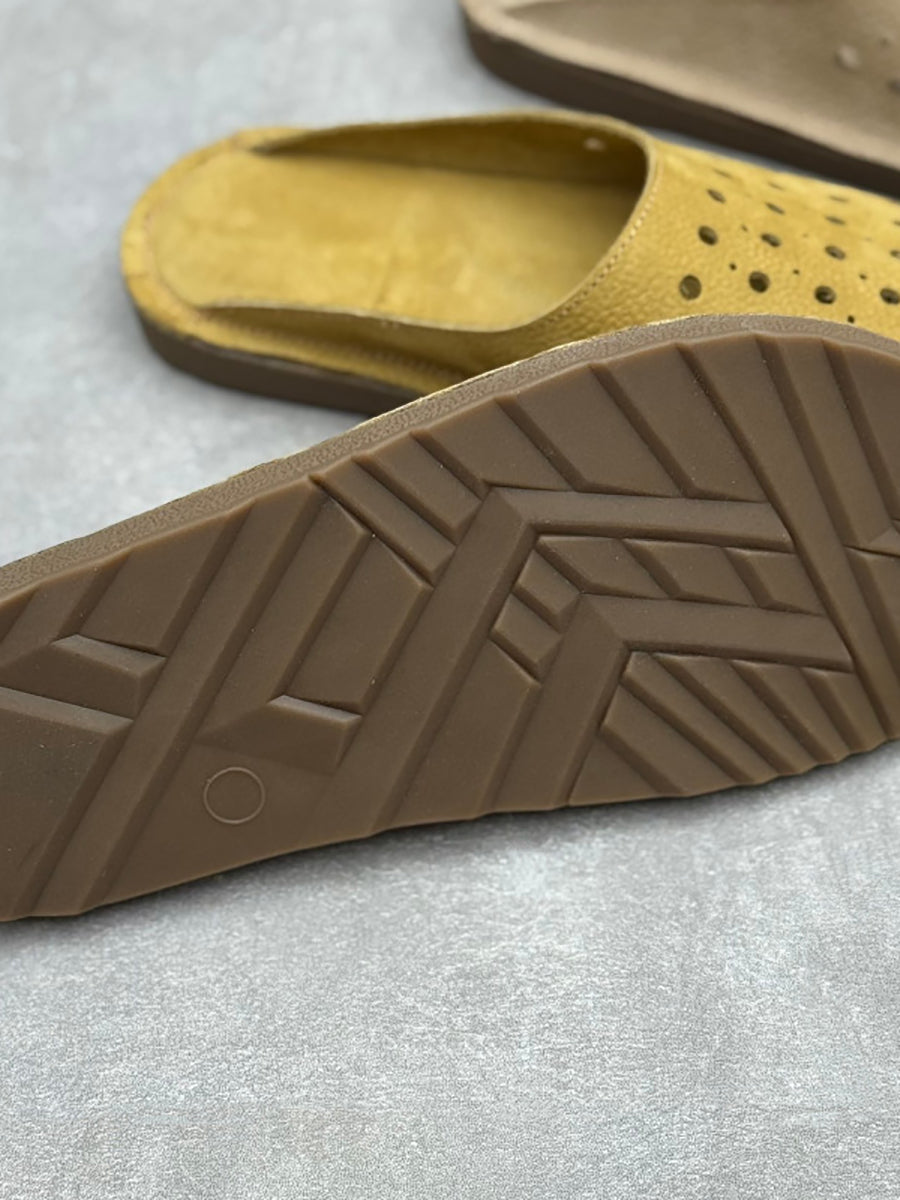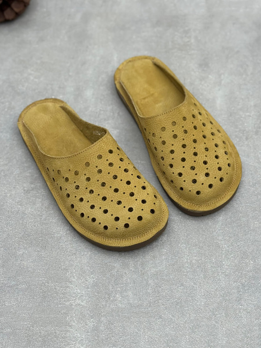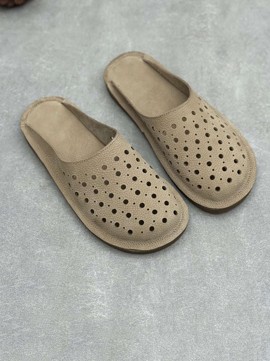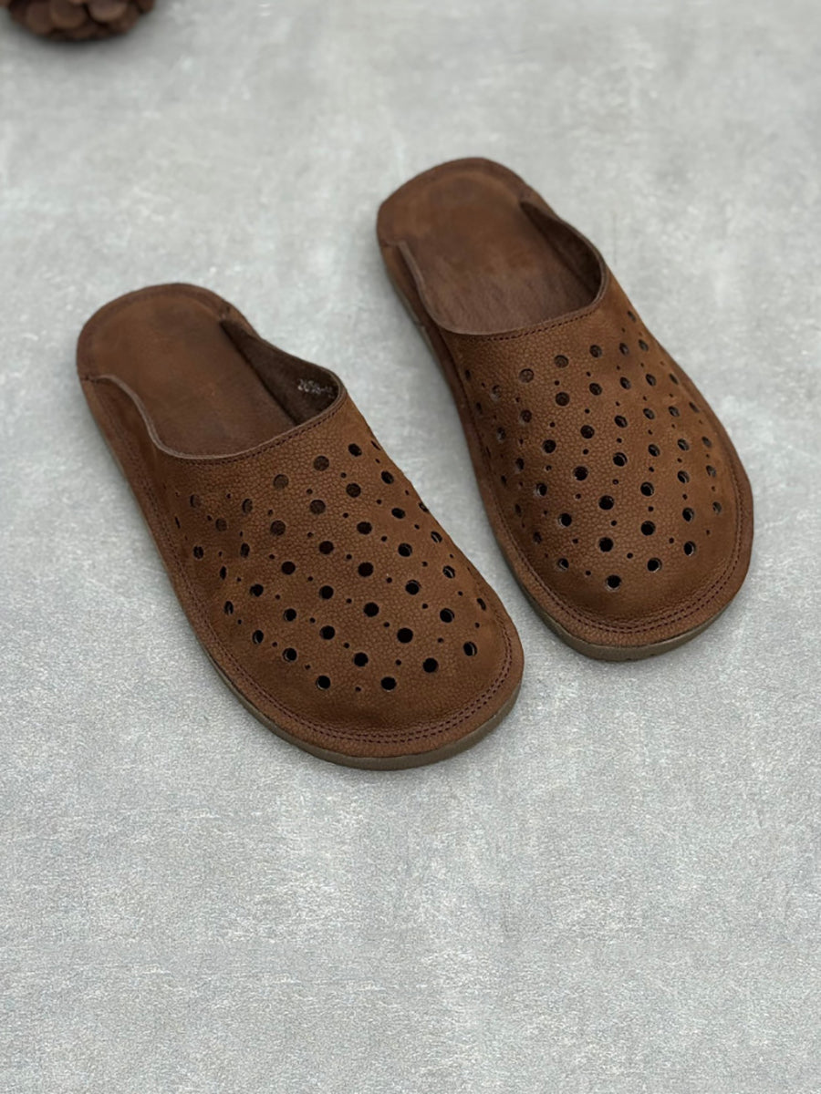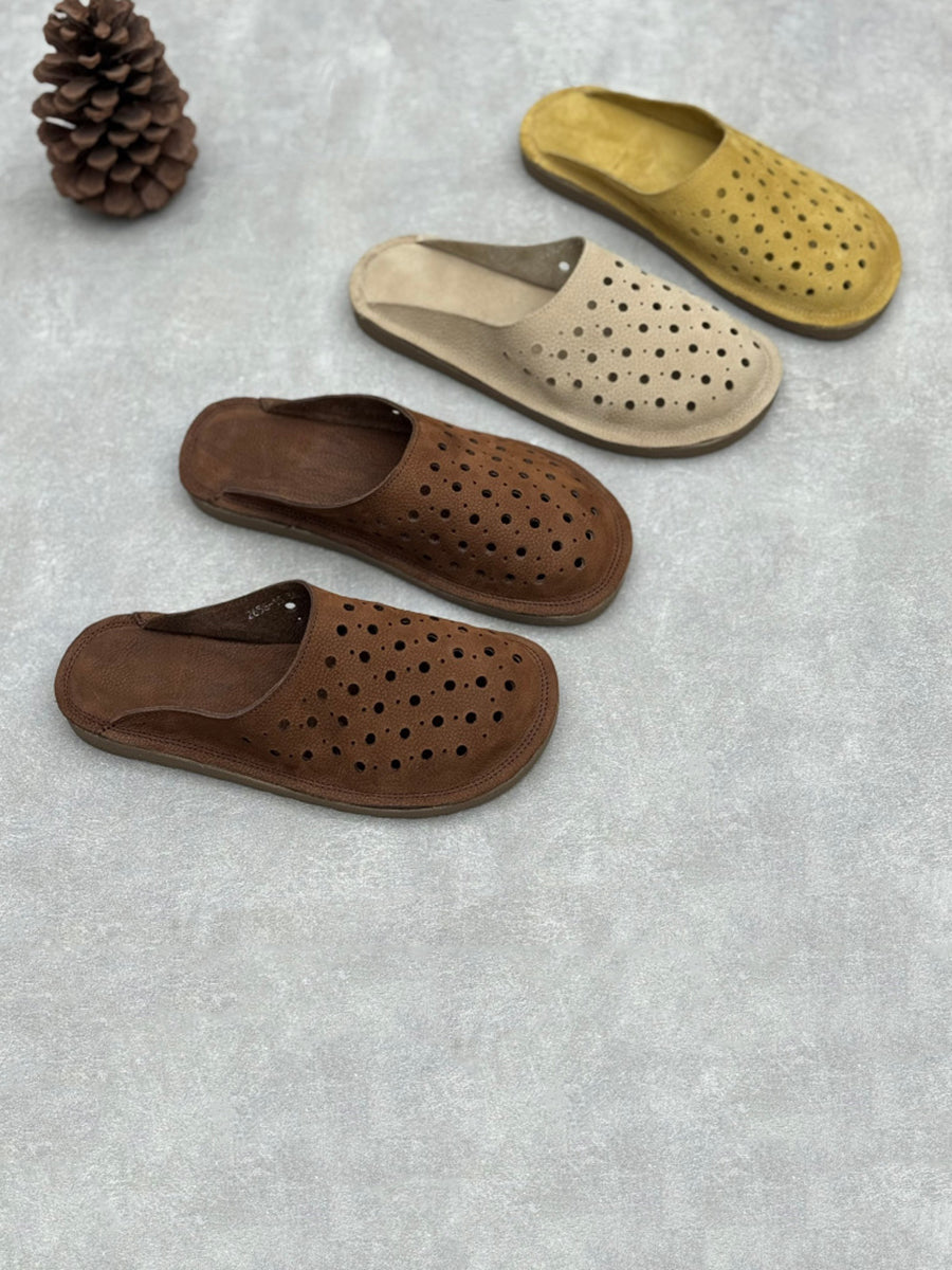 Damen Sommer Hausschuhe aus echtem Leder mit Lochmuster