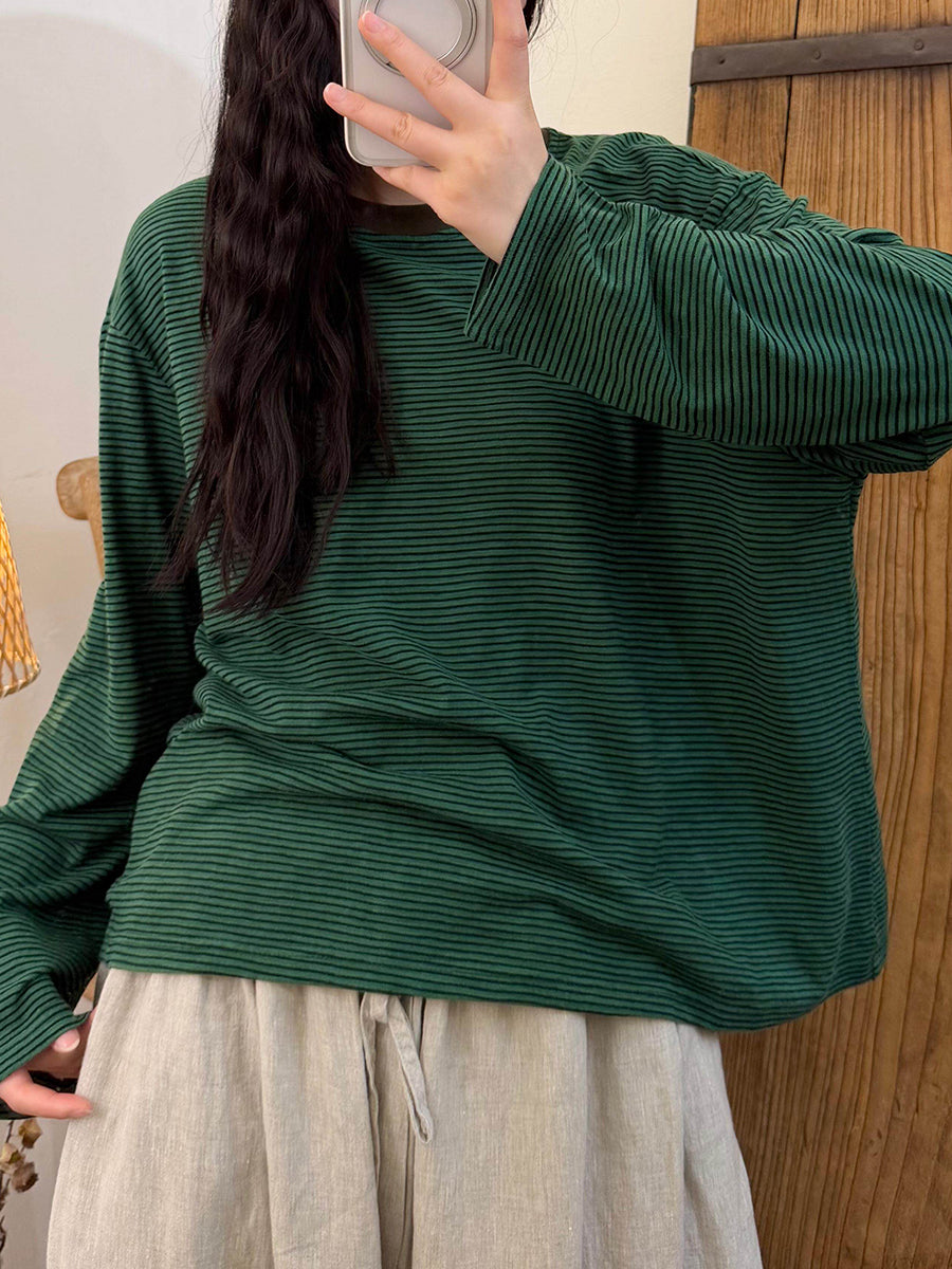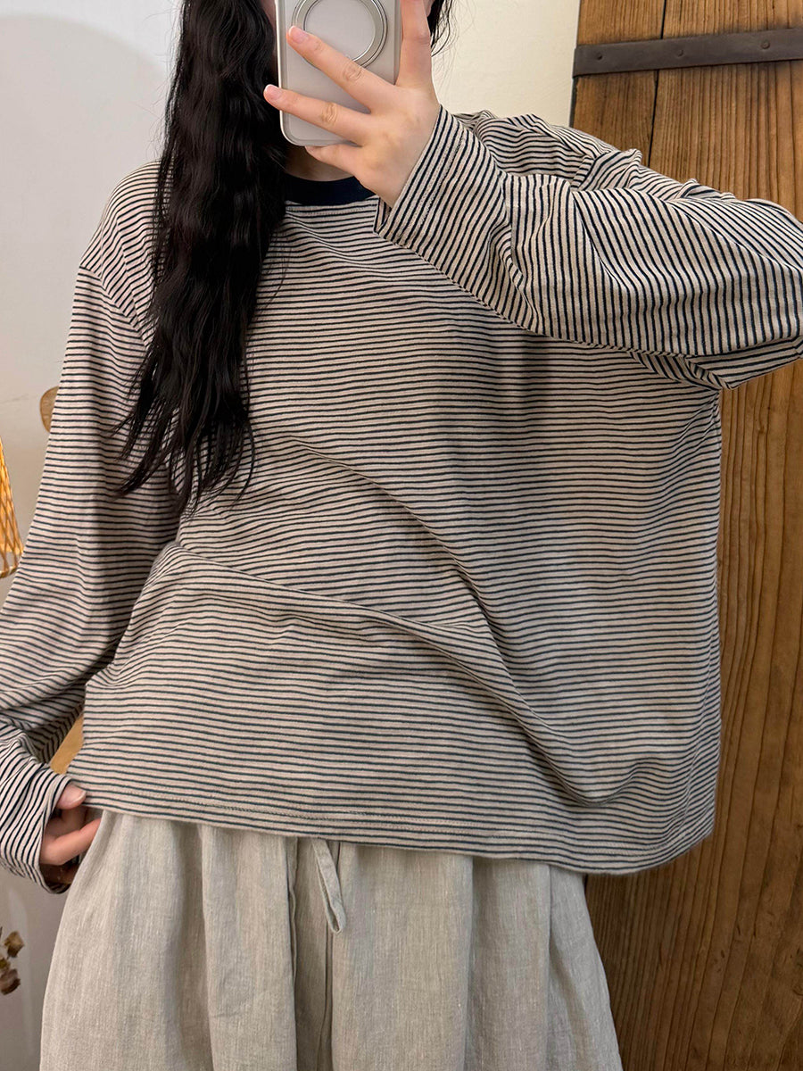 Sommerliche, lässige Damenbluse aus Baumwolle mit Streifenmuster und Rundhalsausschnitt