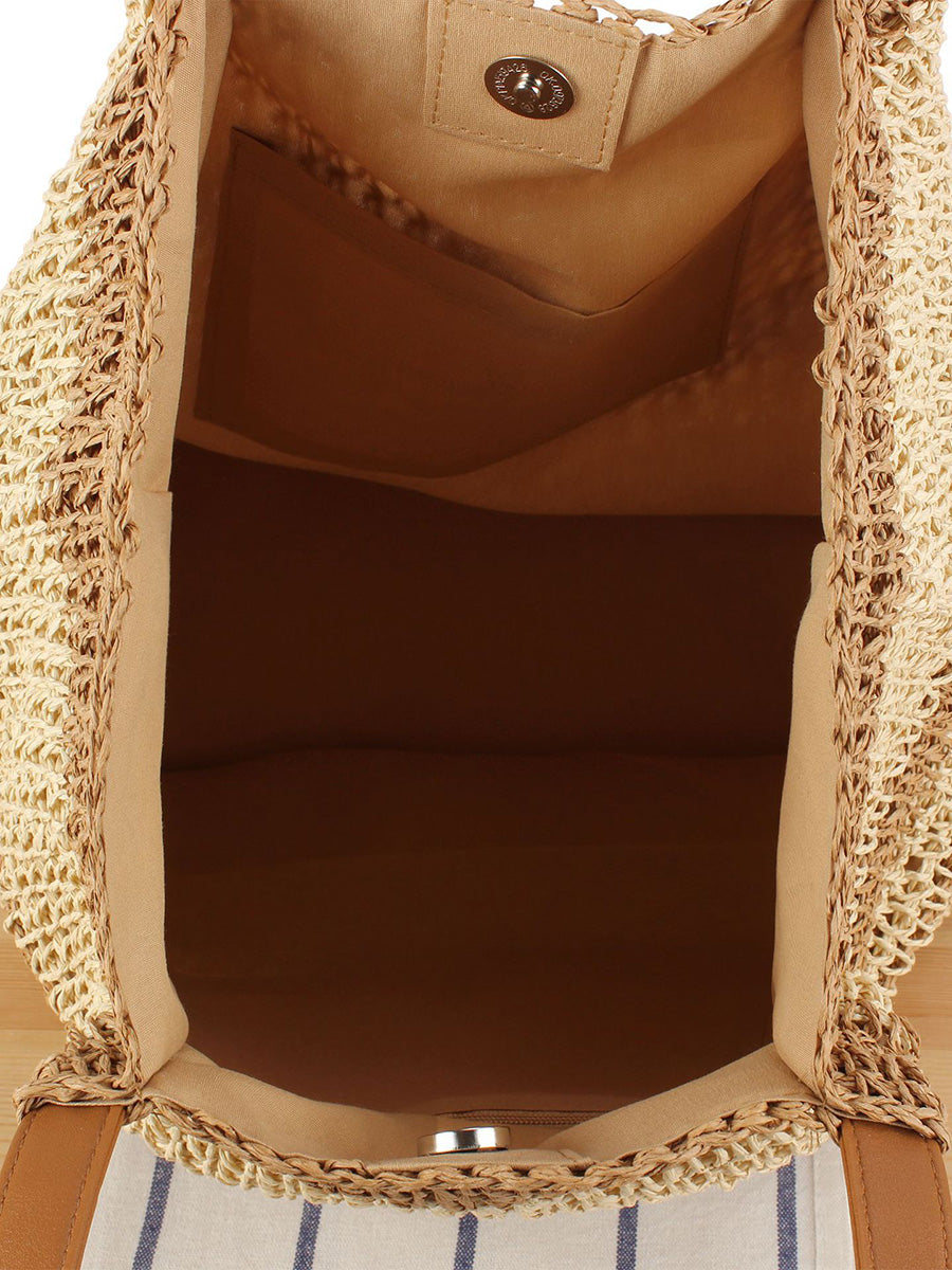 Damen Sommer Colorblock Stroh Gewebte Umhängetasche
