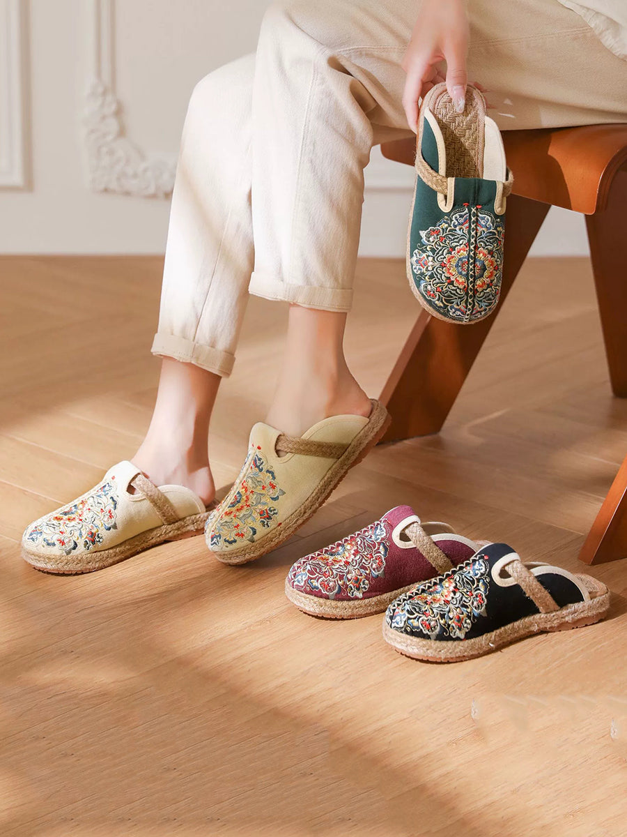 Damen Sommer Hausschuhe aus Canvas mit Stickerei
