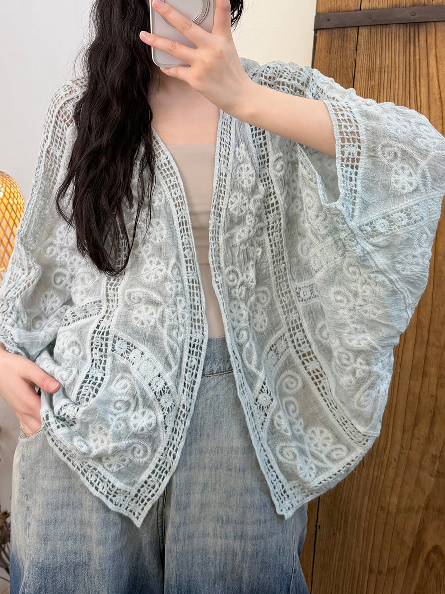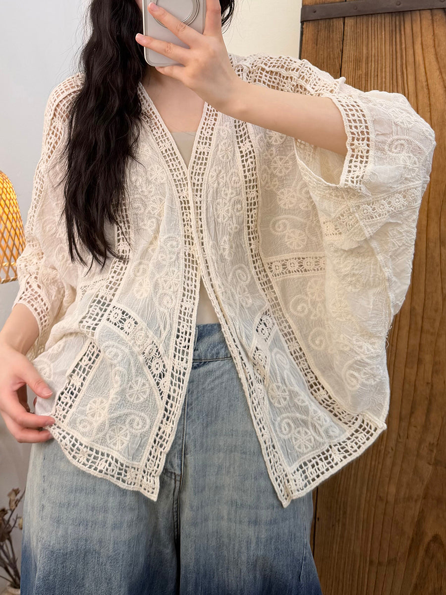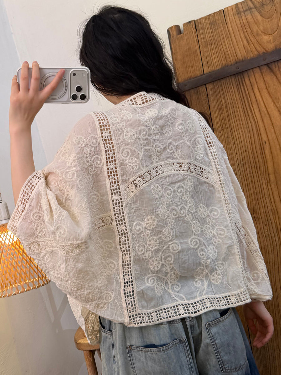 Damen Sommer bestickter V-Ausschnitt Baumwoll-Cadigan