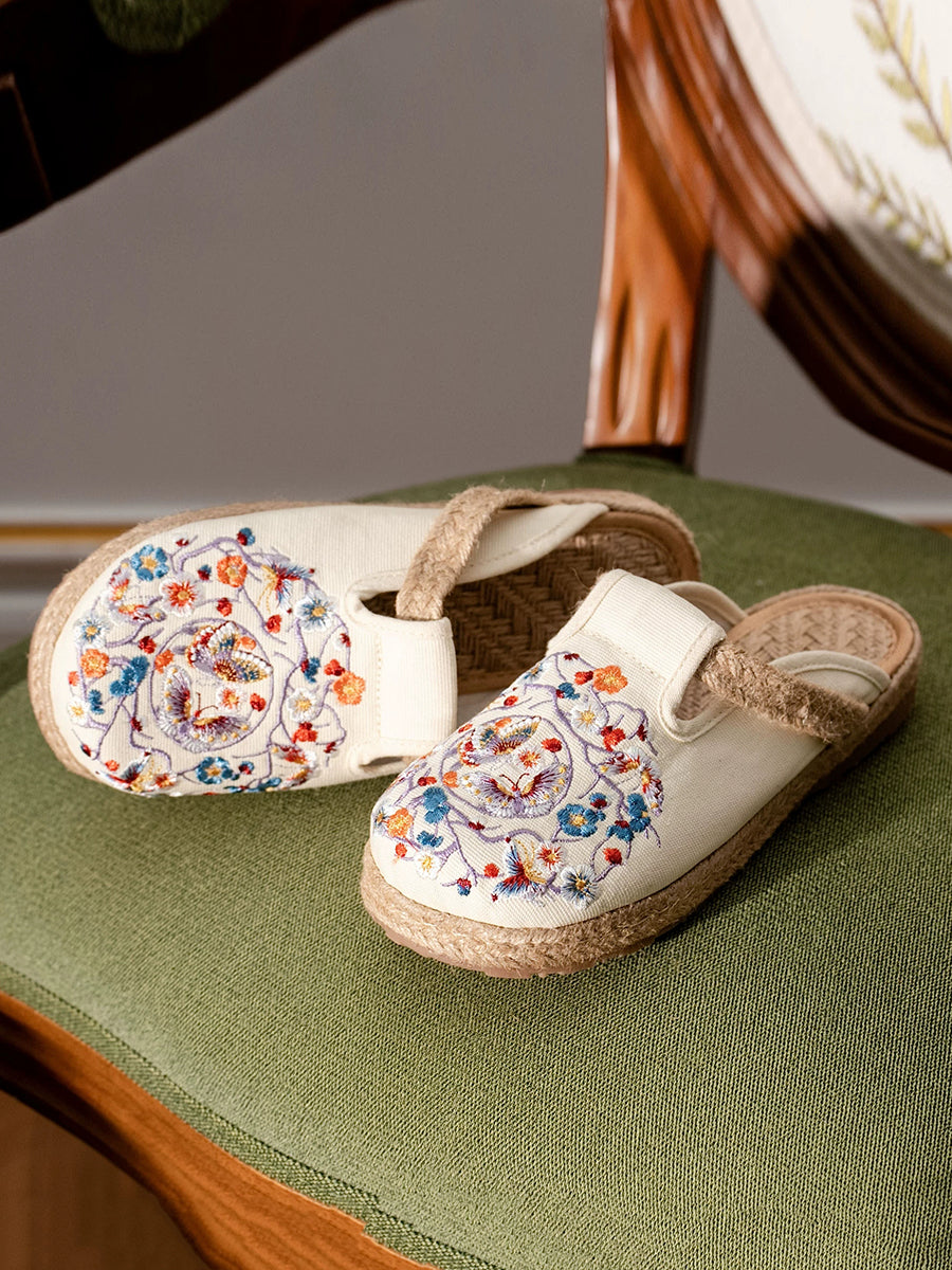 Damen Sommer Hausschuhe aus Canvas mit ethnischem Schmetterlingsstickerei-Muster