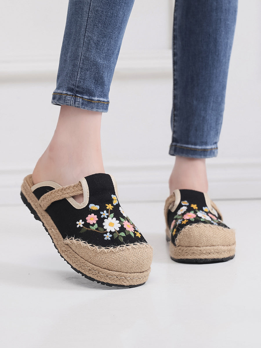 Damen Sommer Hausschuhe aus Canvas mit ethnischer Blumenstickerei