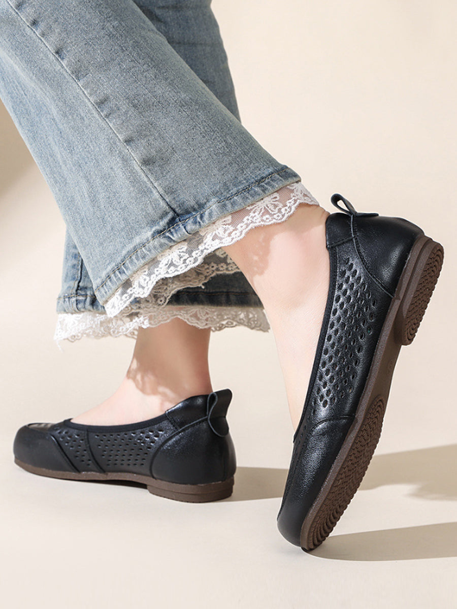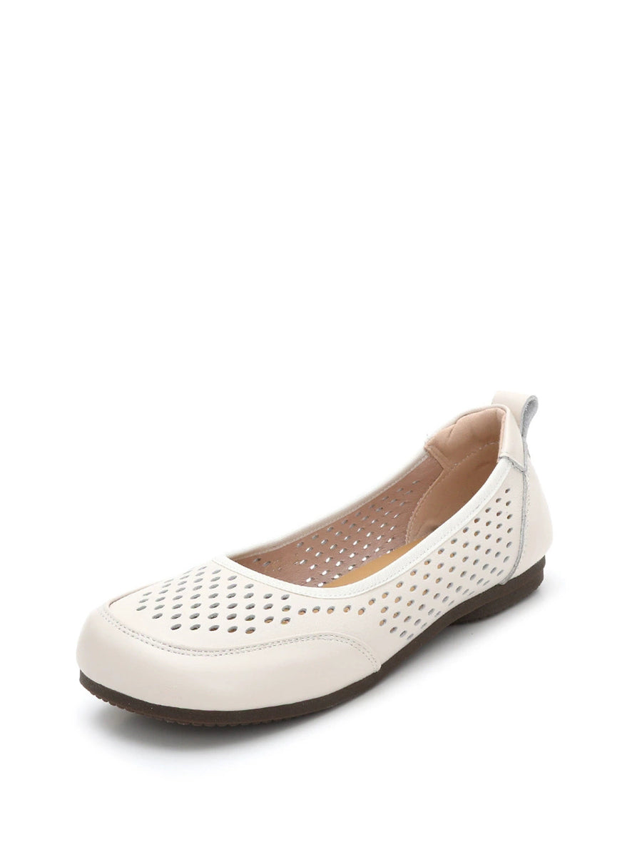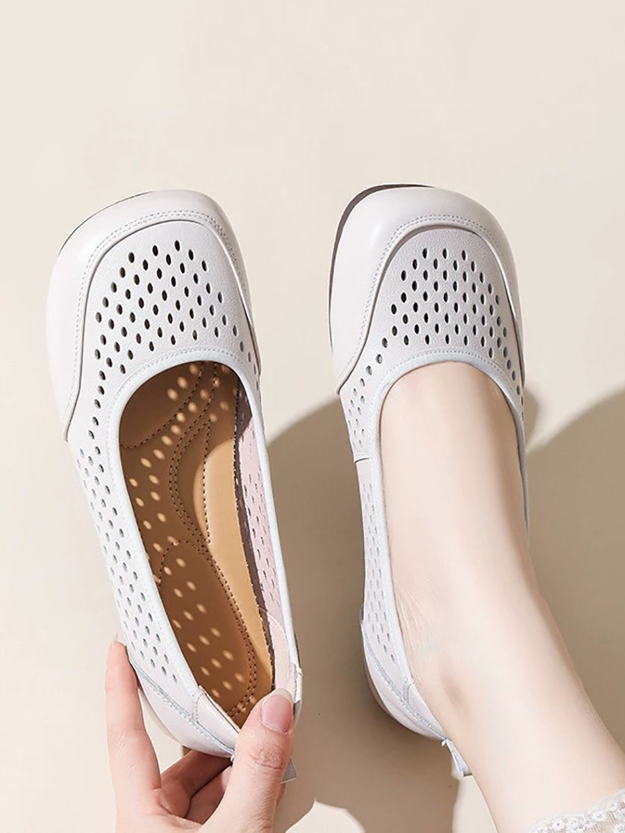 Damen-Sommersandalen aus echtem Leder mit Lochmuster