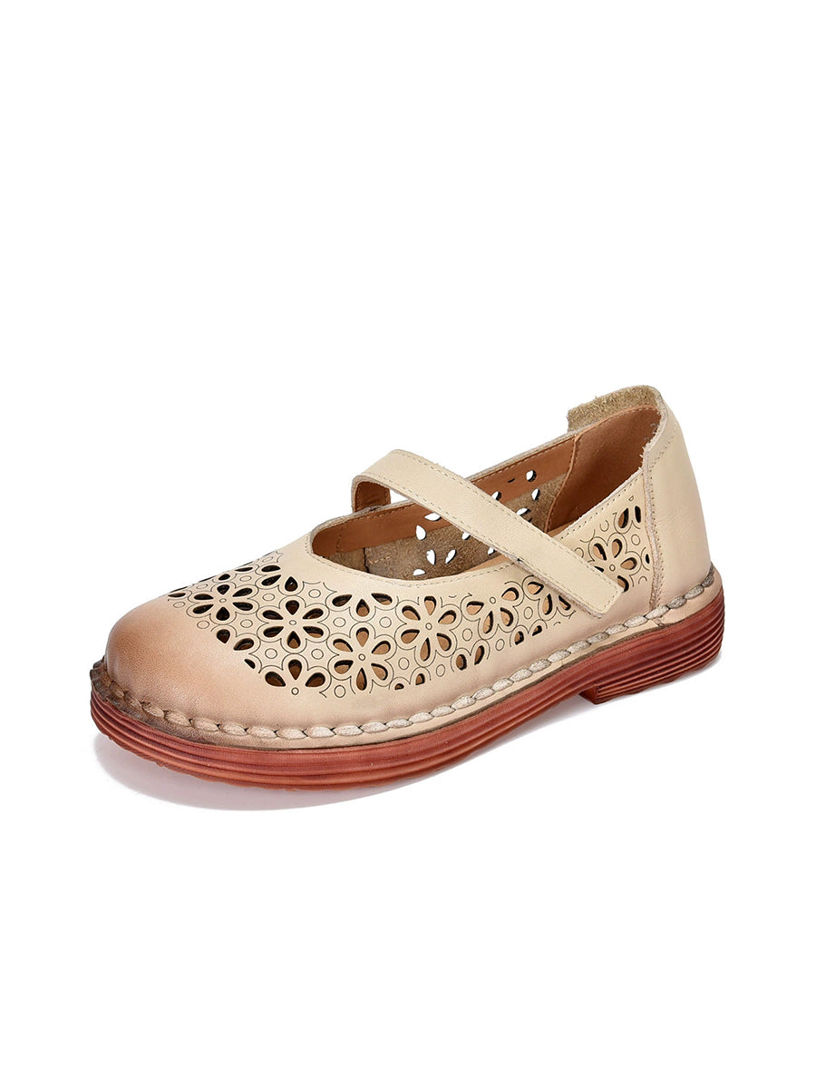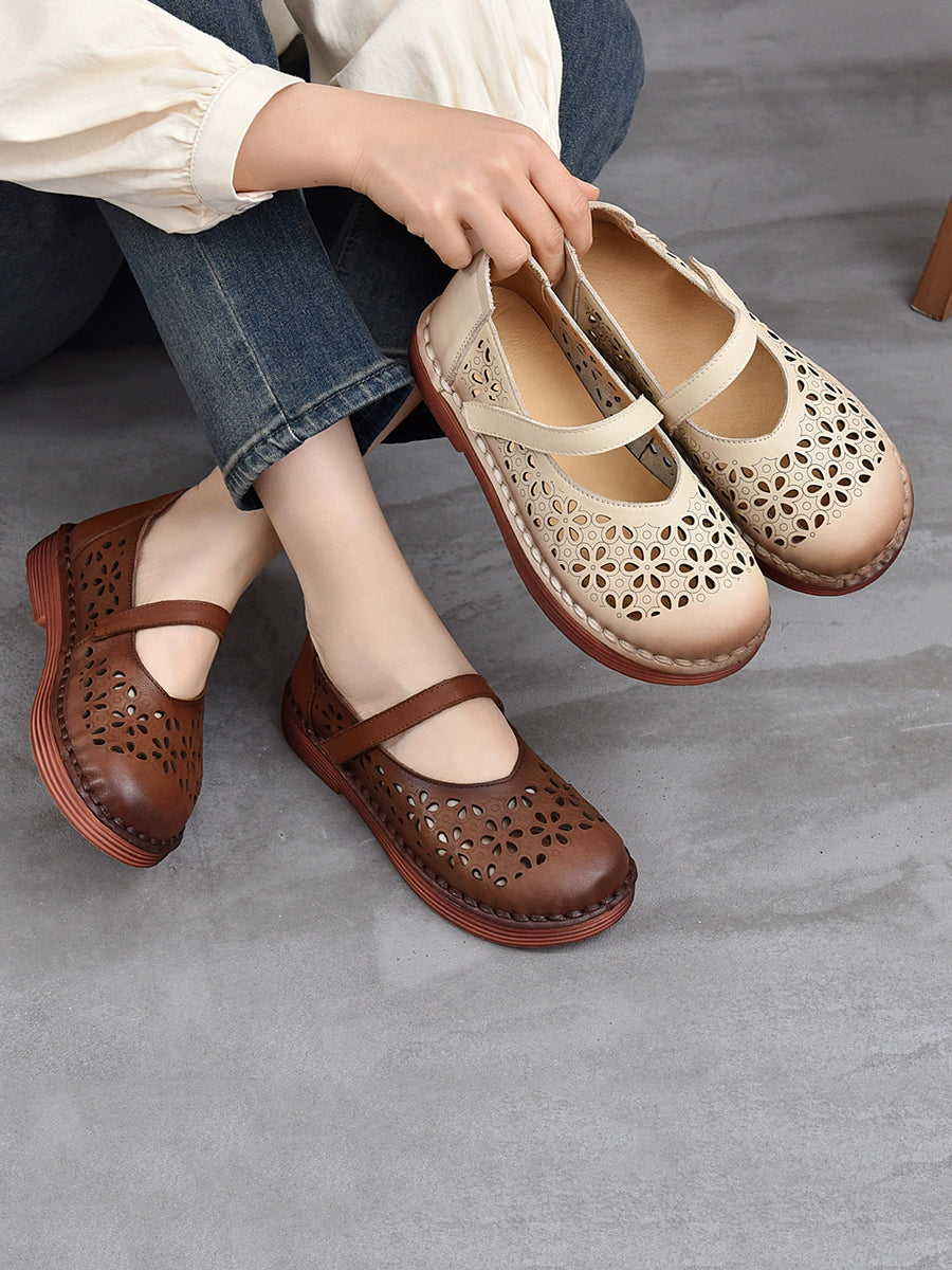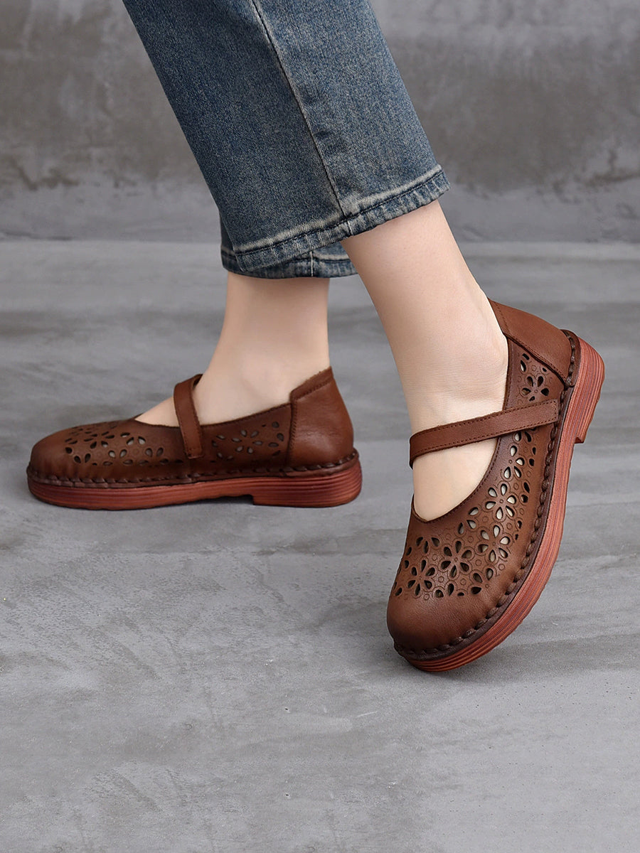 Damen Sommer Echtleder Schuhe mit Lochmuster