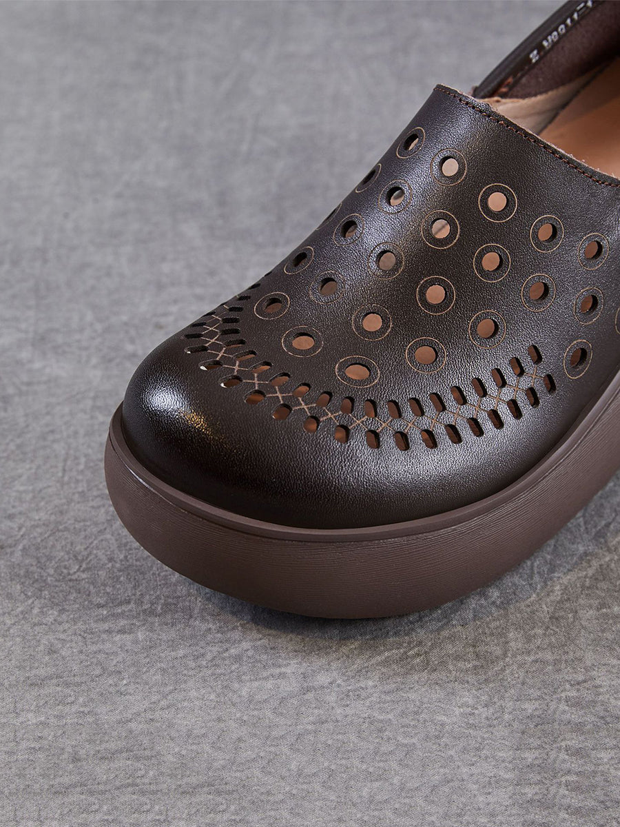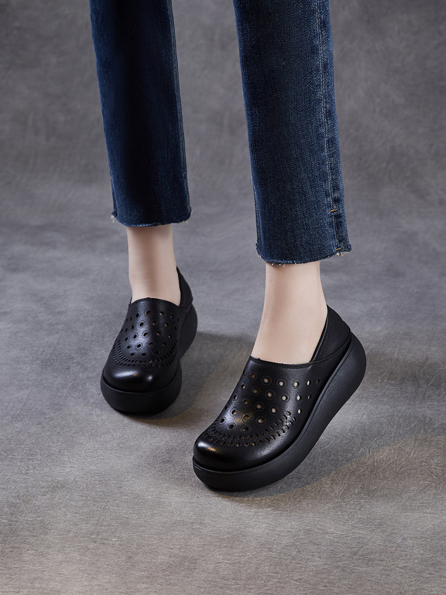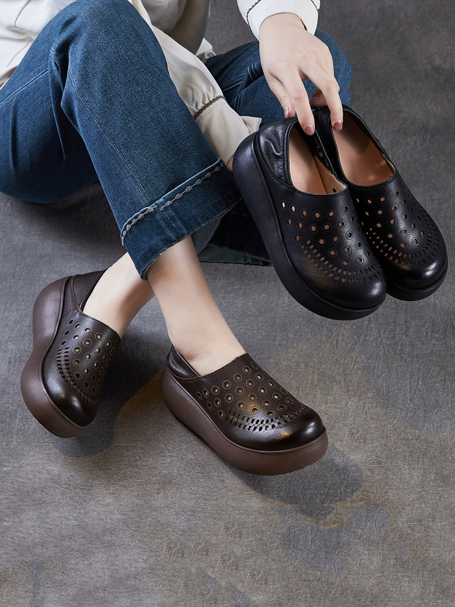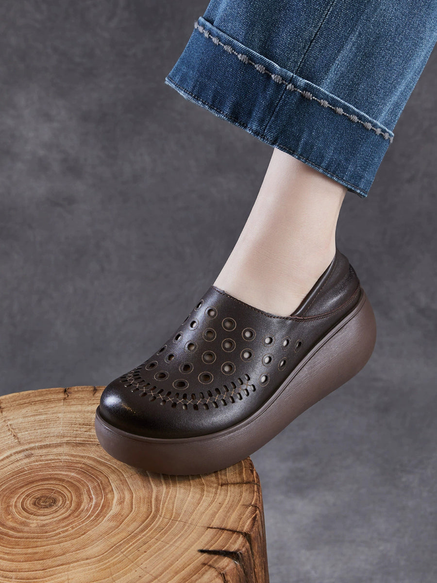Damen-Sommer-Plateauschuhe aus echtem Leder