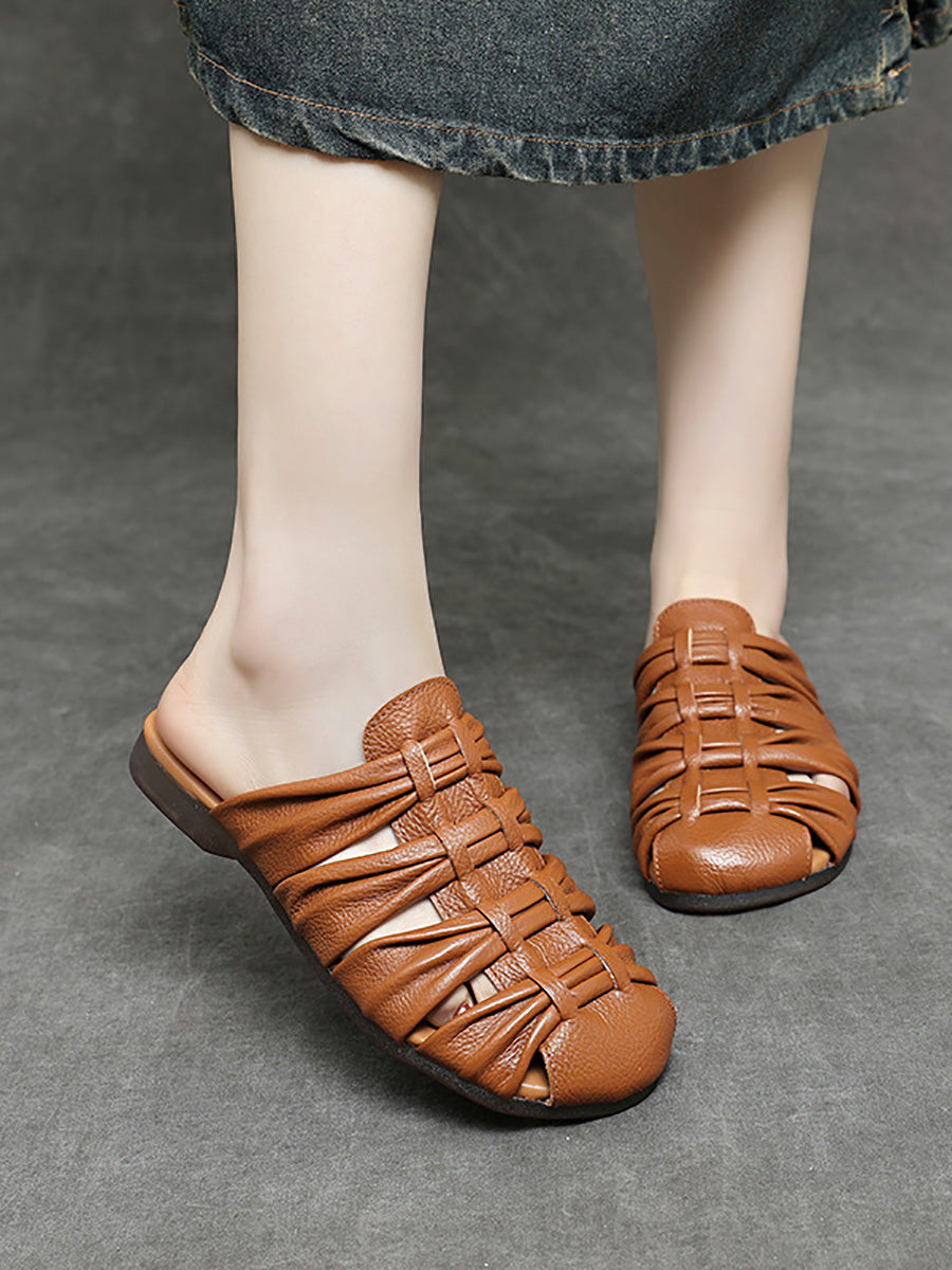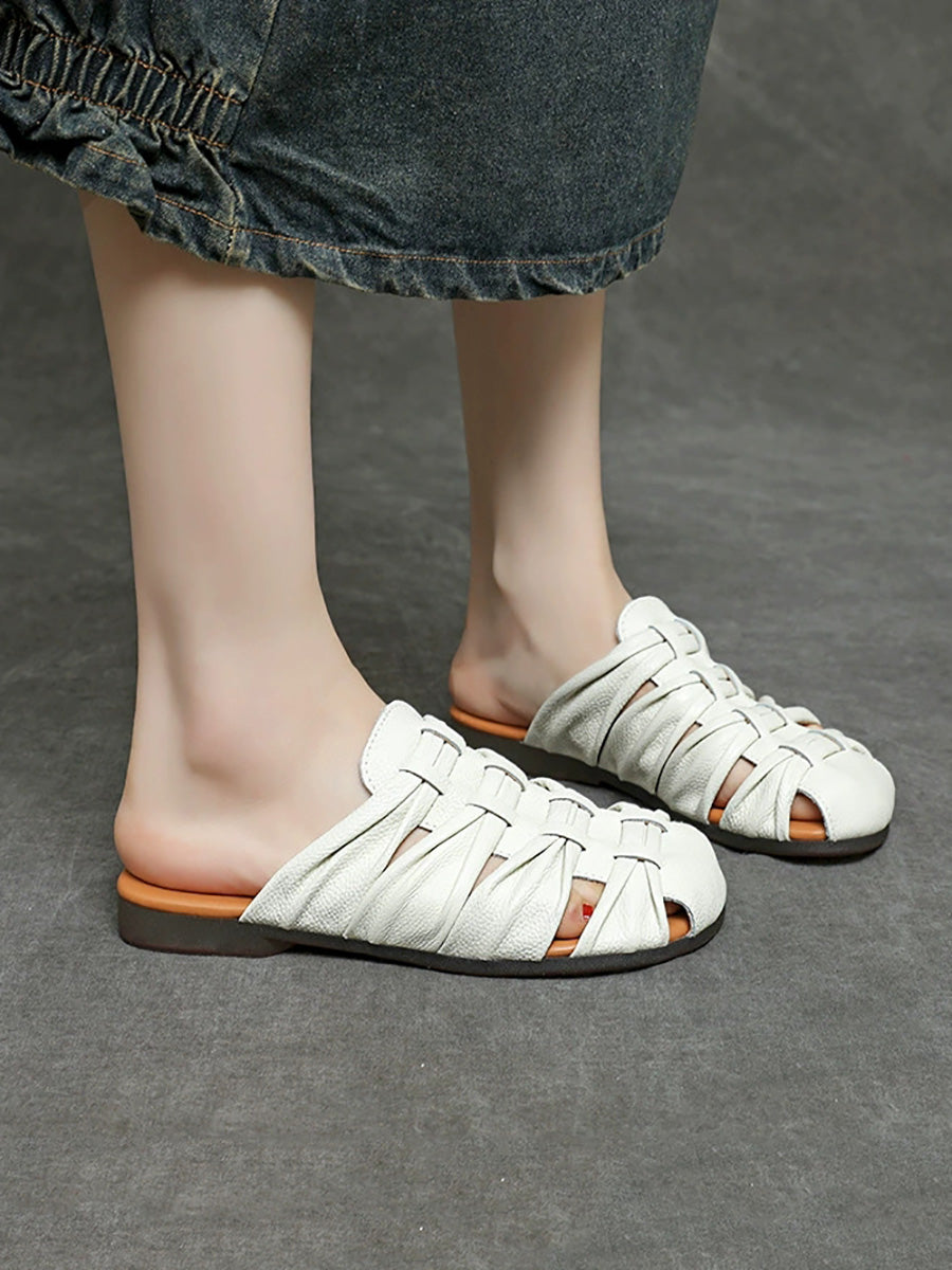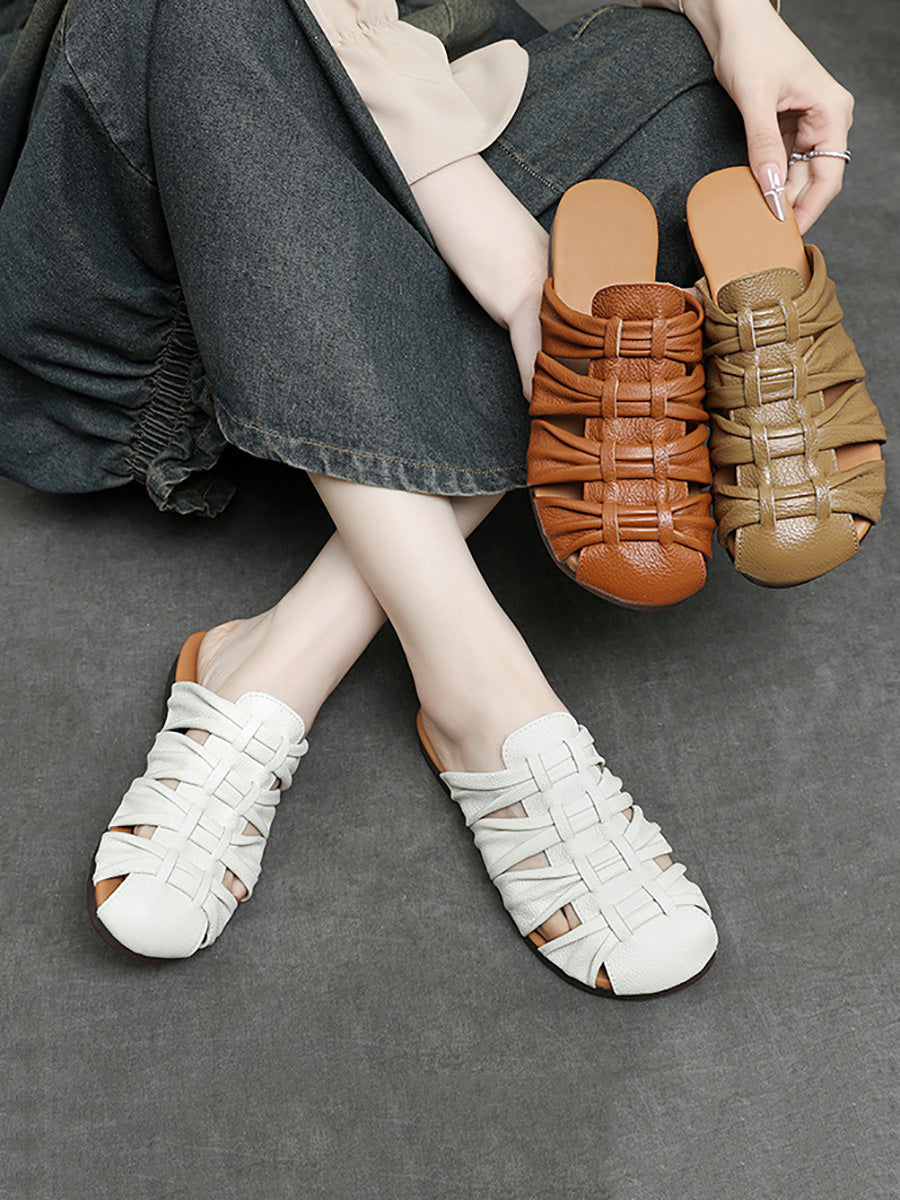 Damen-Sommerpantoffeln aus echtem Leder
