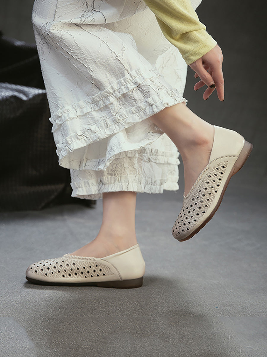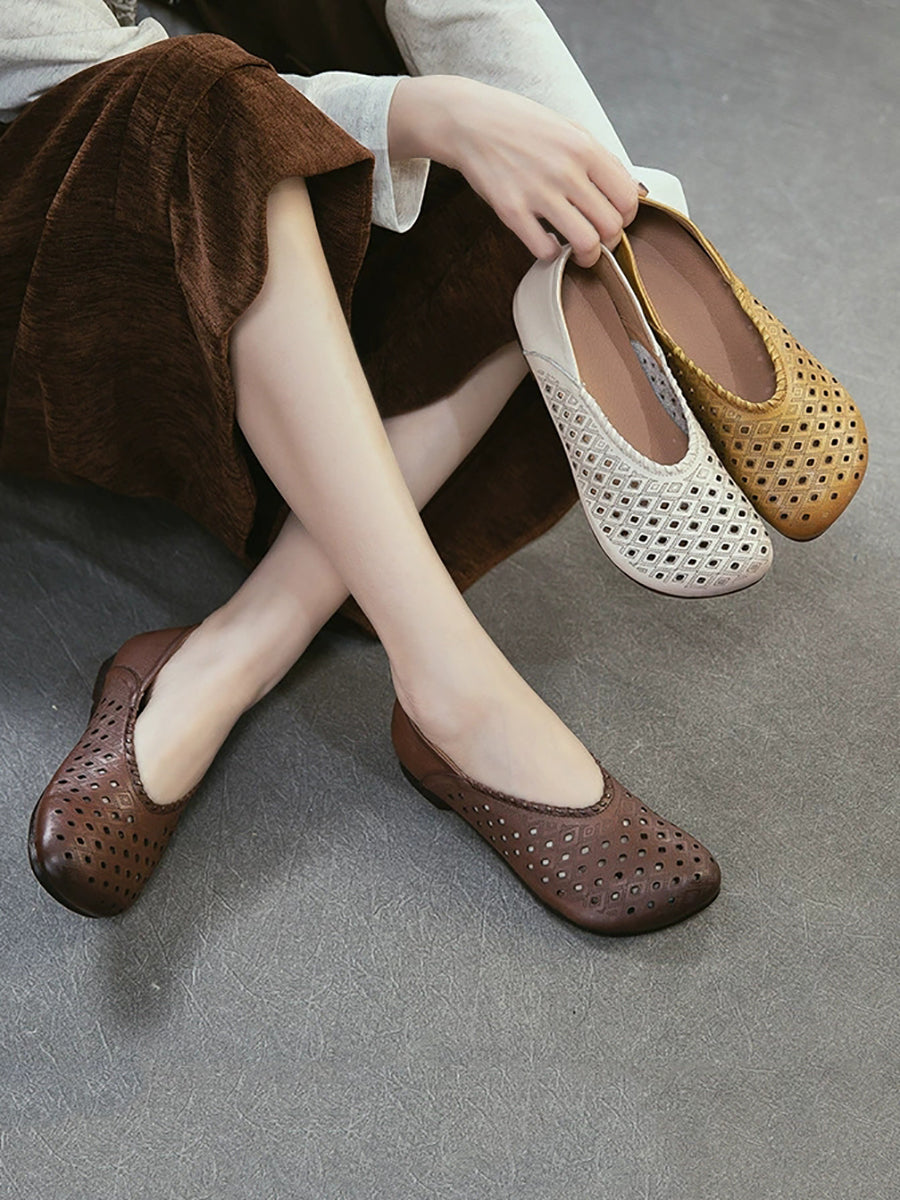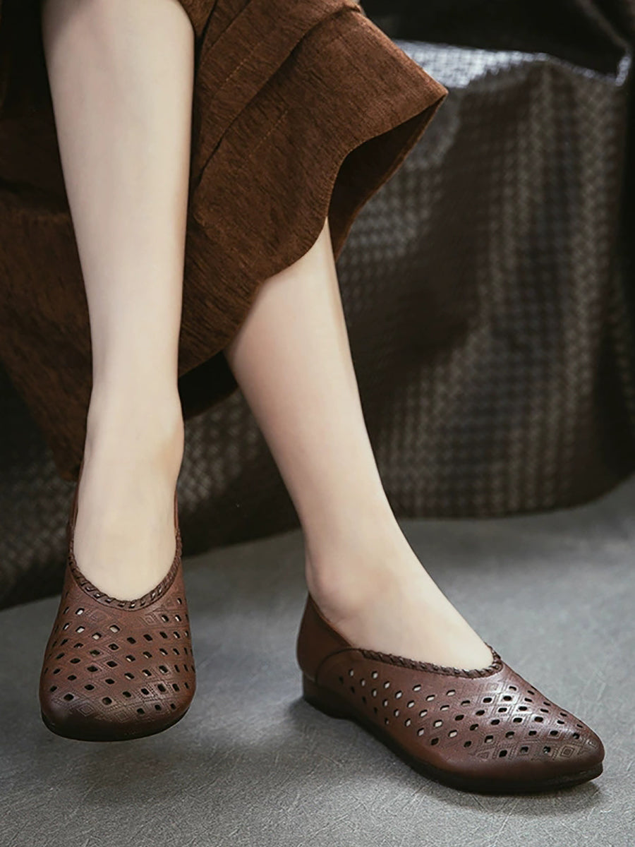 Damen Sommer-Sandalen aus Leder, flach und mit Löchern