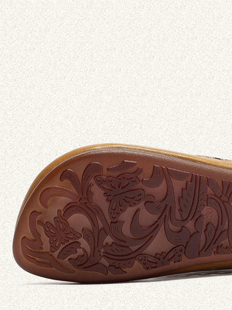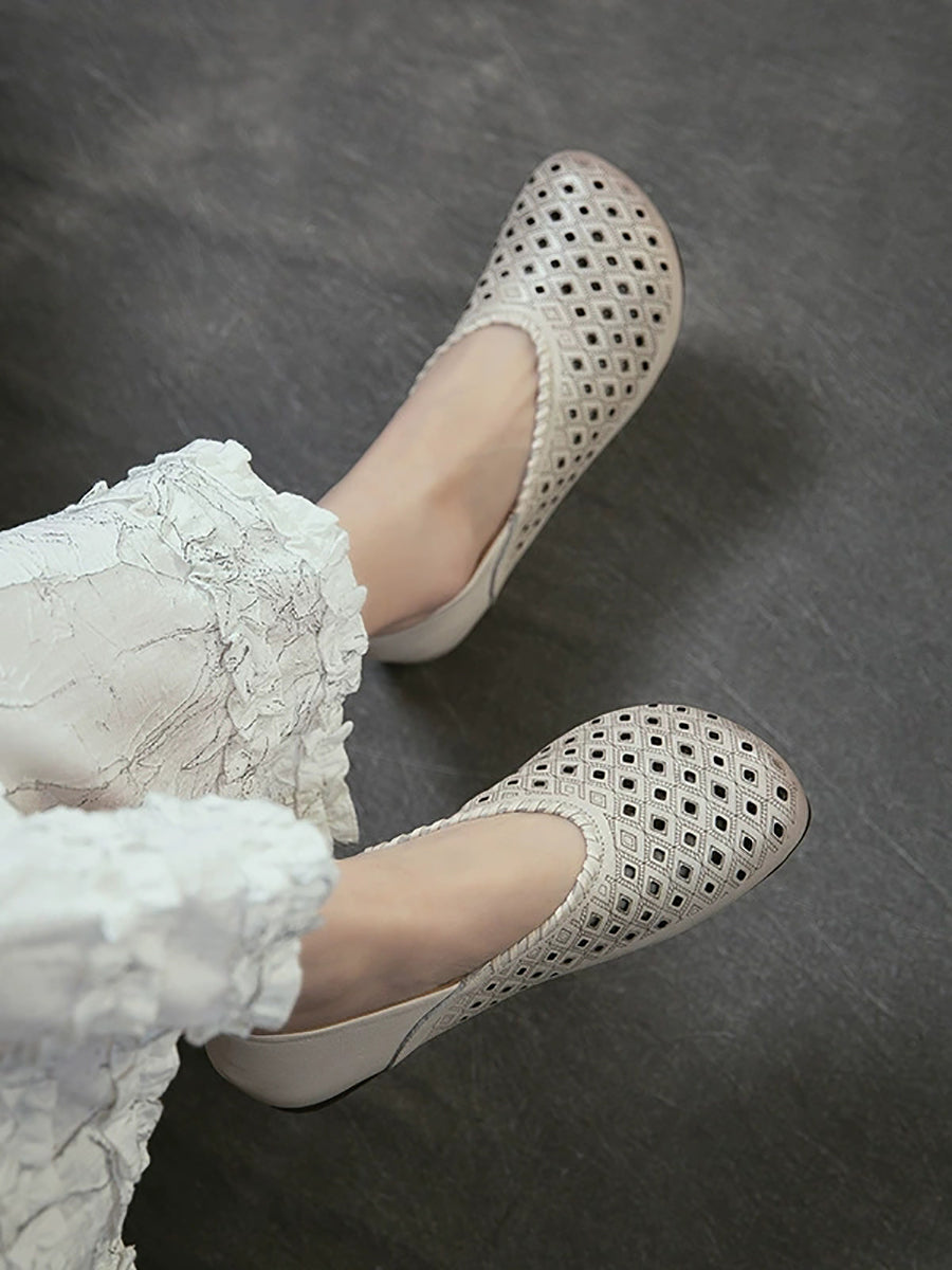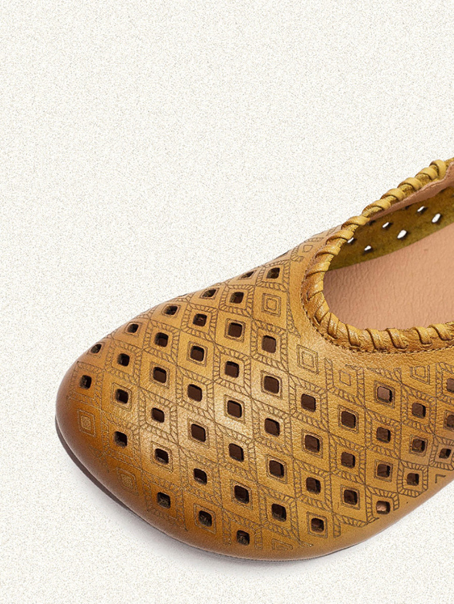 Damen Sommer-Sandalen aus Leder, flach und mit Löchern