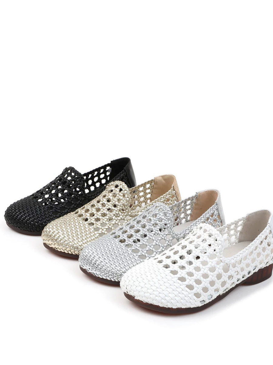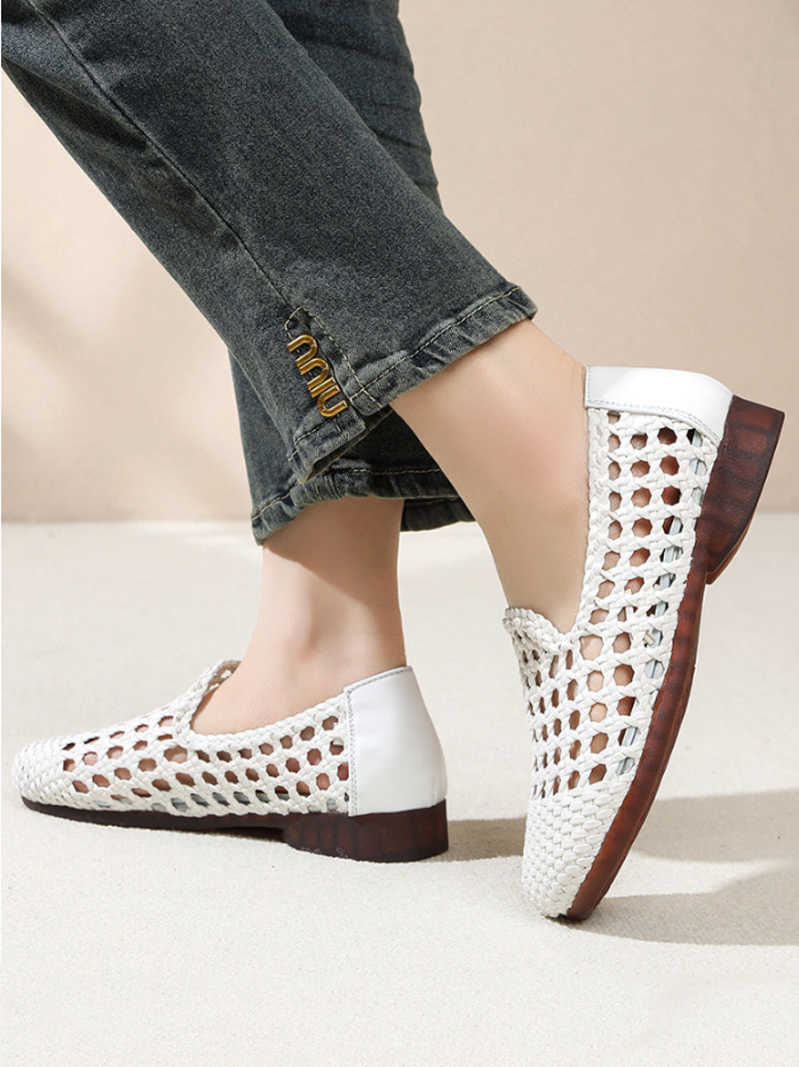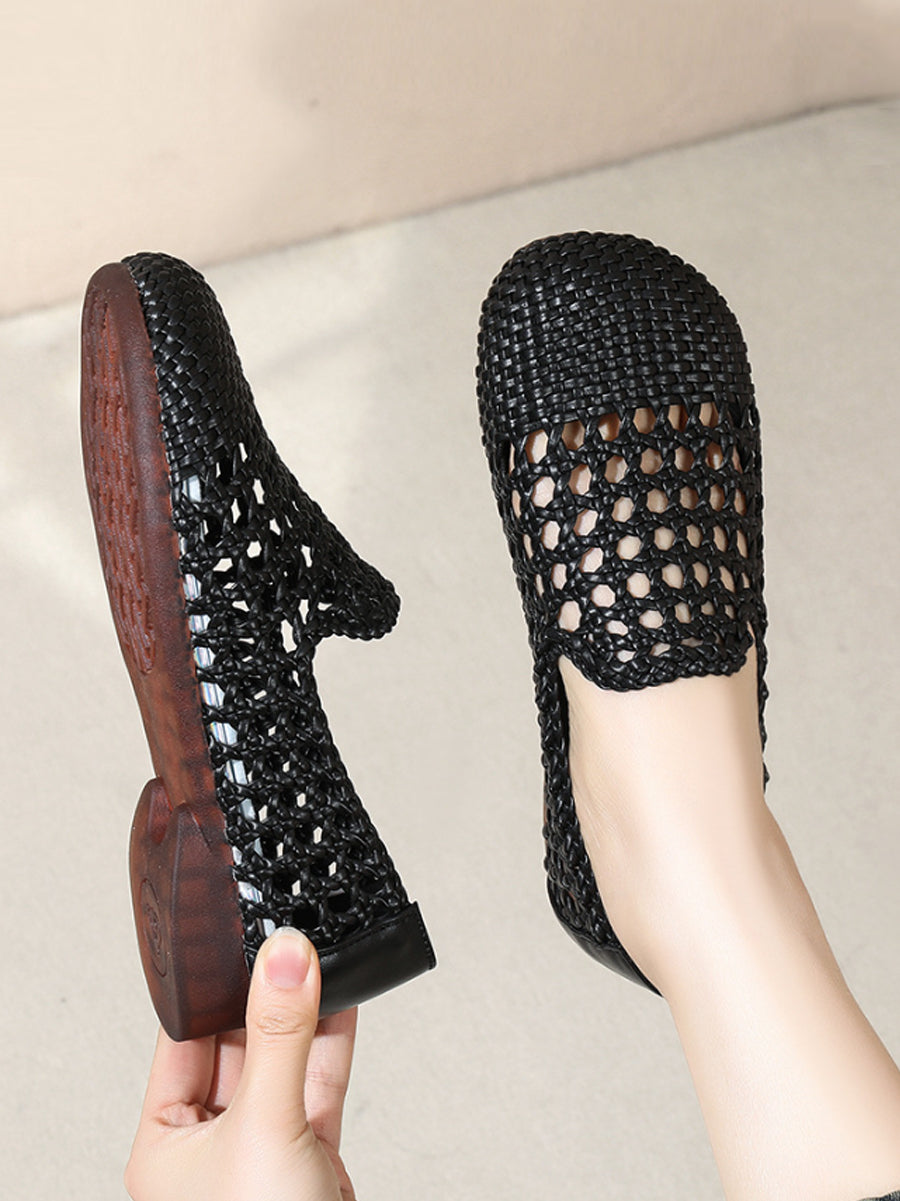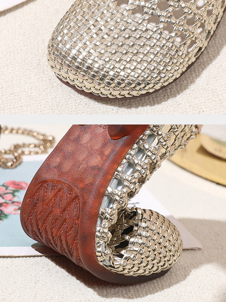 Damen-Sommersandalen aus geflochtenem Leder mit niedrigem Absatz