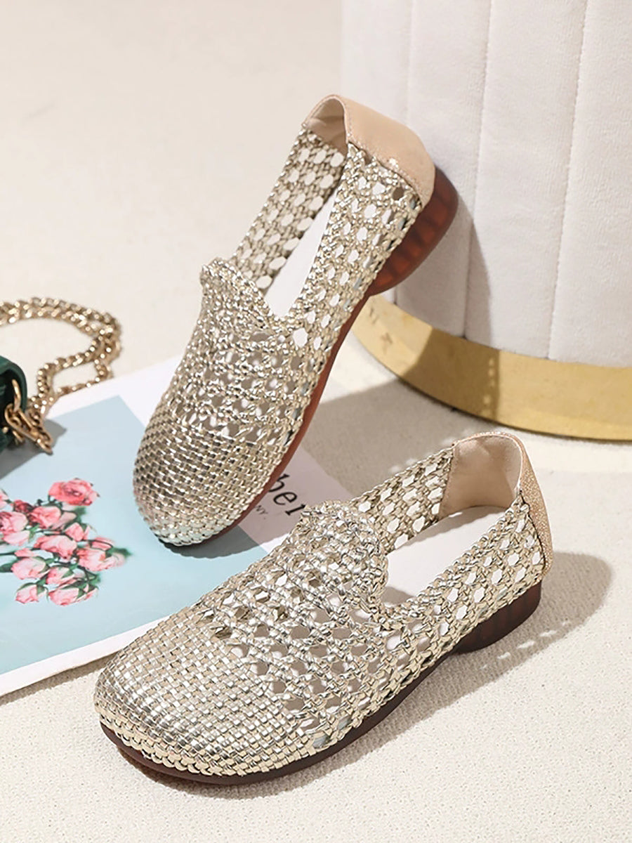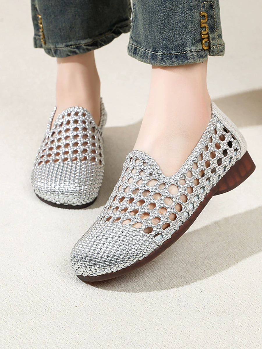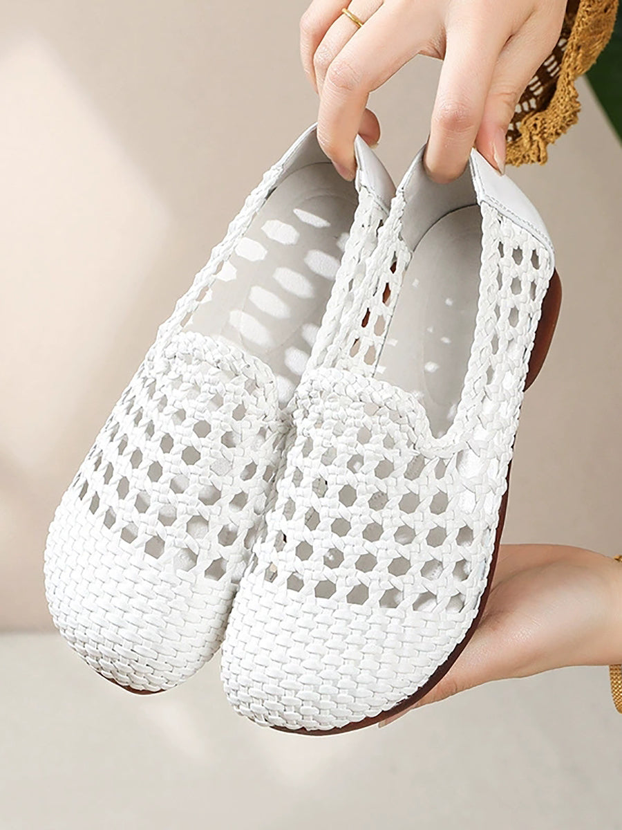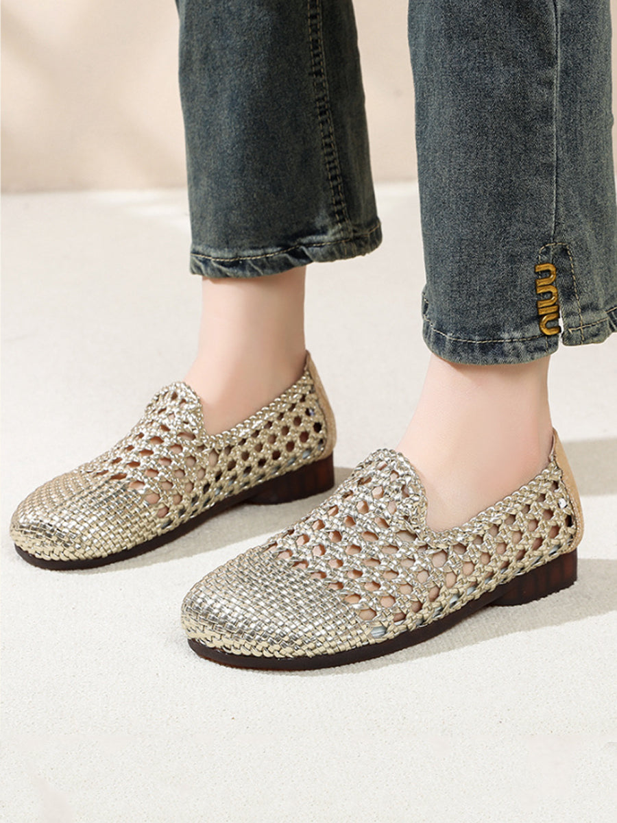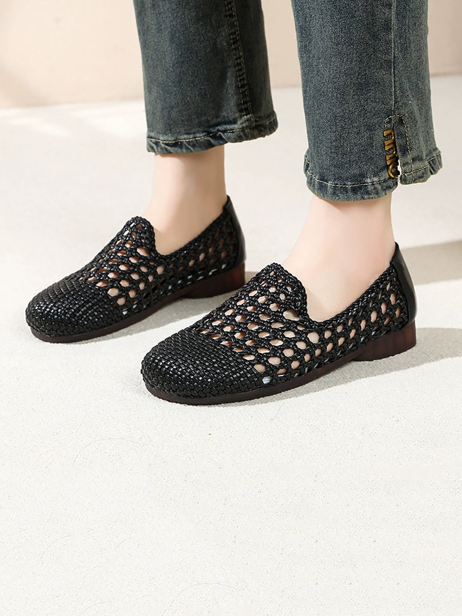 Damen-Sommersandalen aus geflochtenem Leder mit niedrigem Absatz