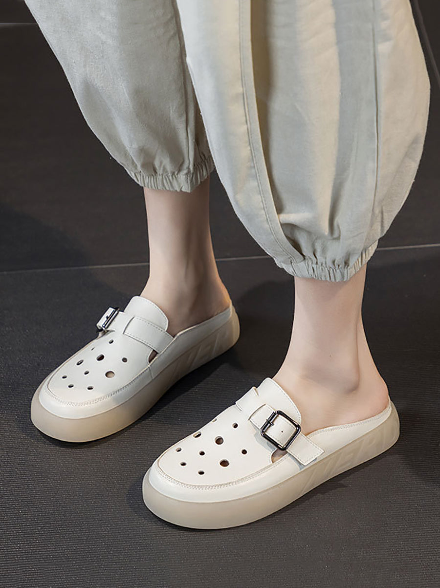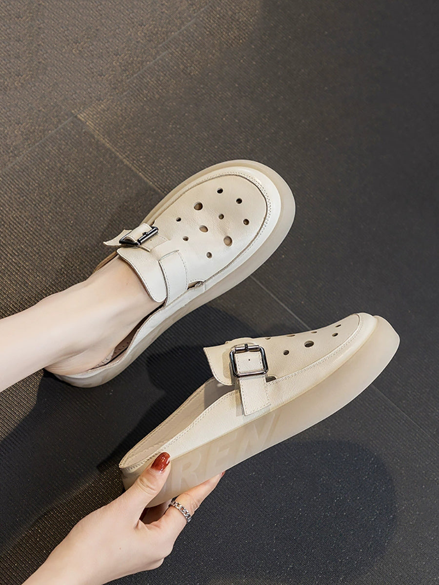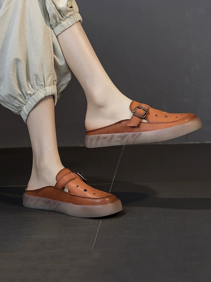 Damen Sommer Hausschuhe aus Leder mit Lochmuster