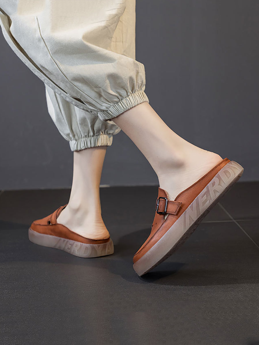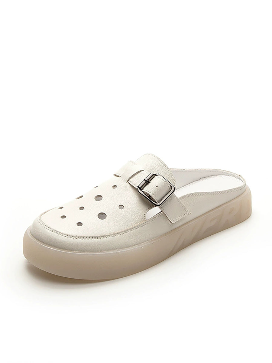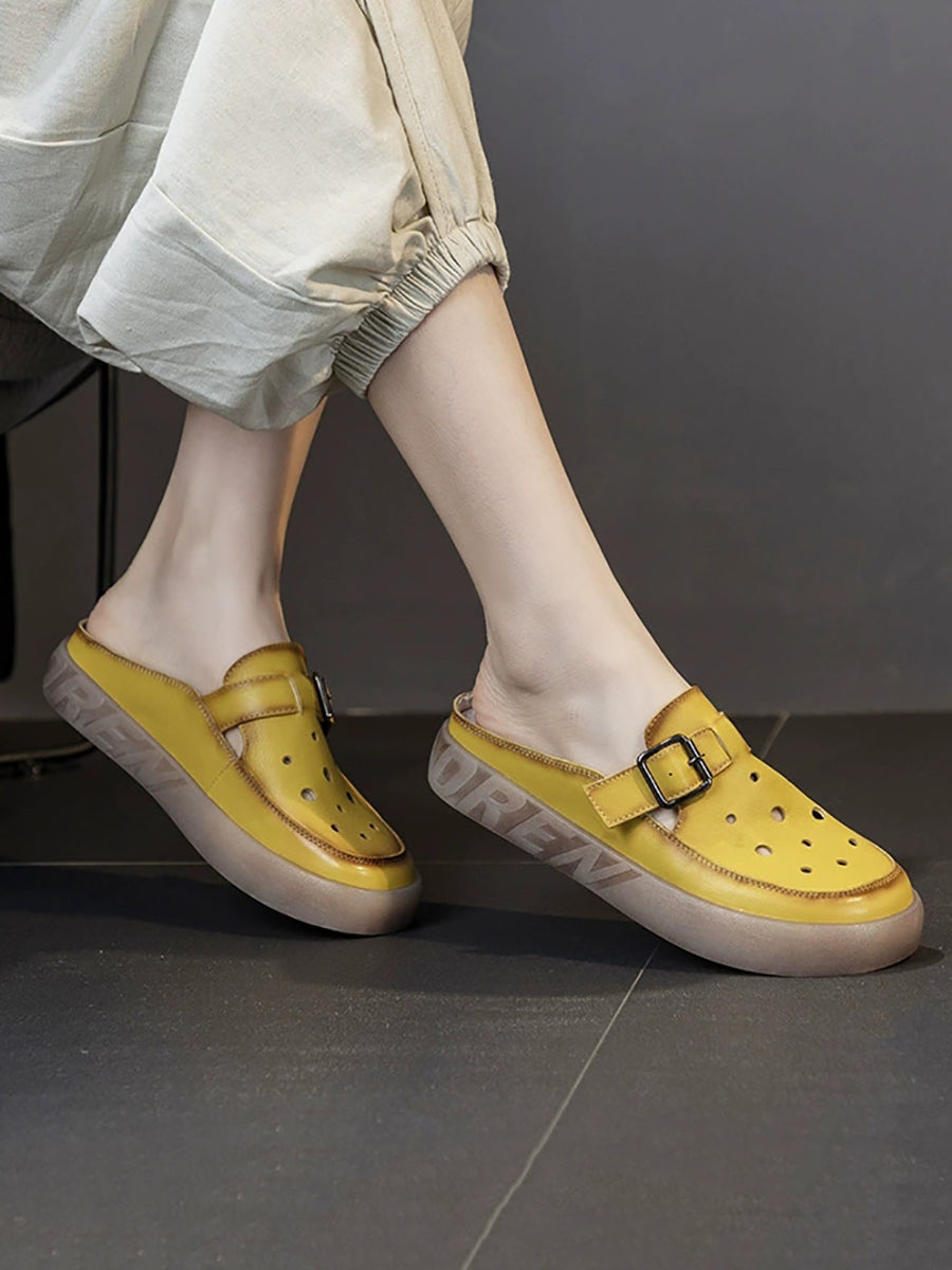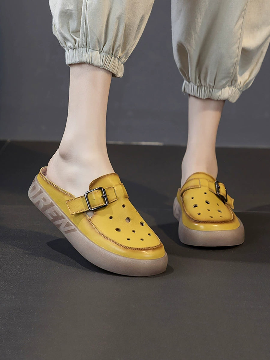 Damen Sommer Hausschuhe aus Leder mit Lochmuster