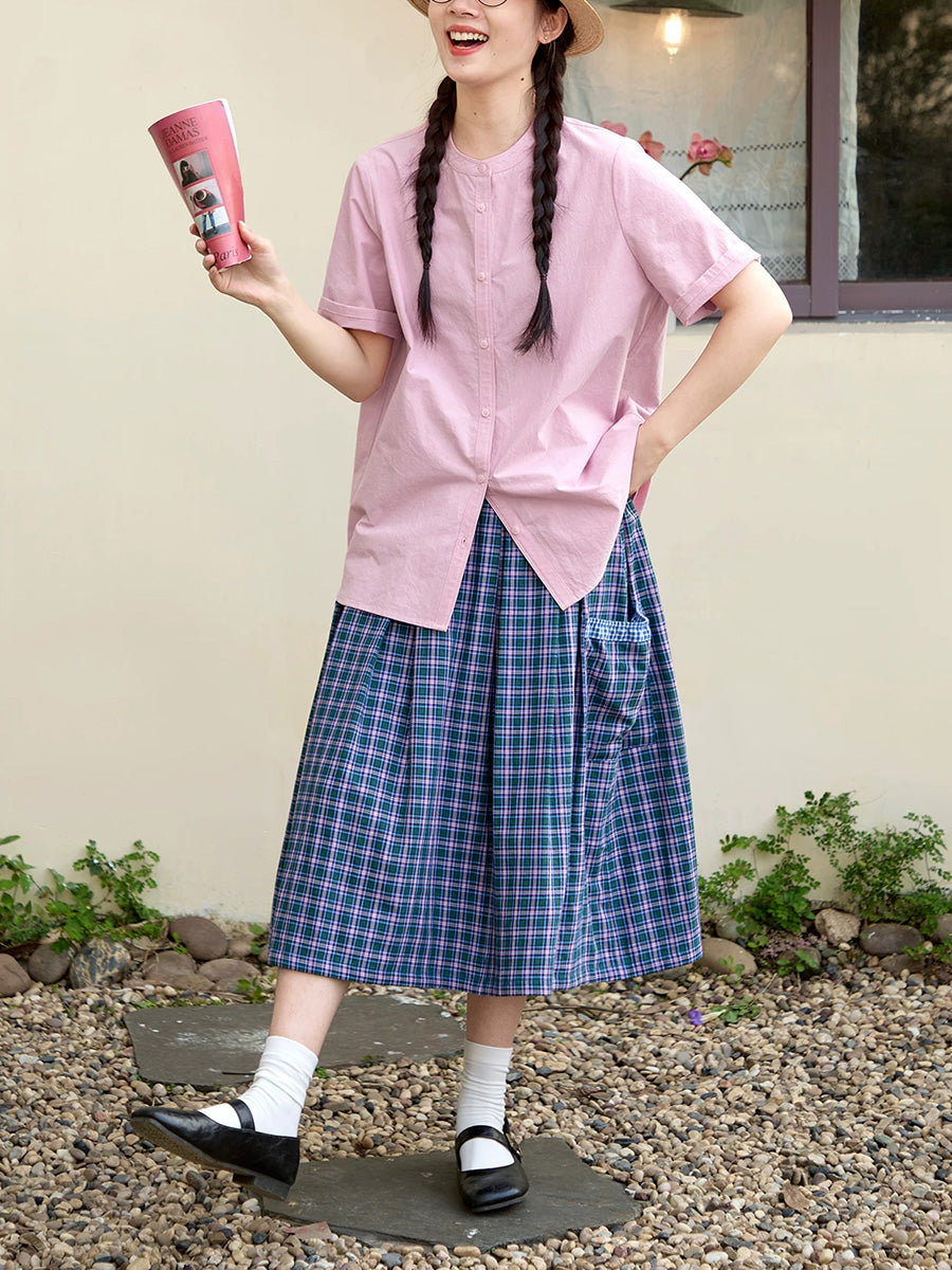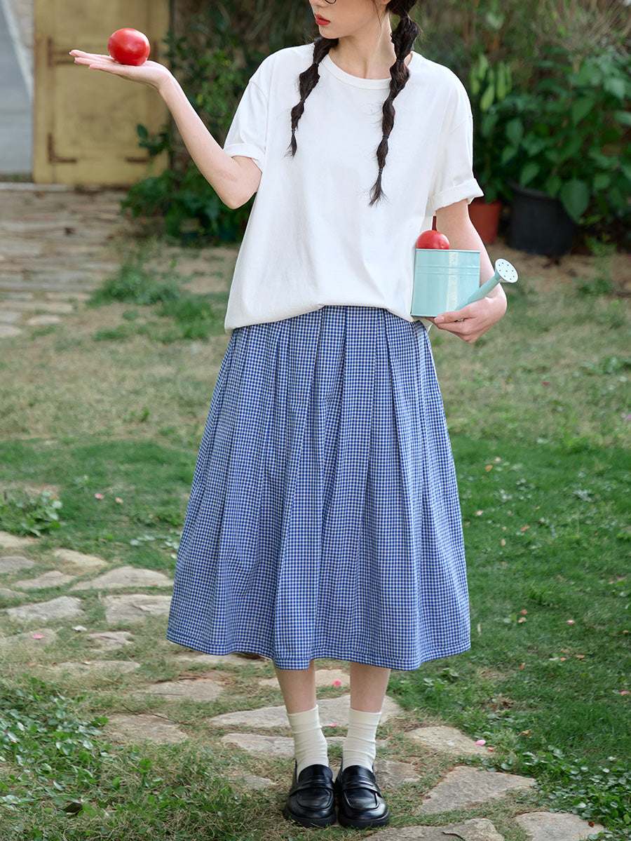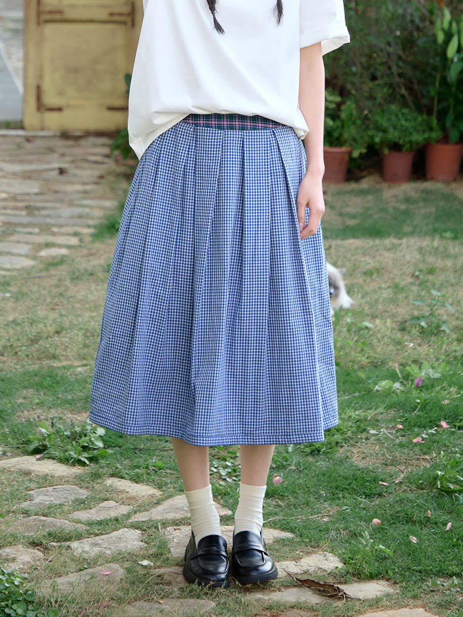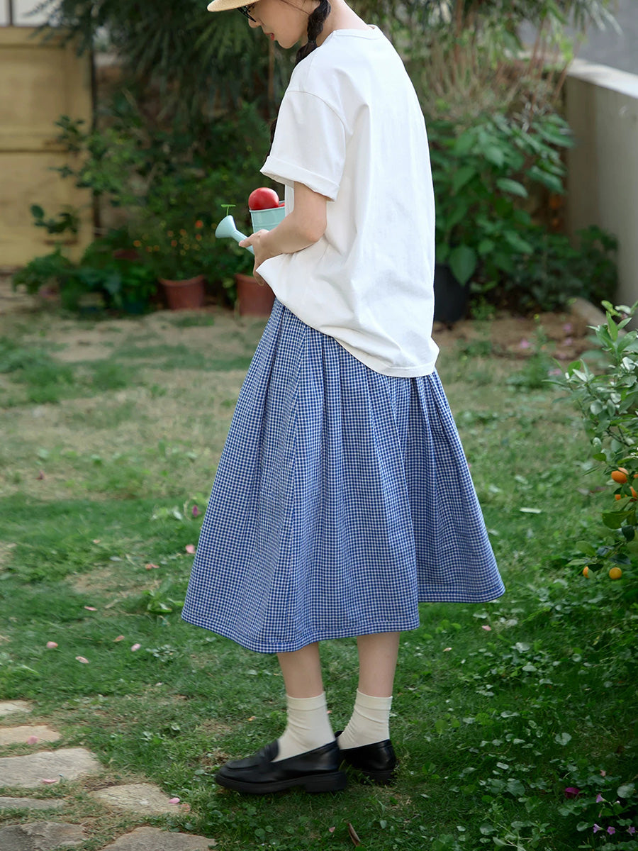 Damen Sommerrock mit Karomuster, beidseitig tragbar, 100% Baumwolle