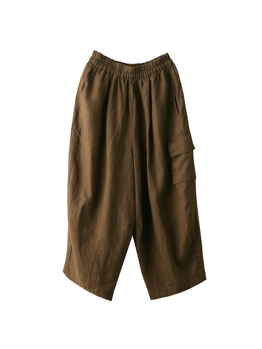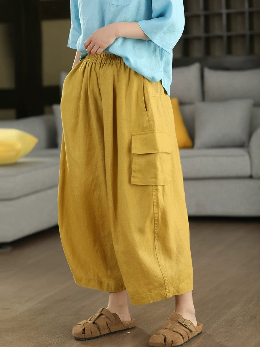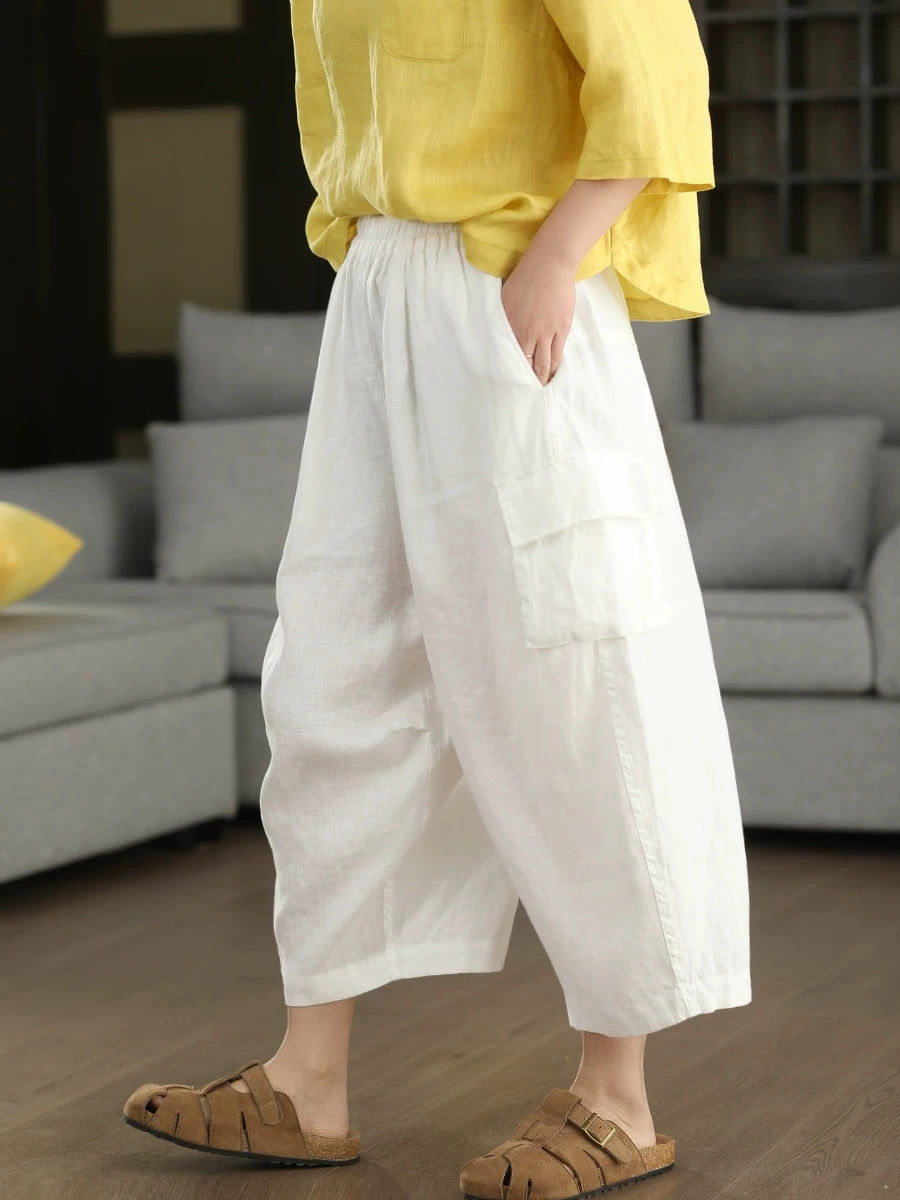 Damen Sommer Haremshose aus 100% Leinen, einfarbig