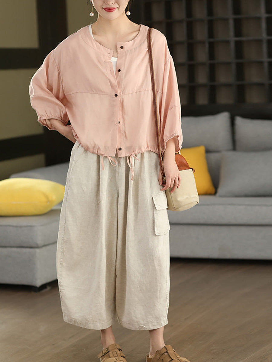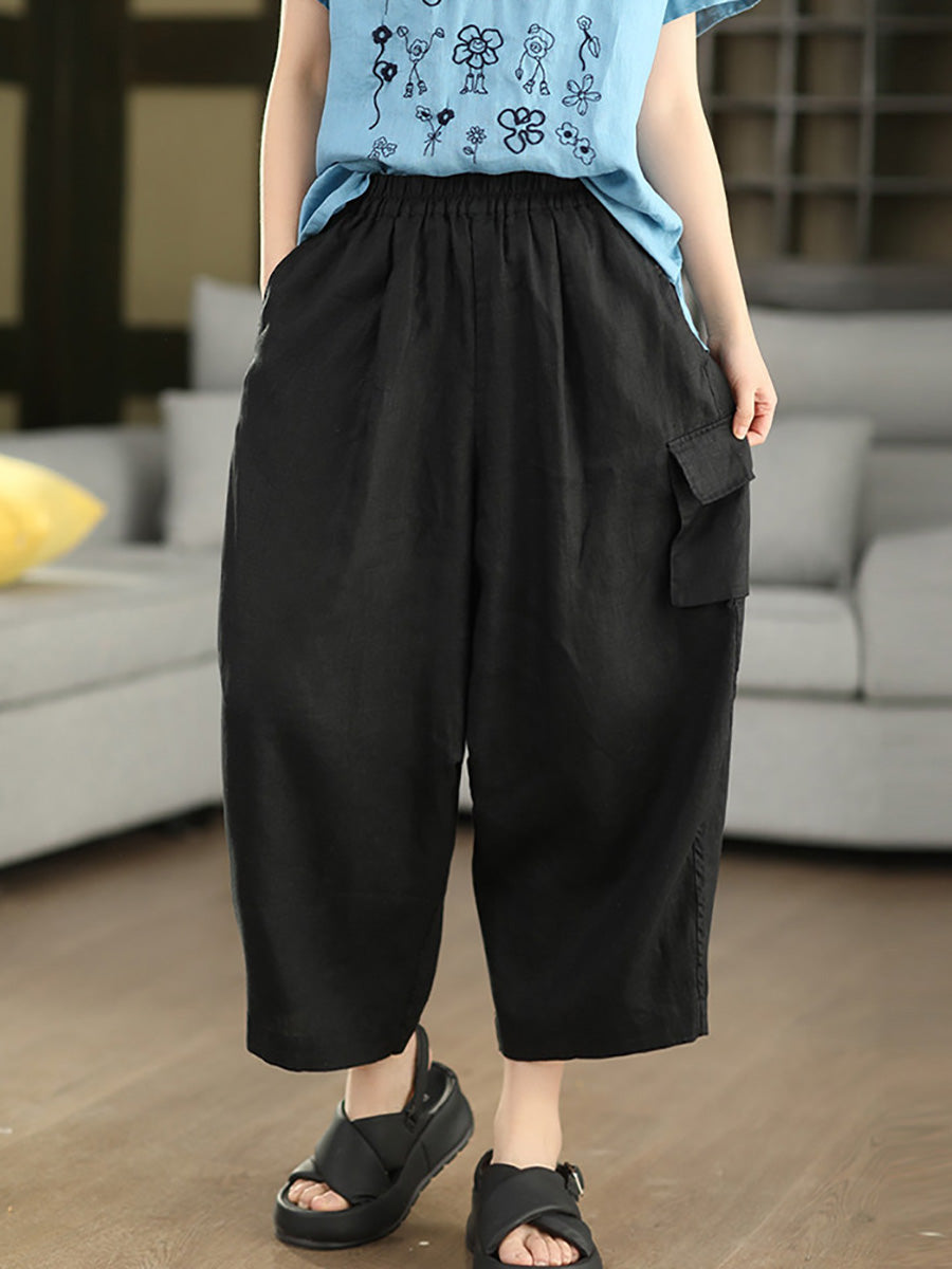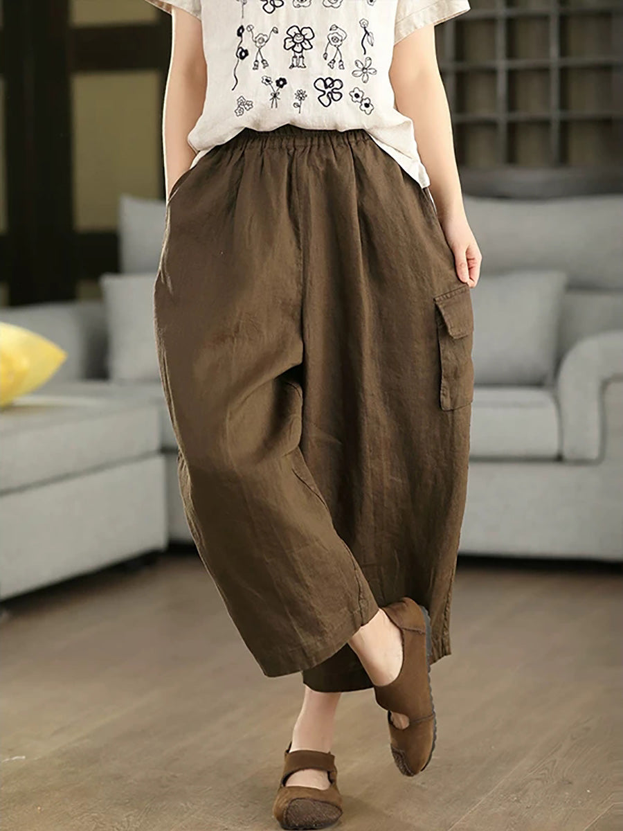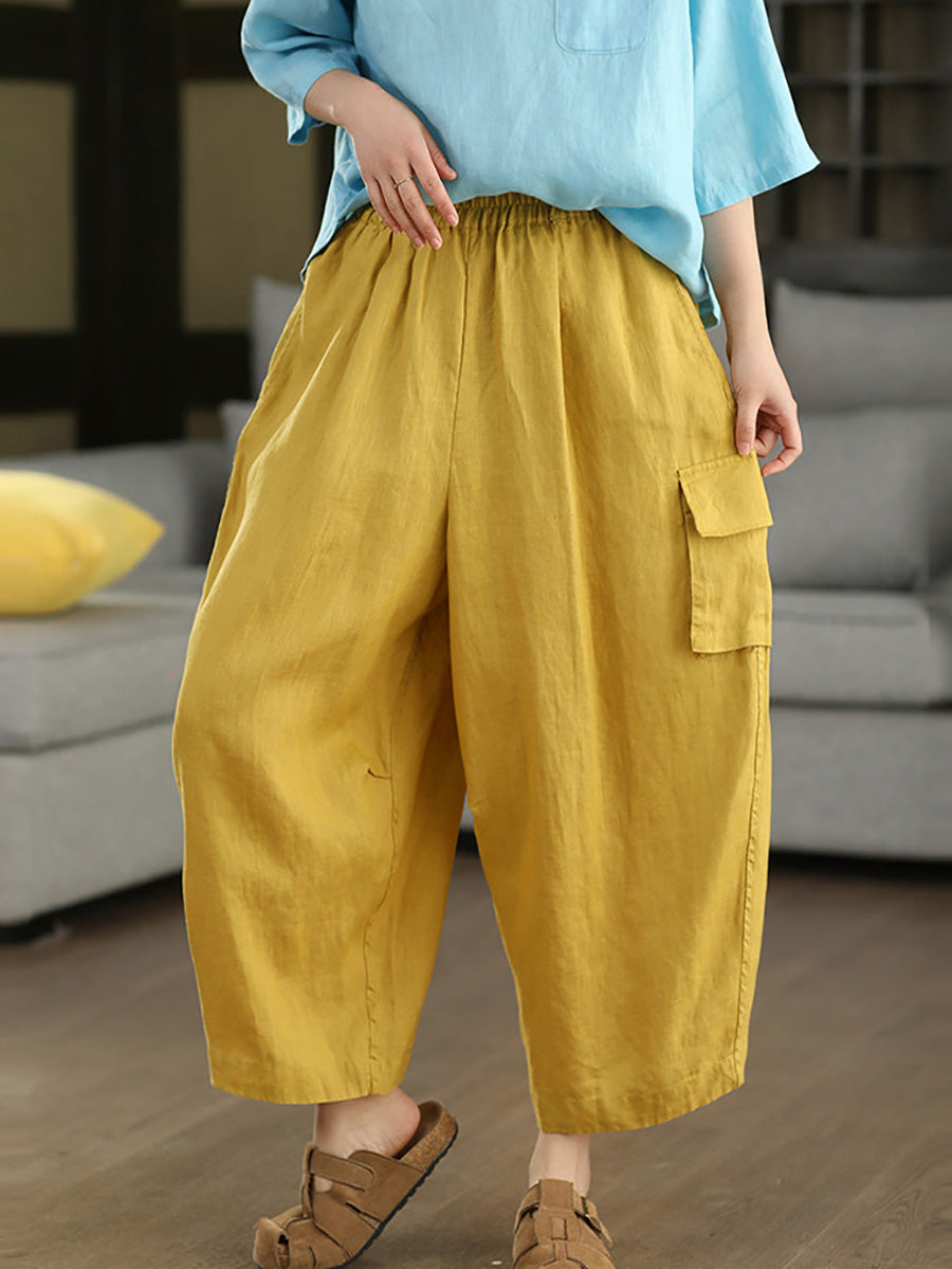 Damen Sommer Haremshose aus 100% Leinen, einfarbig