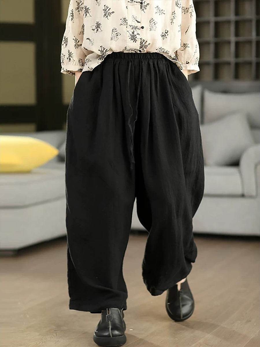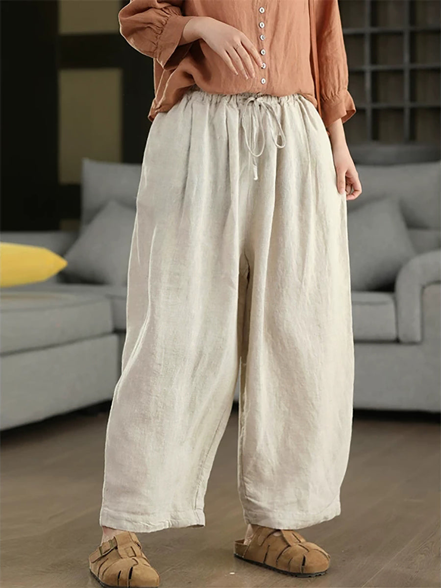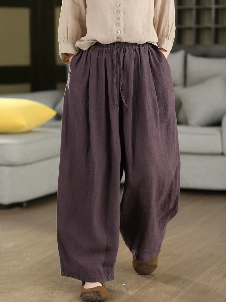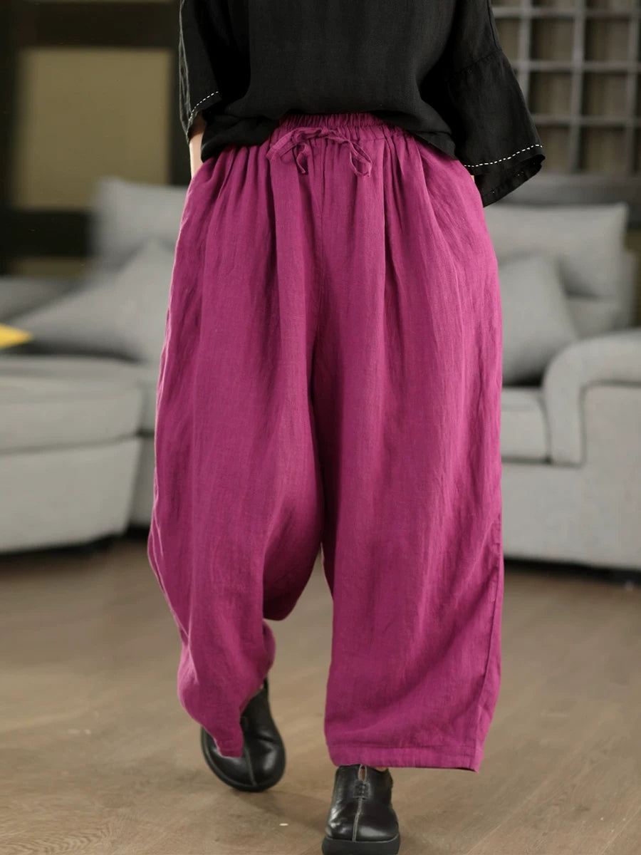 Damen Sommer Haremshose aus 100% Leinen, einfarbig