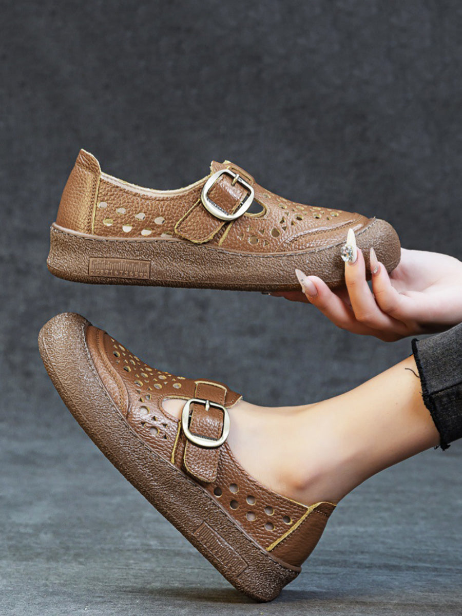 Damen Sommer Pure Color Echtleder Flache Schuhe