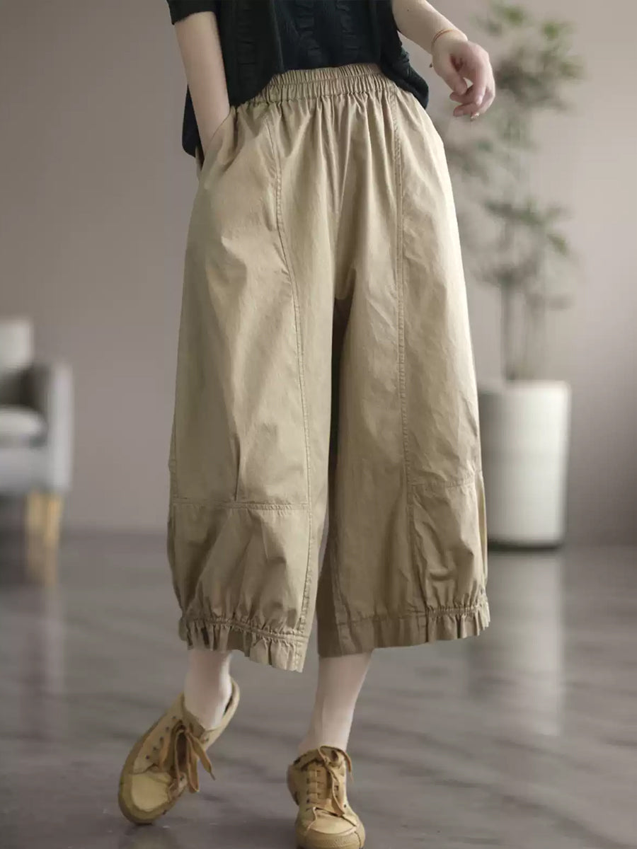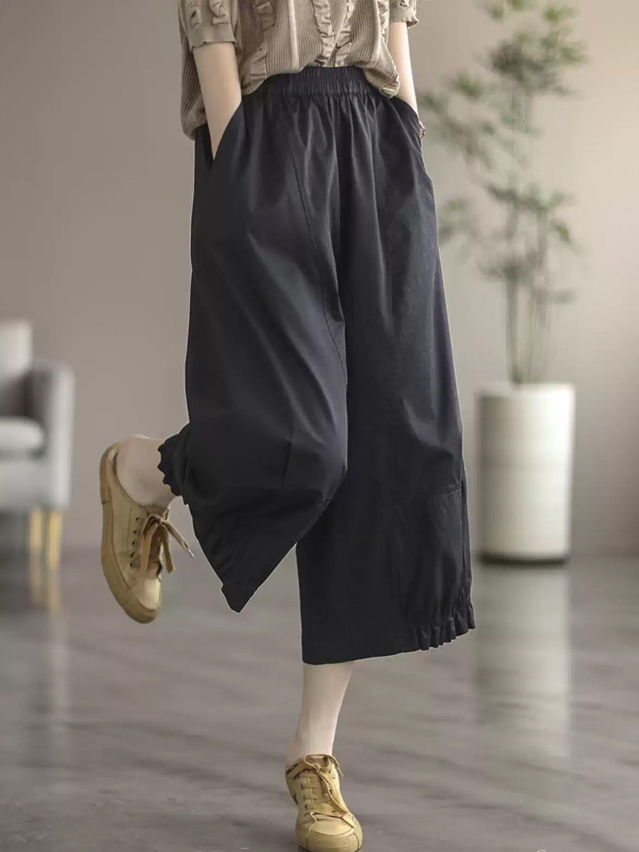 Damen Sommer Caprihose in Unifarbe mit weitem Bein
