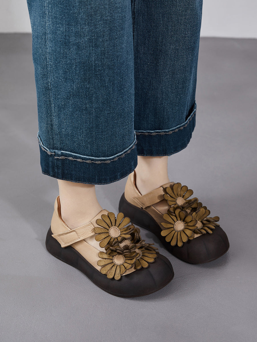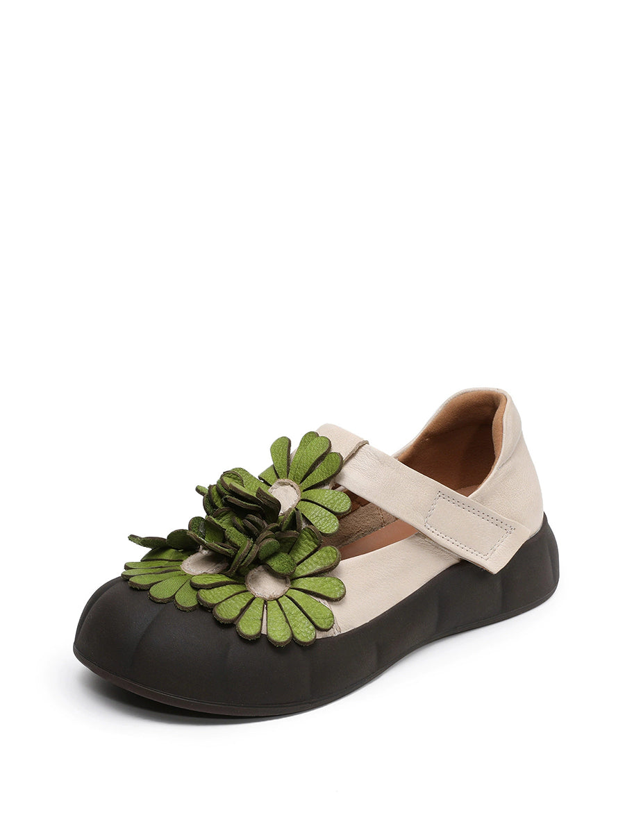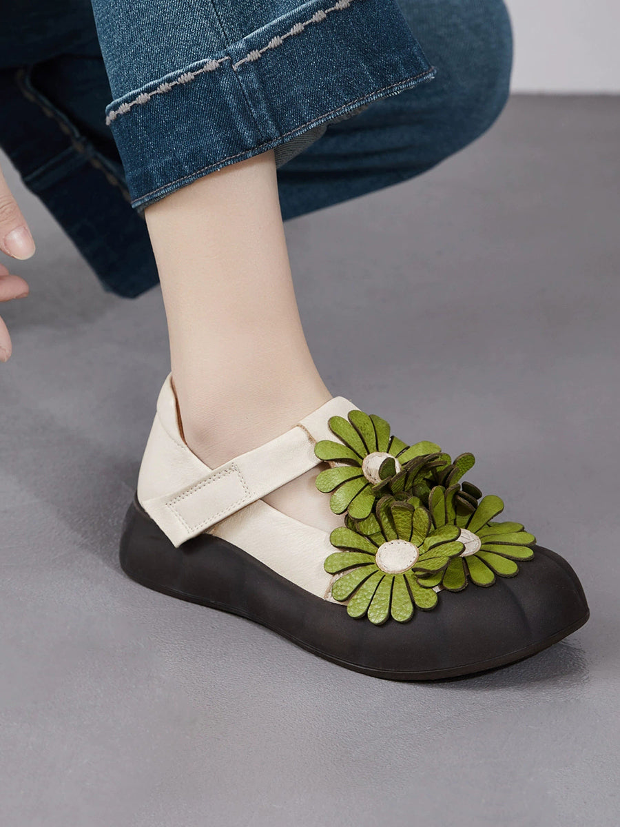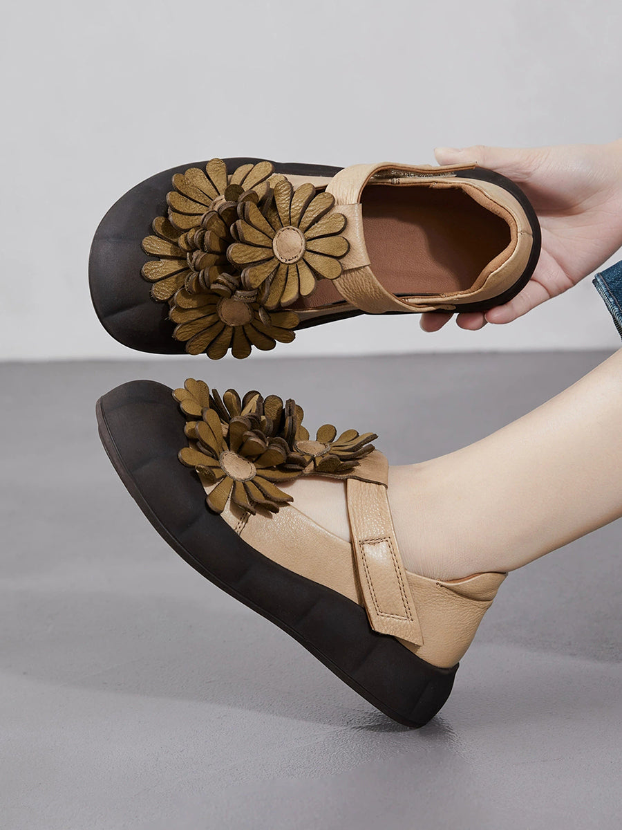 Damen Sommer Retro Echtleder Blumenschuhe