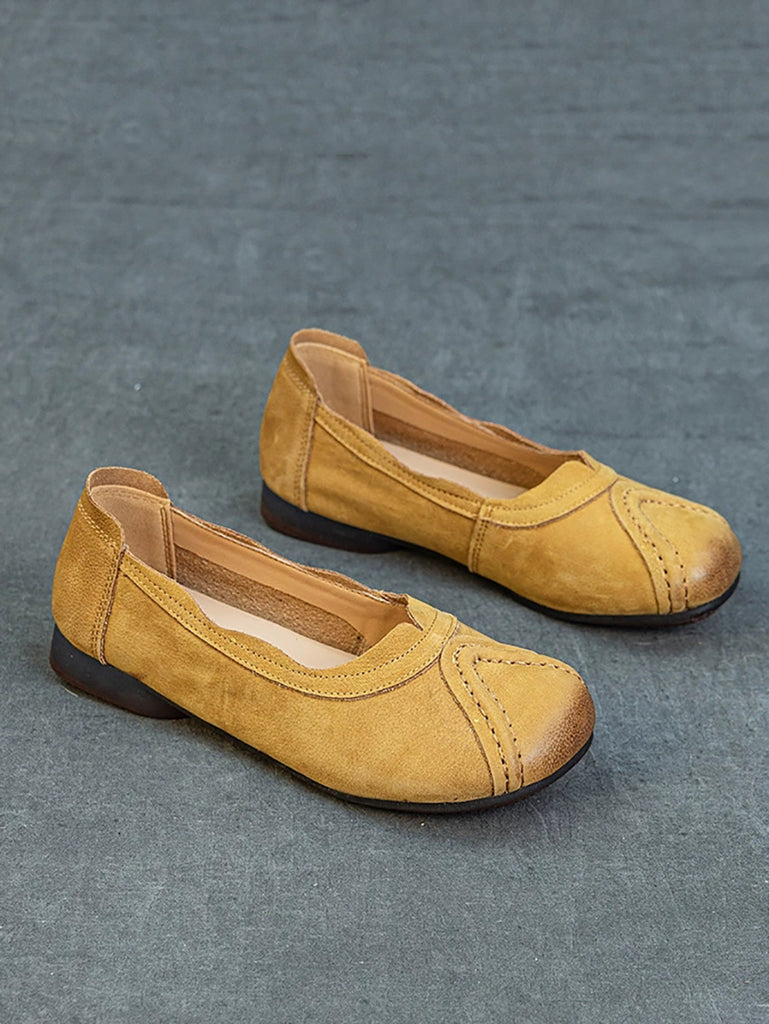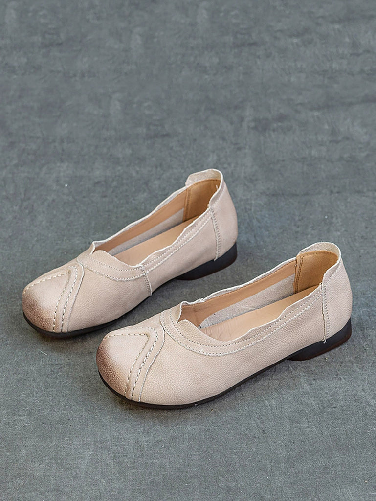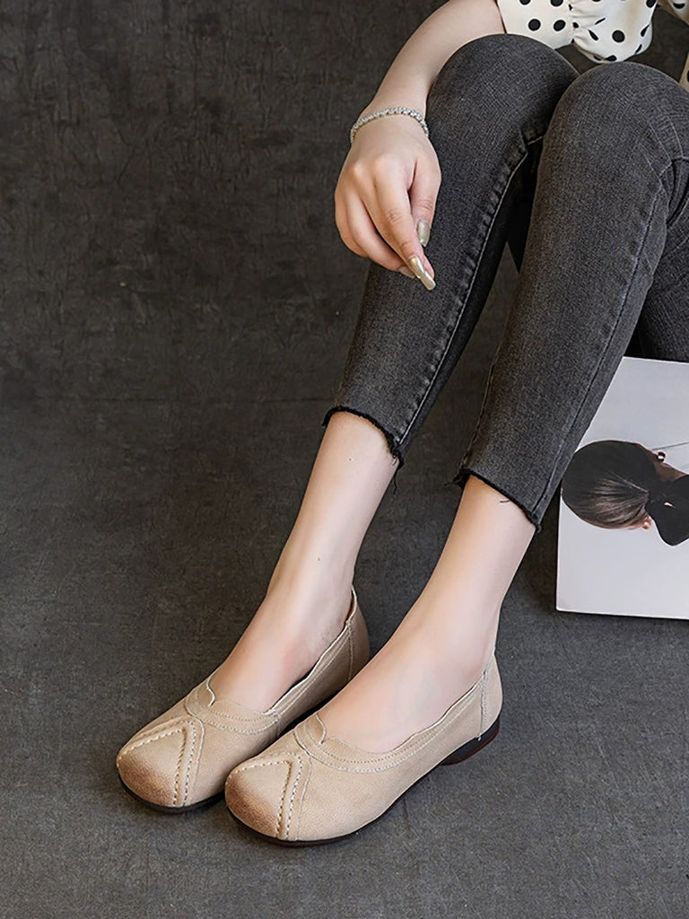 Damen Sommer Retro Echtes Leder Gespleißte Schuhe