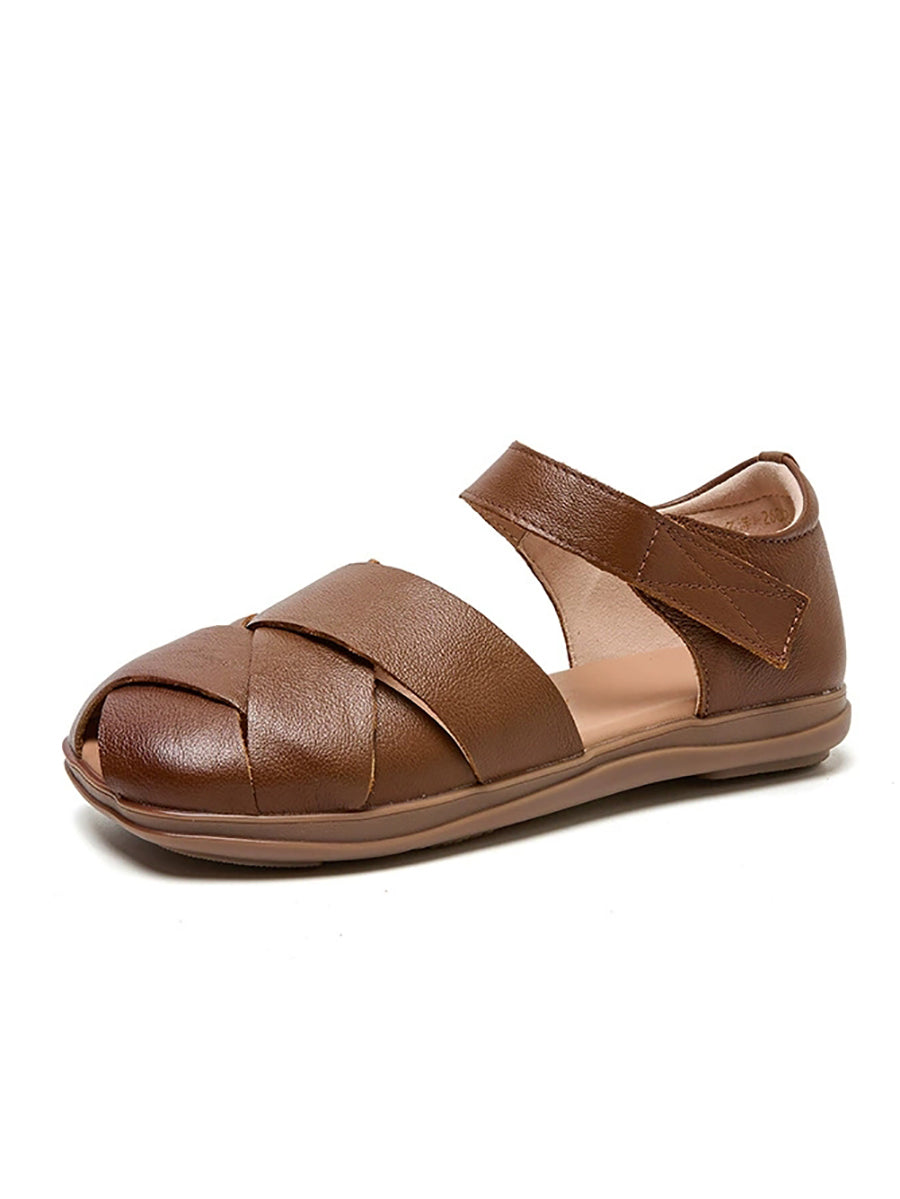 Damen Sommer Retro Echtleder Sandalen