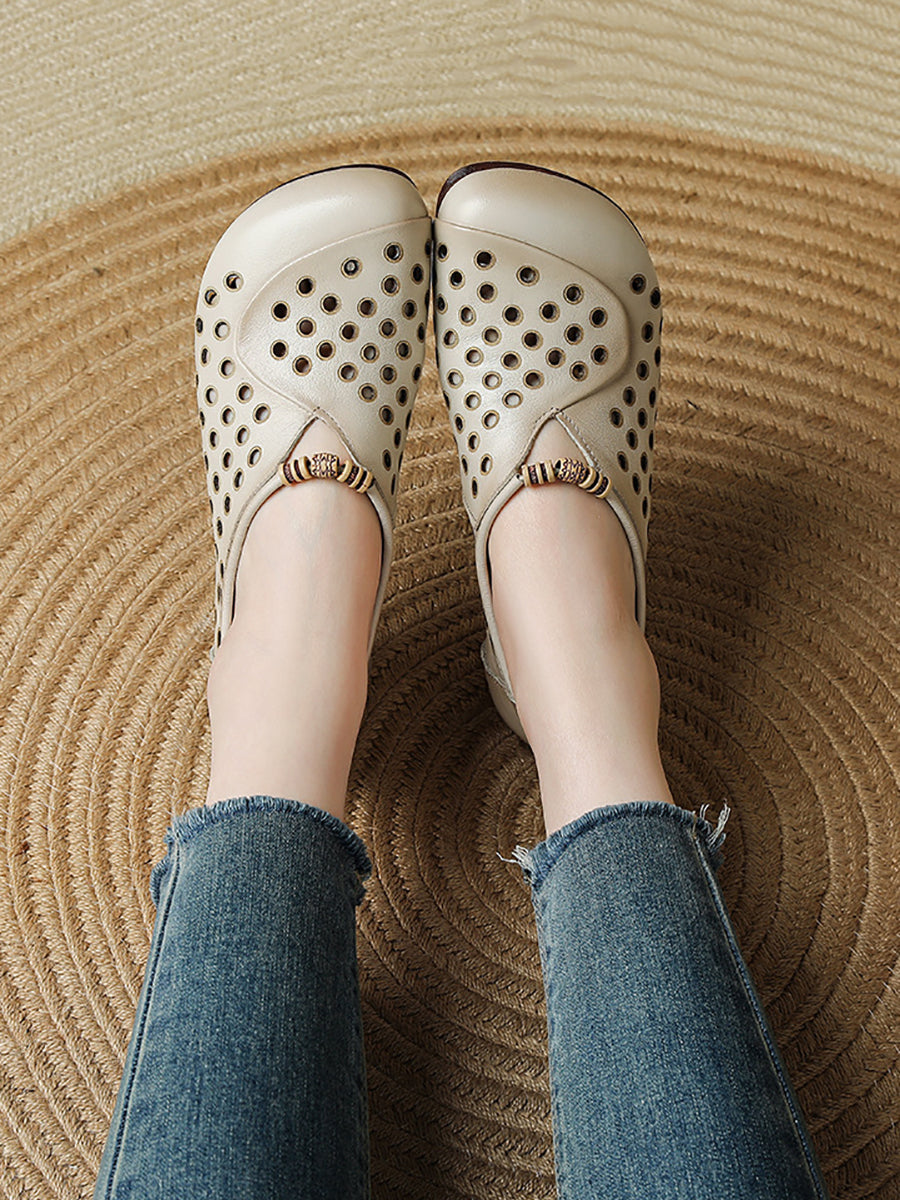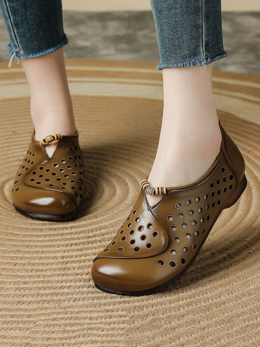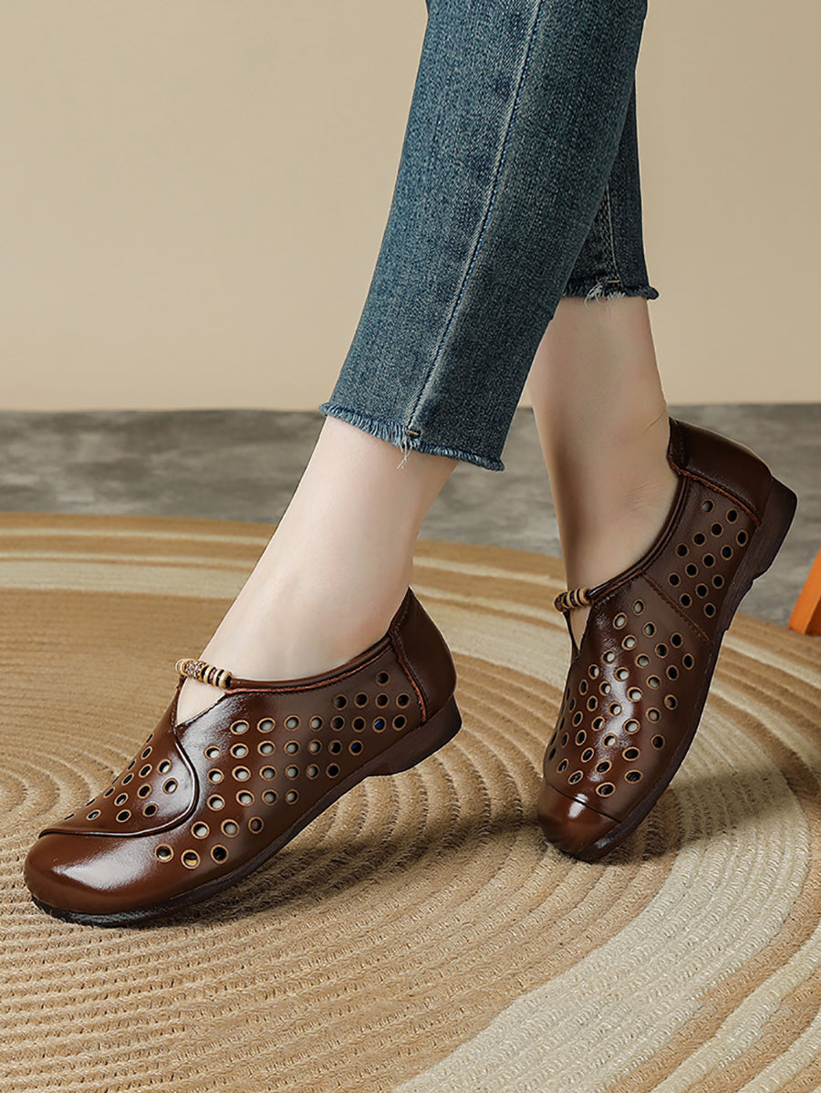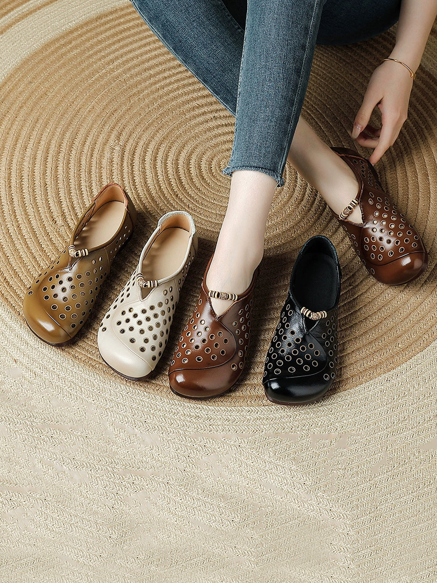Damen Sommer Retro Loch Echtleder Schuhe