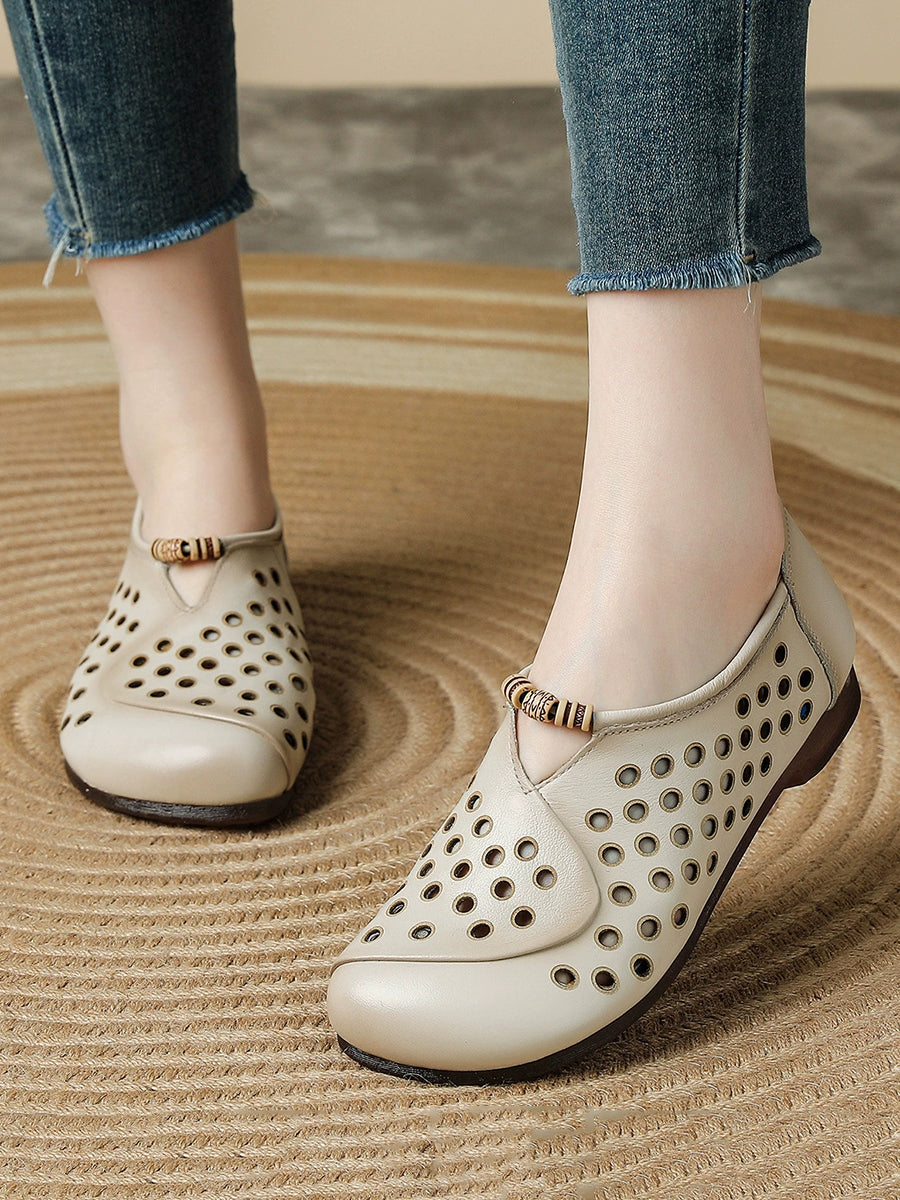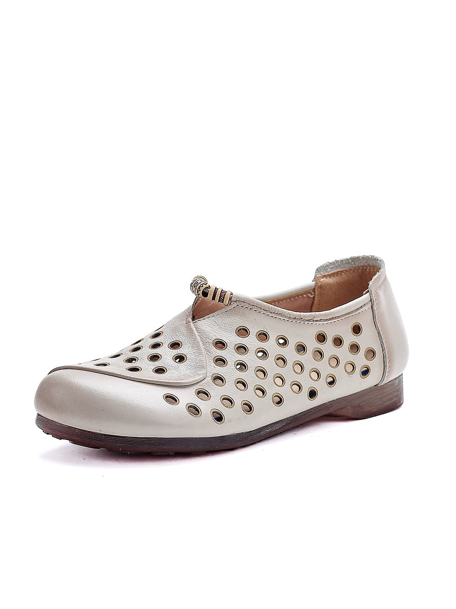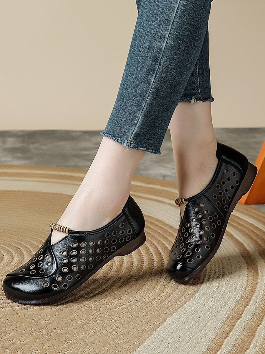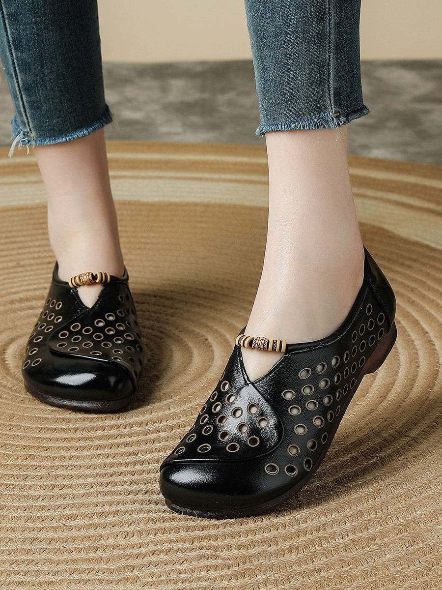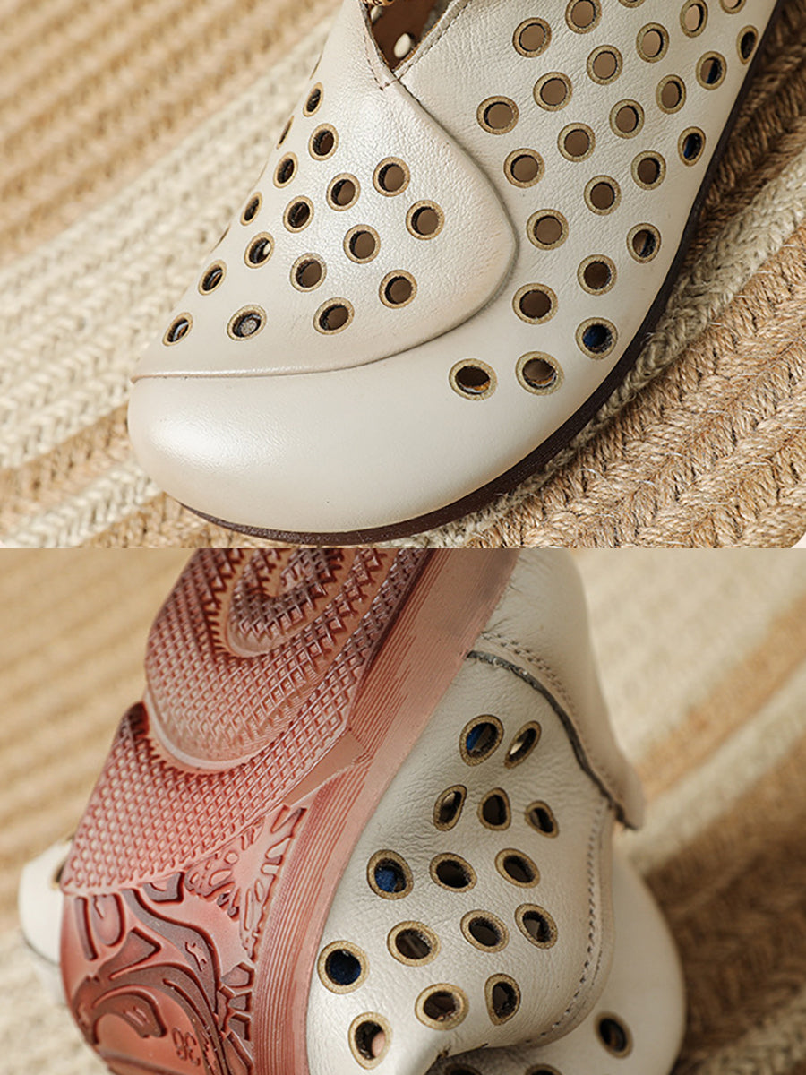 Damen Sommer Retro Loch Echtleder Schuhe