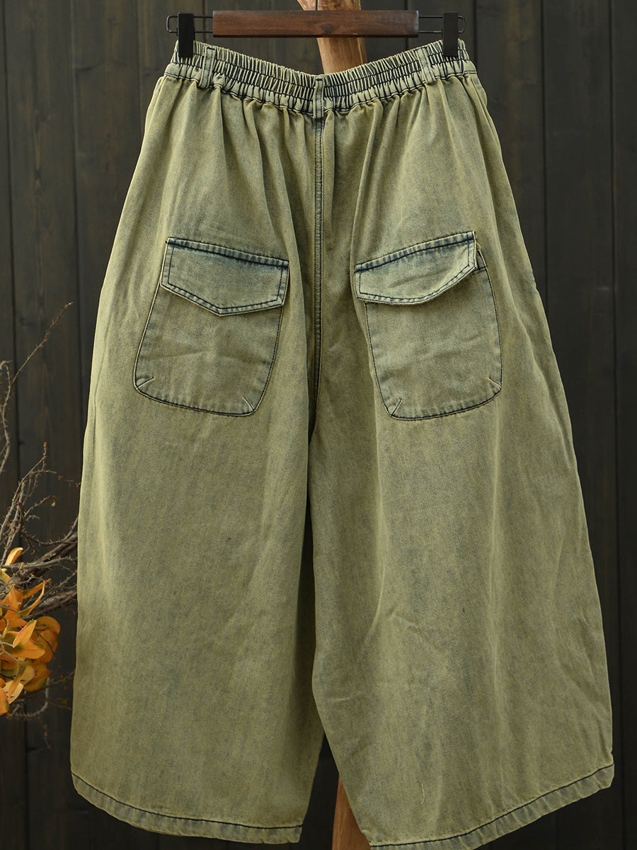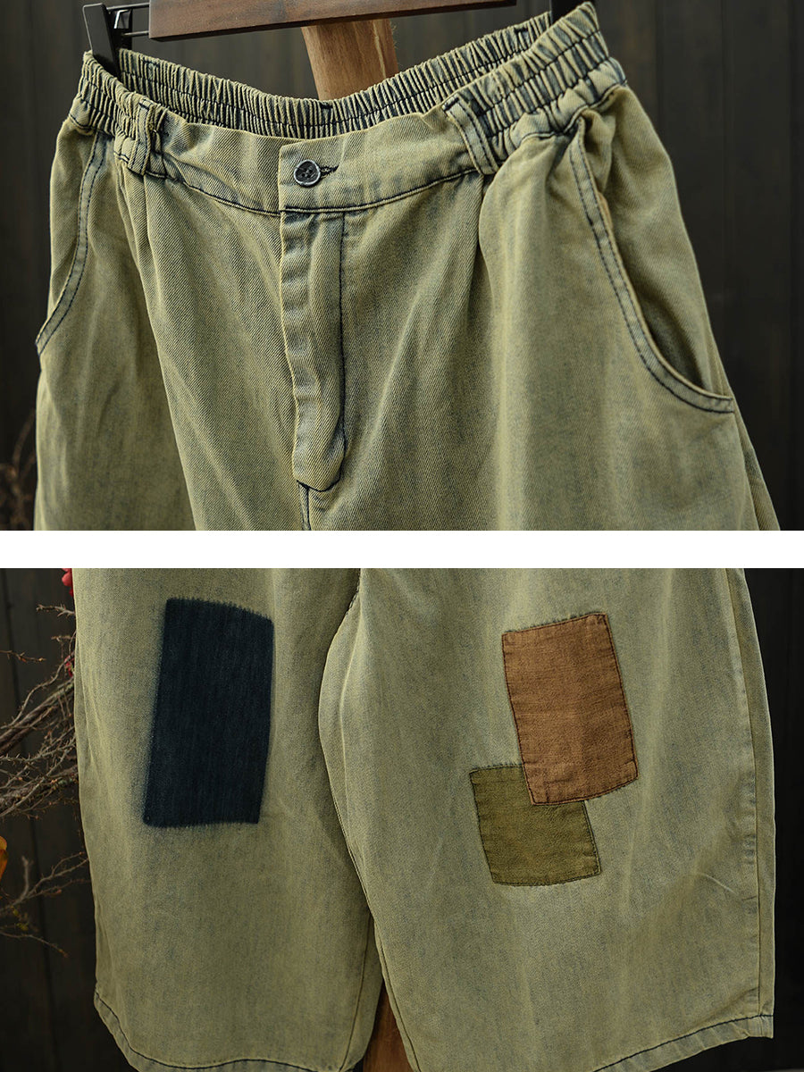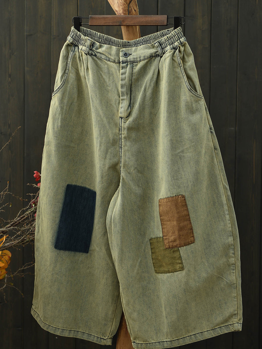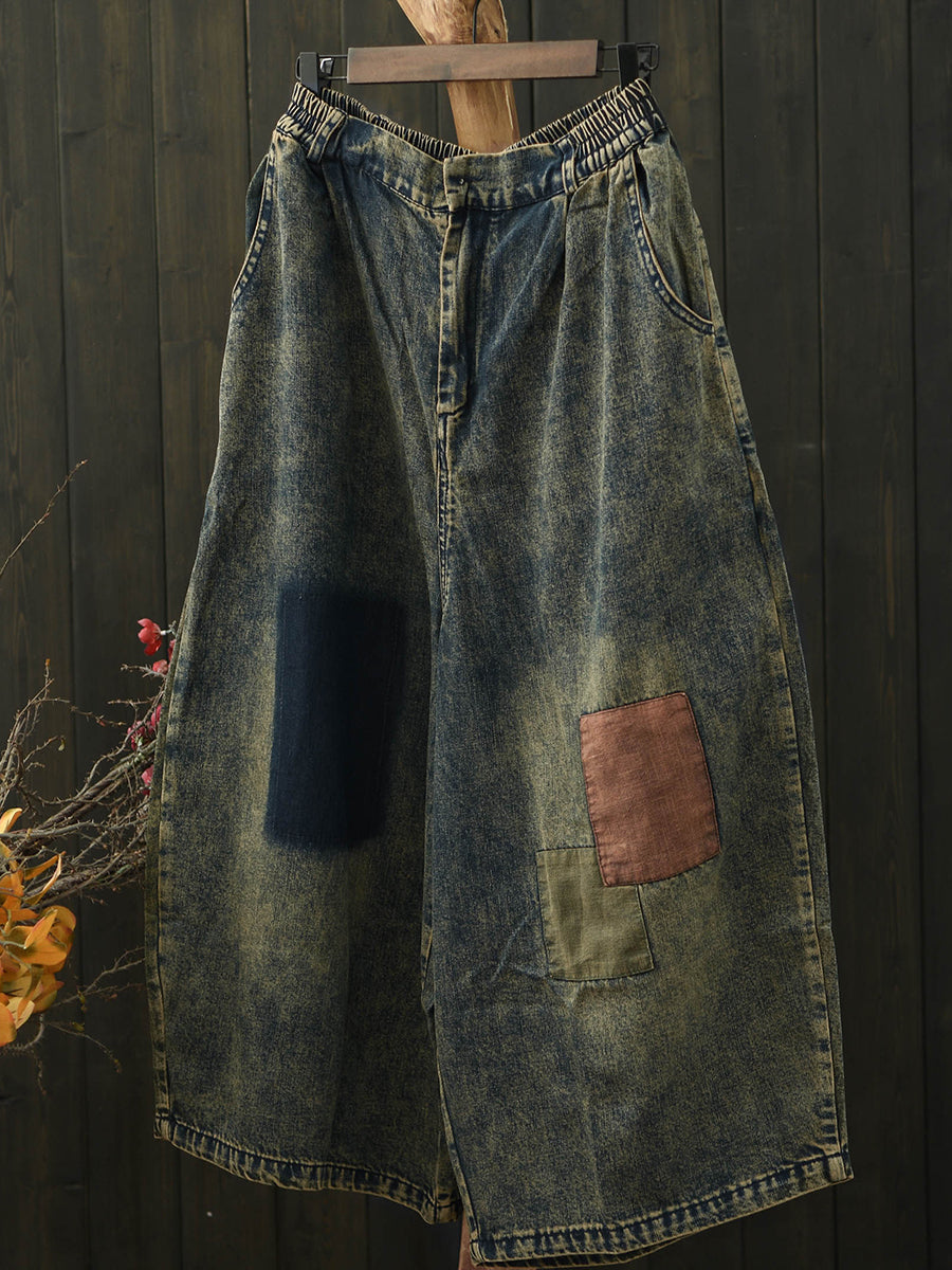Damen Sommer Retro Patchwork Jeans mit weitem Bein
