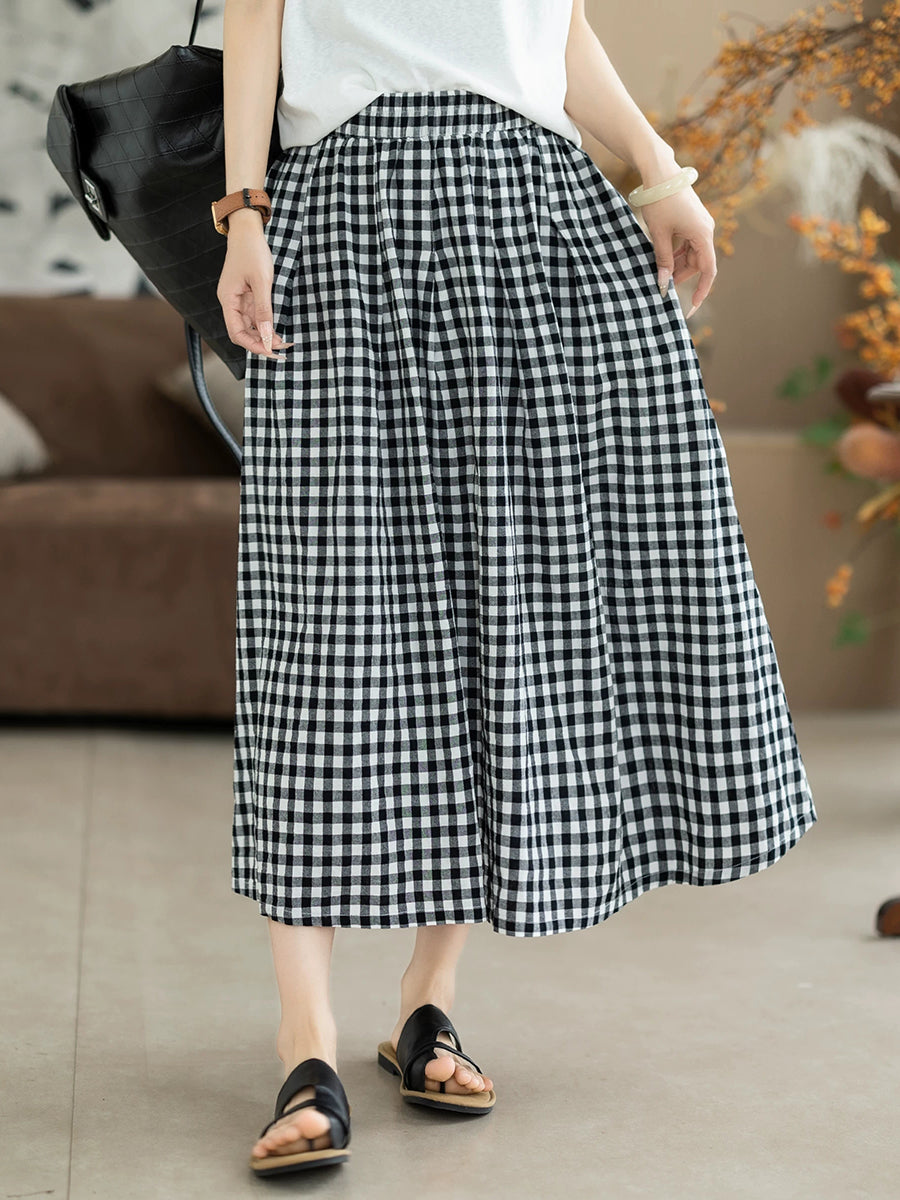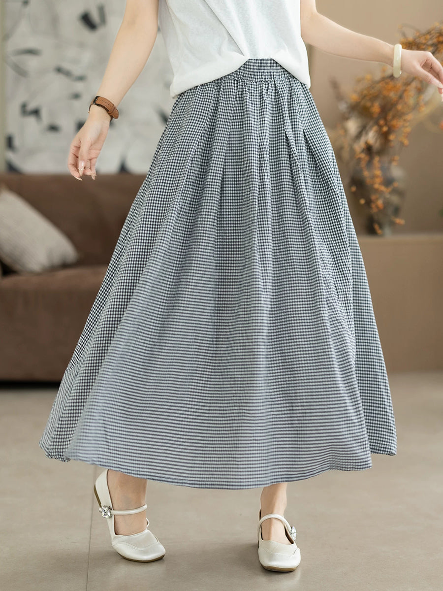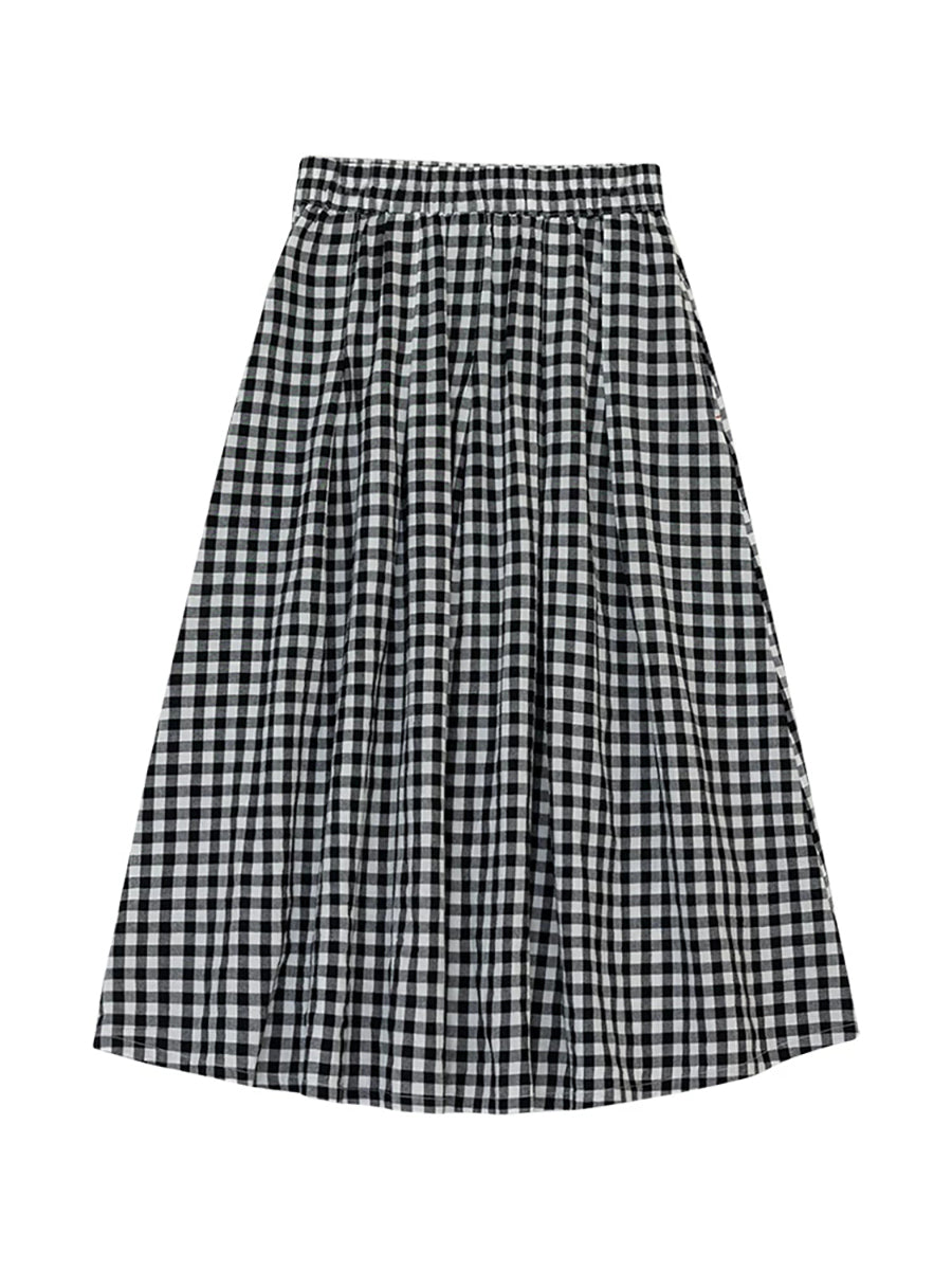 Damen Sommerrock im Retro-Karo-Stil, A-Form, 100 % Baumwolle