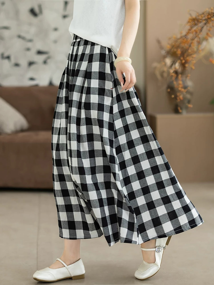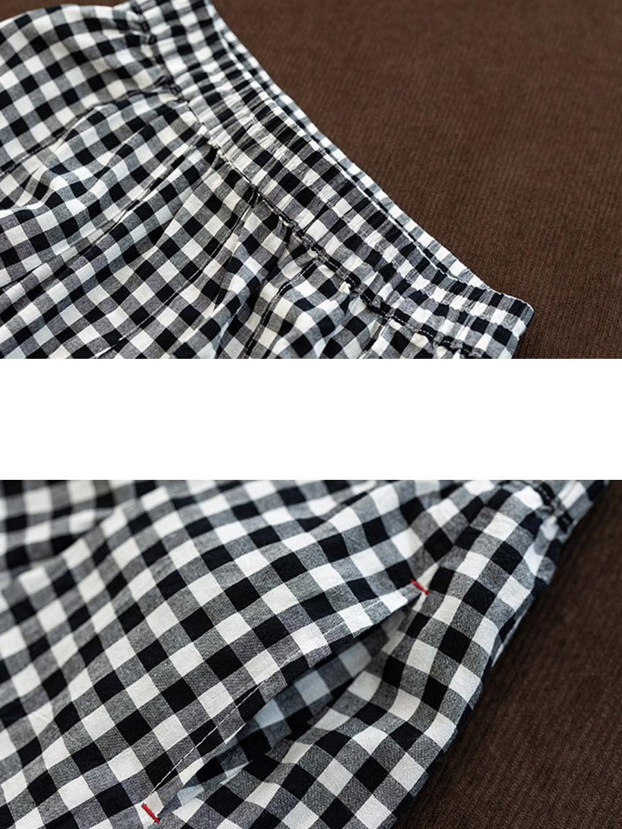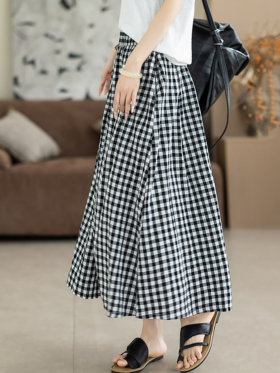 Damen Sommerrock im Retro-Karo-Stil, A-Form, 100 % Baumwolle