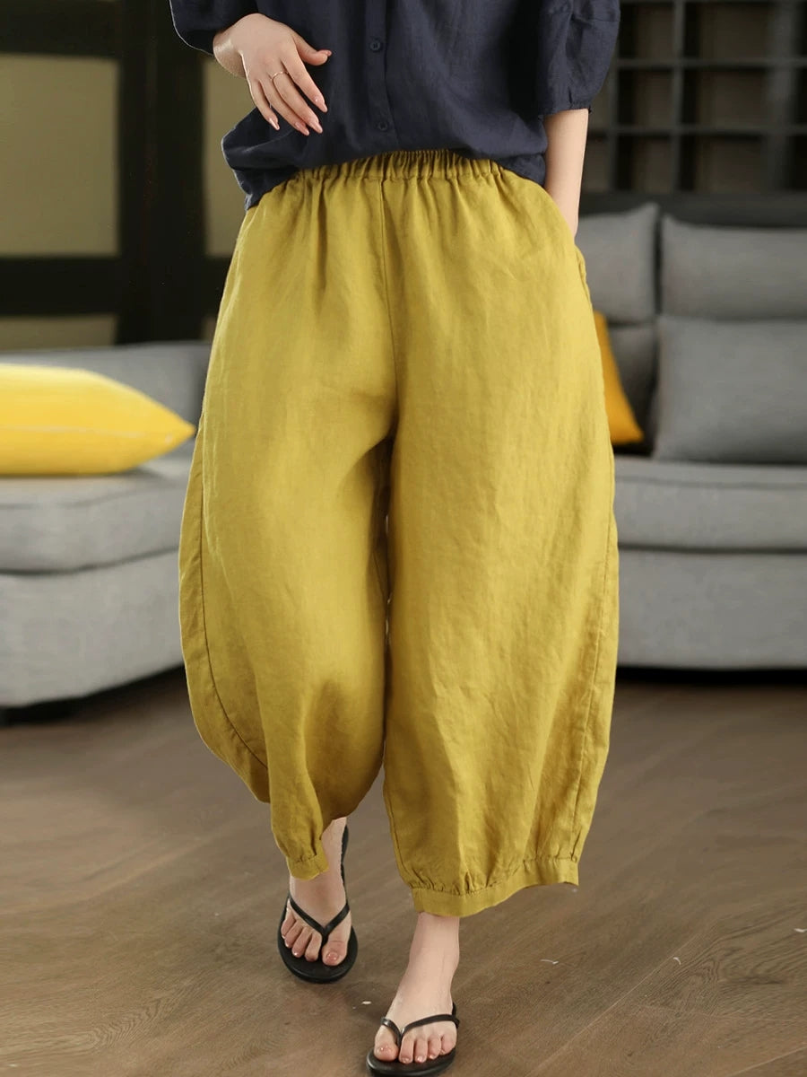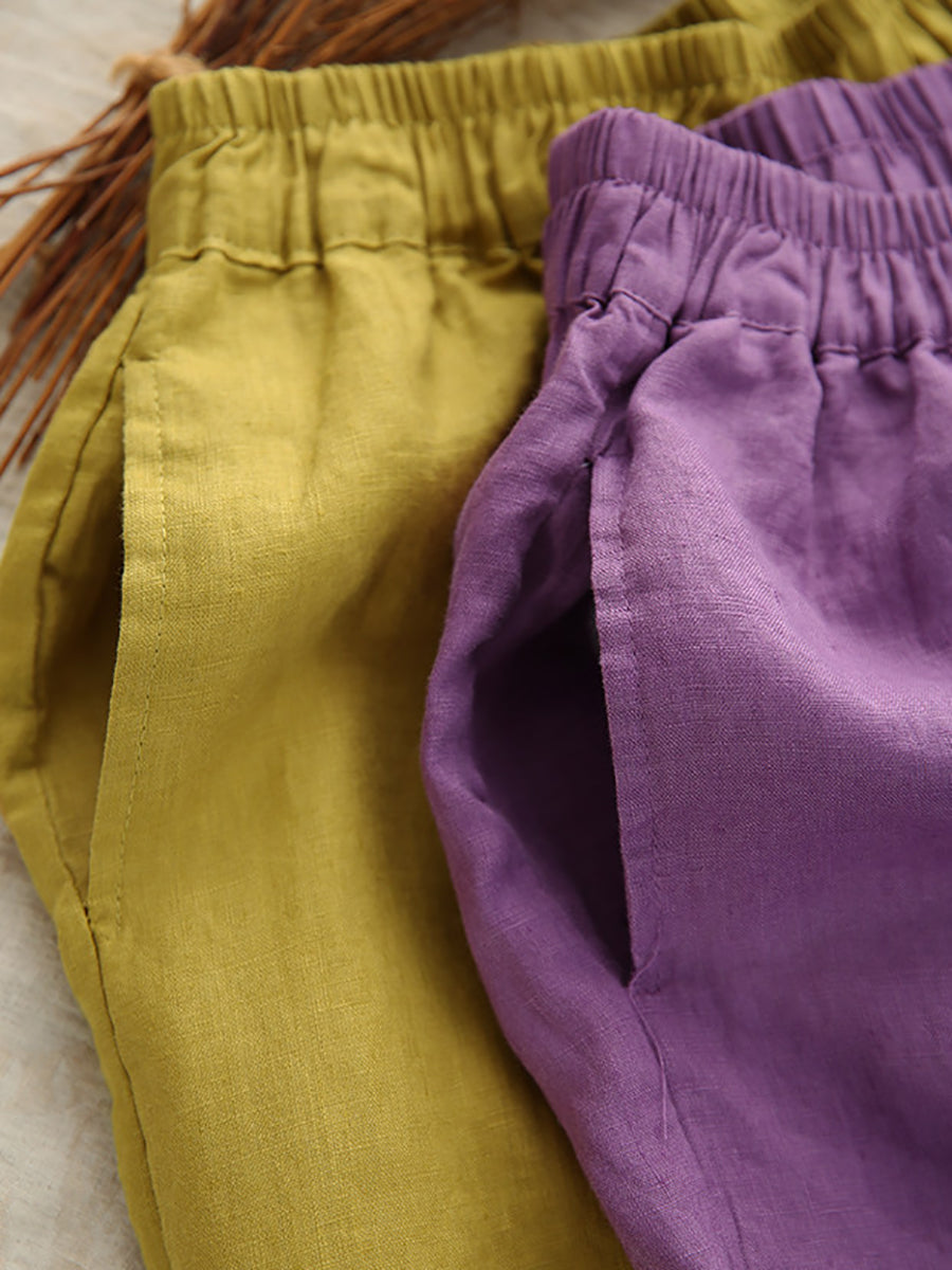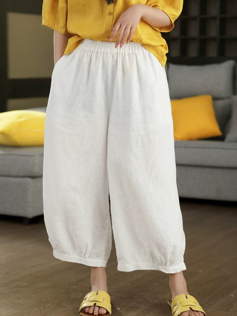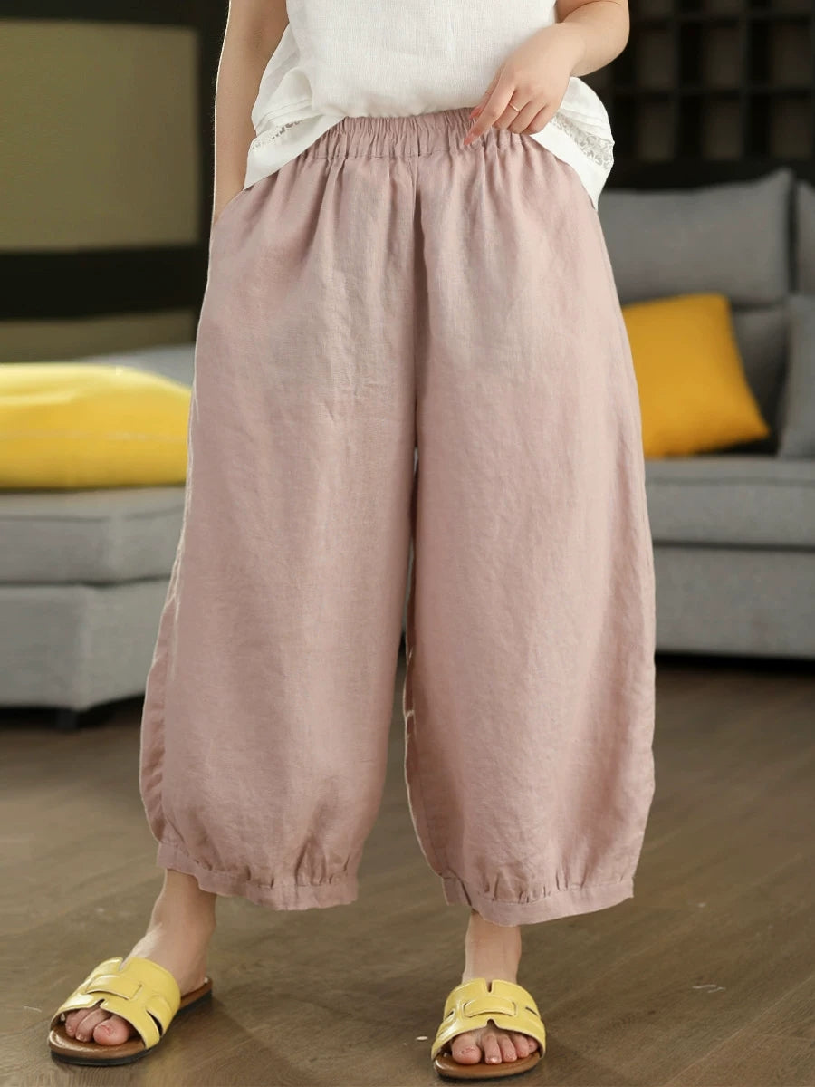 Sommerliche Retro-Bloomers für Damen aus 100 % Leinen in Unifarben