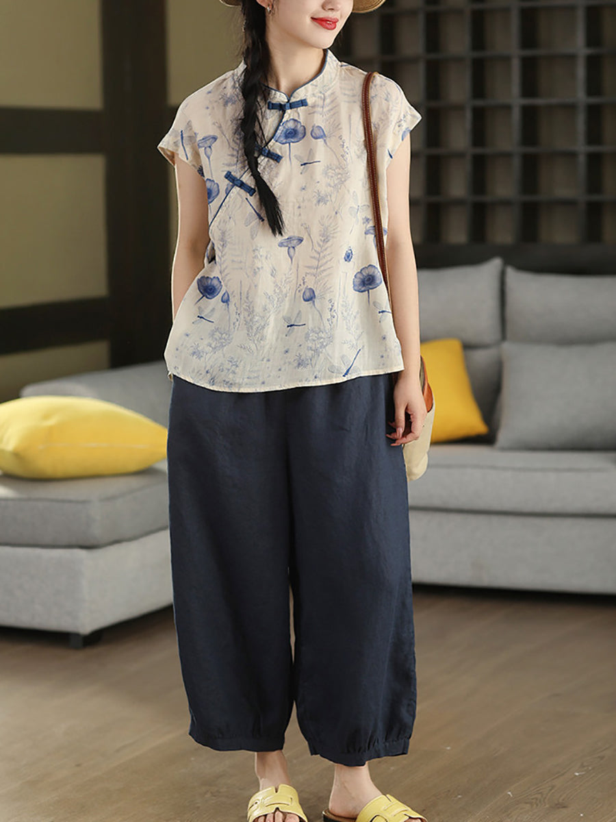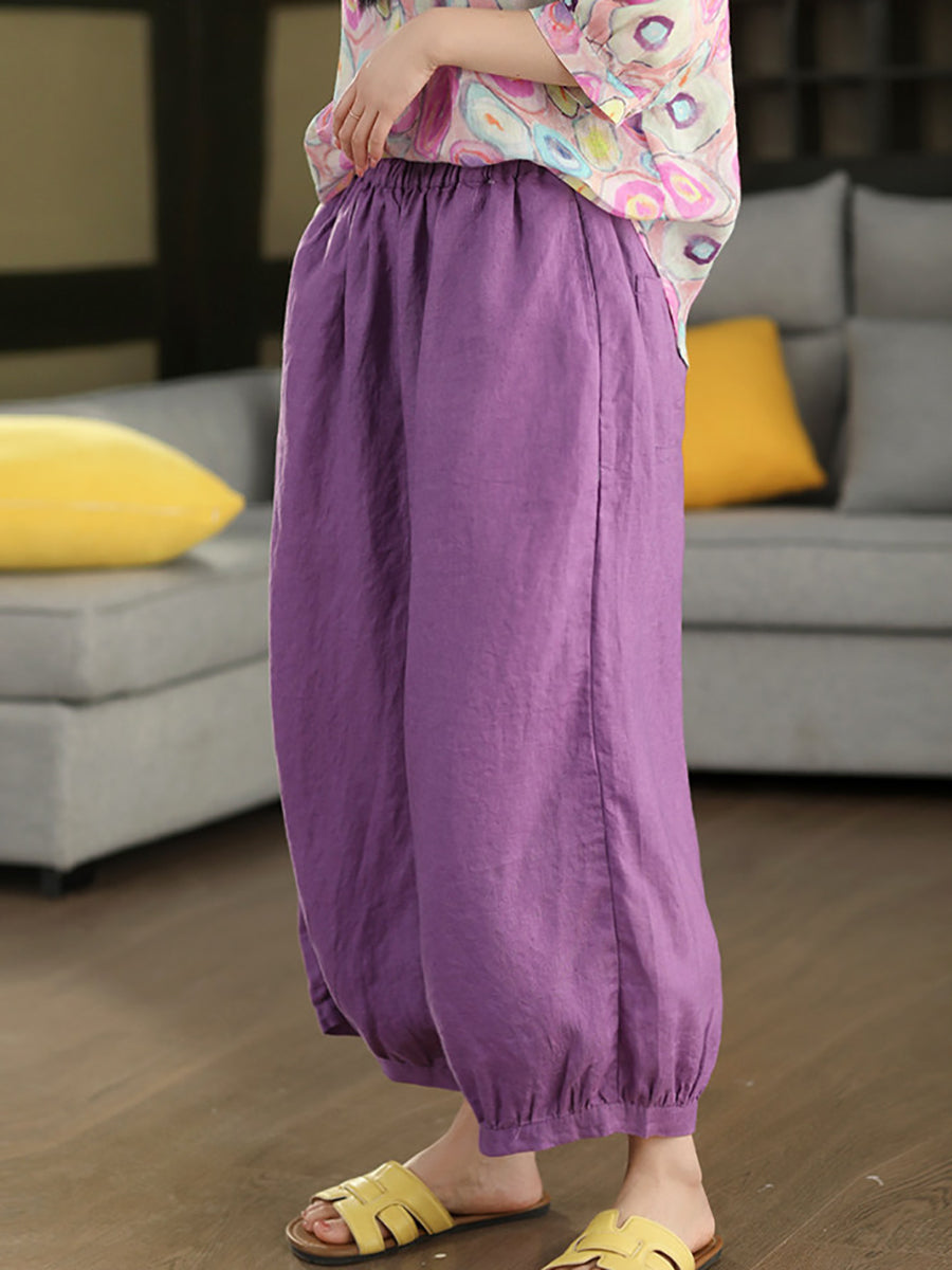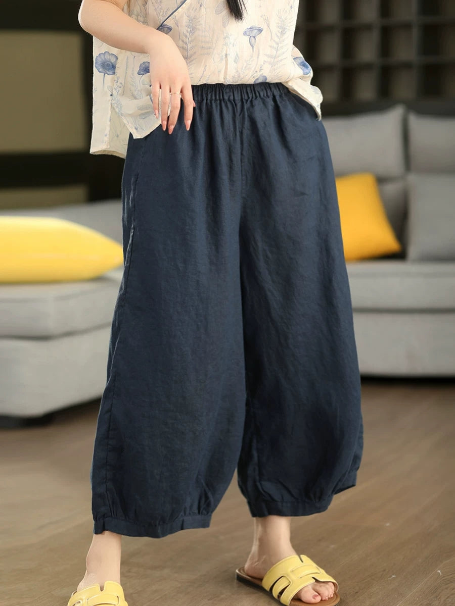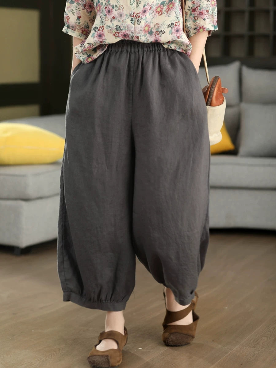 Sommerliche Retro-Bloomers für Damen aus 100 % Leinen in Unifarben