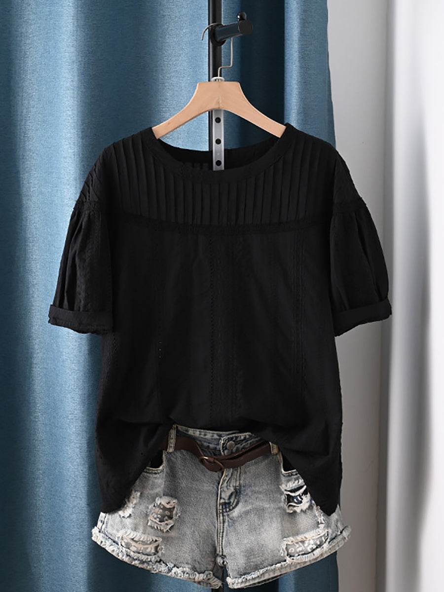 Sommerbluse für Damen mit Raffung und Rundhalsausschnitt aus 100 % Baumwolle