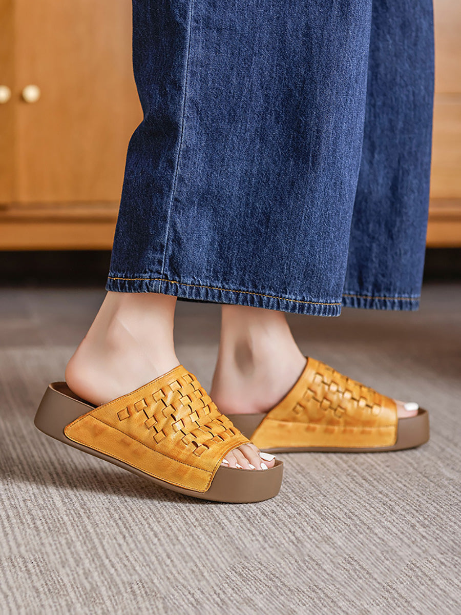 Damen Sommer Hausschuhe aus weichem Echtleder