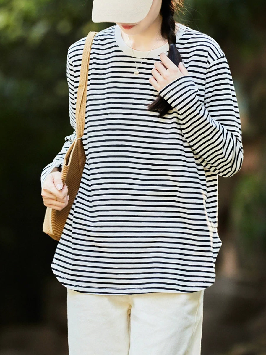 Sommerbluse für Damen mit Streifenmuster und Rundhalsausschnitt aus 100 % Baumwolle