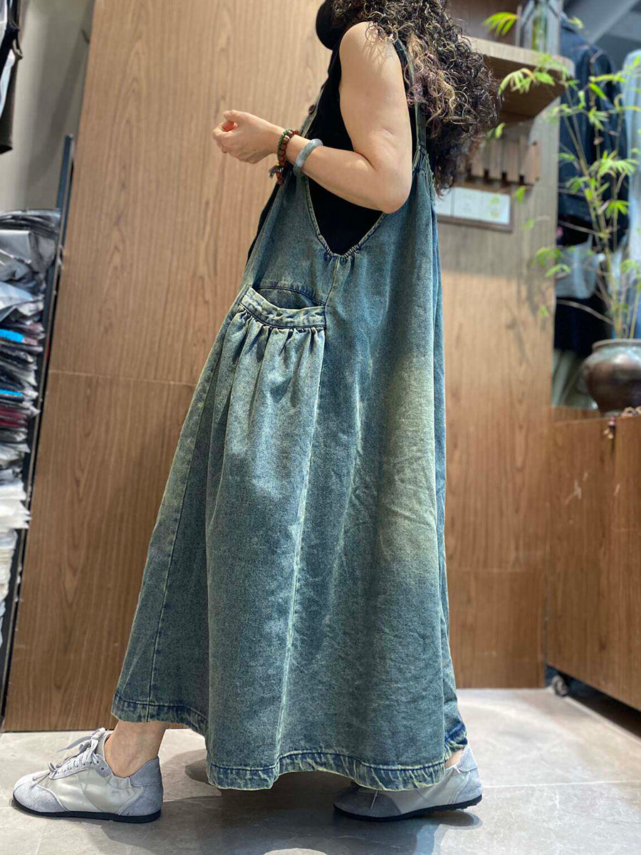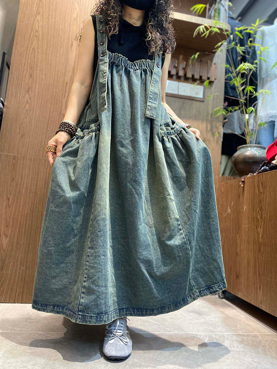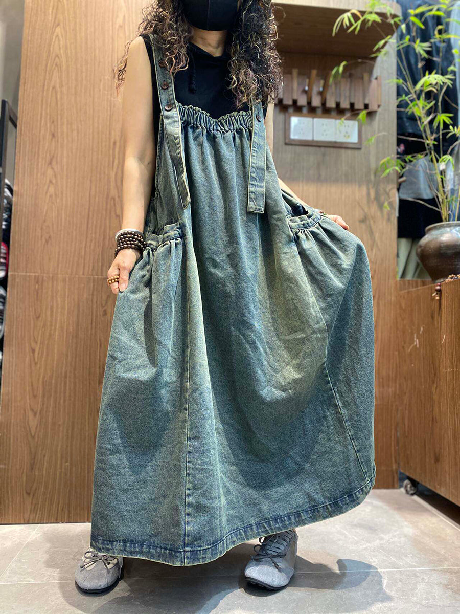 Damen Sommer Vintage Denim Latzkleid