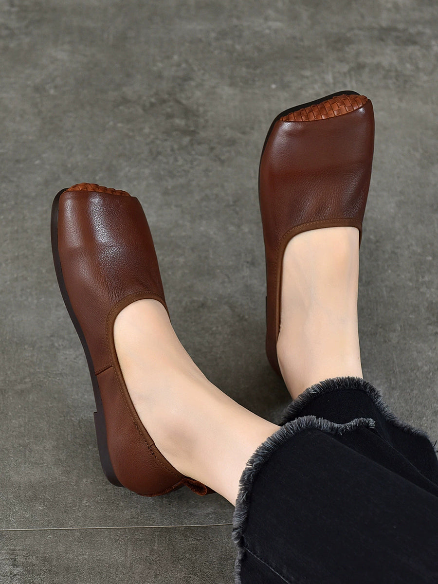 Damen Sommer Vintage Ballerinas aus echtem Leder