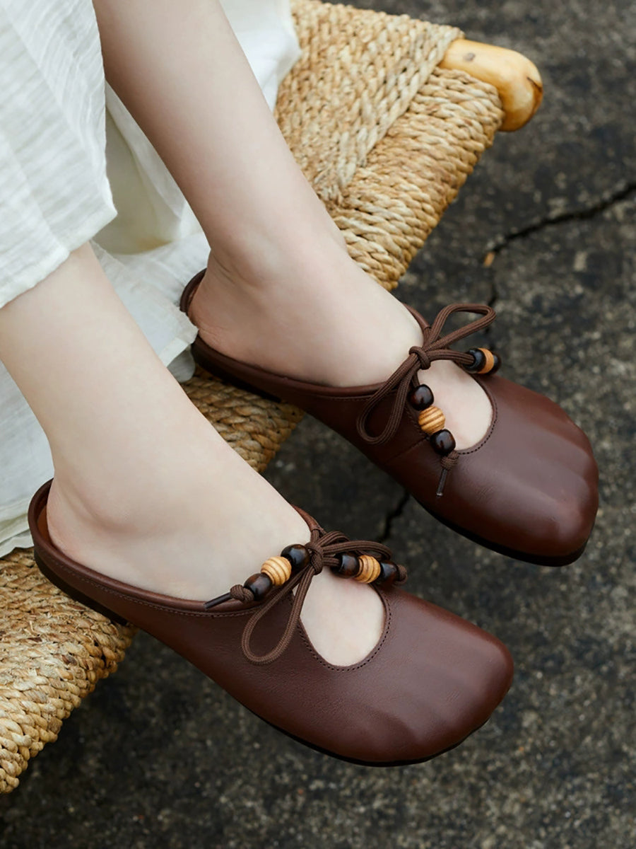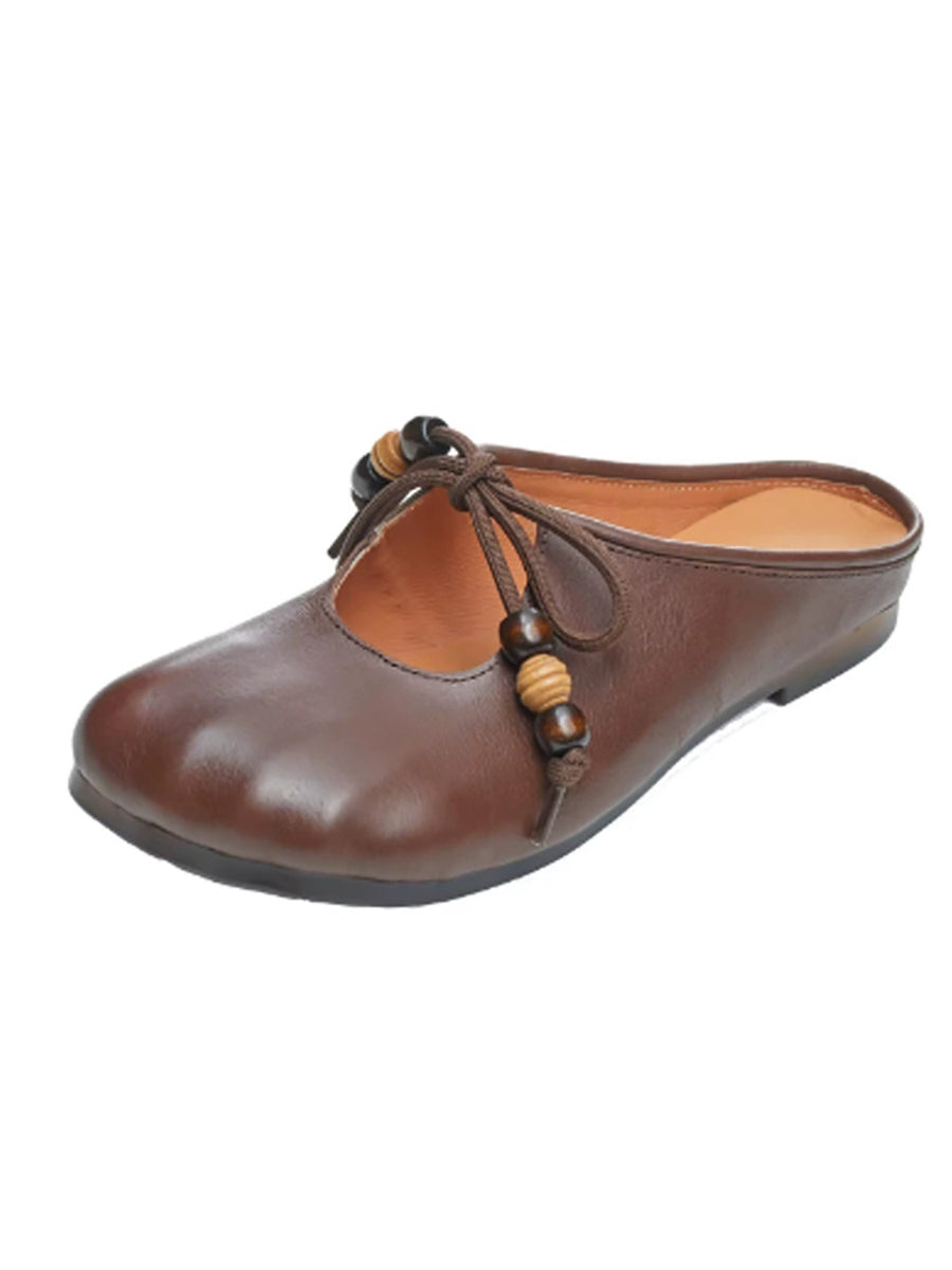Damen Sommer Vintage Hausschuhe aus echtem Leder