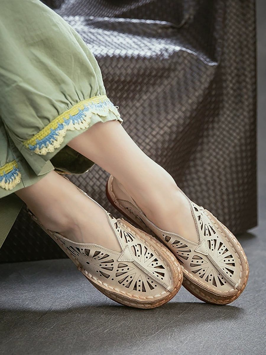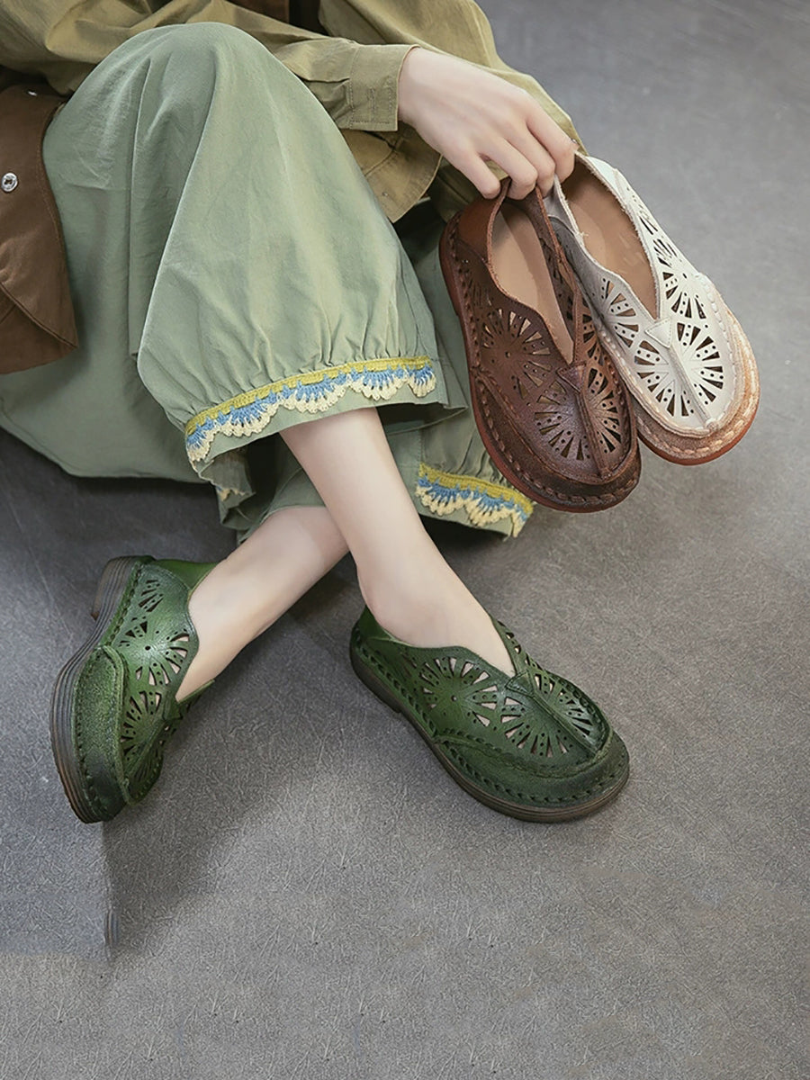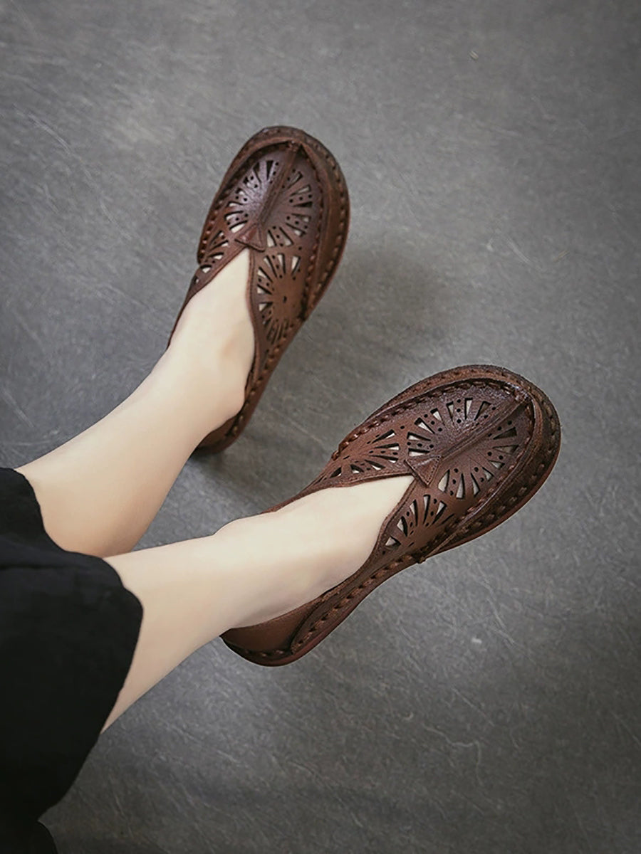Damen Sommer Vintage Ledersandalen mit Lochmuster