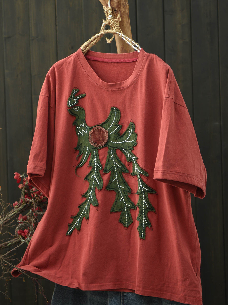 Damen Sommer Vintage Patchwork Rundhals Baumwoll-T-Shirt