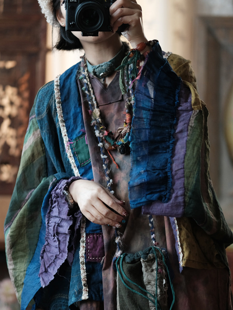 Damen Sommer Vintage Patchwork Ramie Hemd Mantel