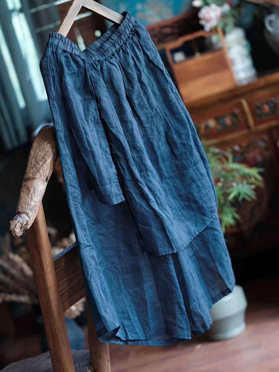 Diese Damen-Sommerhose im Vintage-Stil mit weitem Bein besteht aus 100 % Ramie-Material und zeichnet sich durch einen Retro-Stil mit elastischem Bund und langem Design aus. Perfekt für die Frühlings- und Sommersaison.