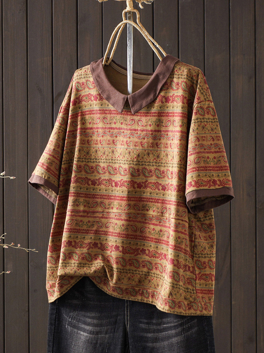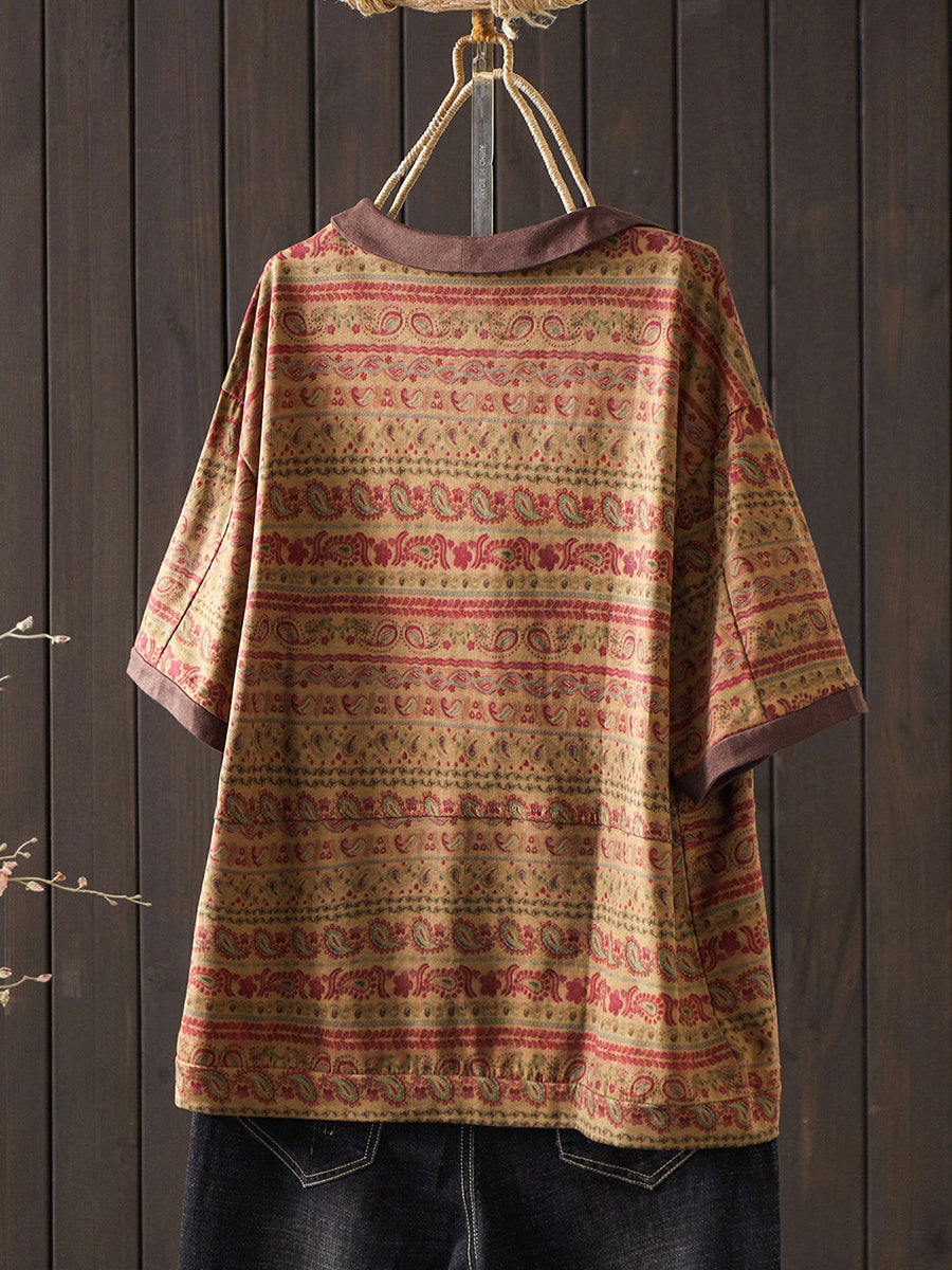 Damen-Sommerbluse im Vintage-Stil mit Umlegekragen aus 100 % Baumwolle