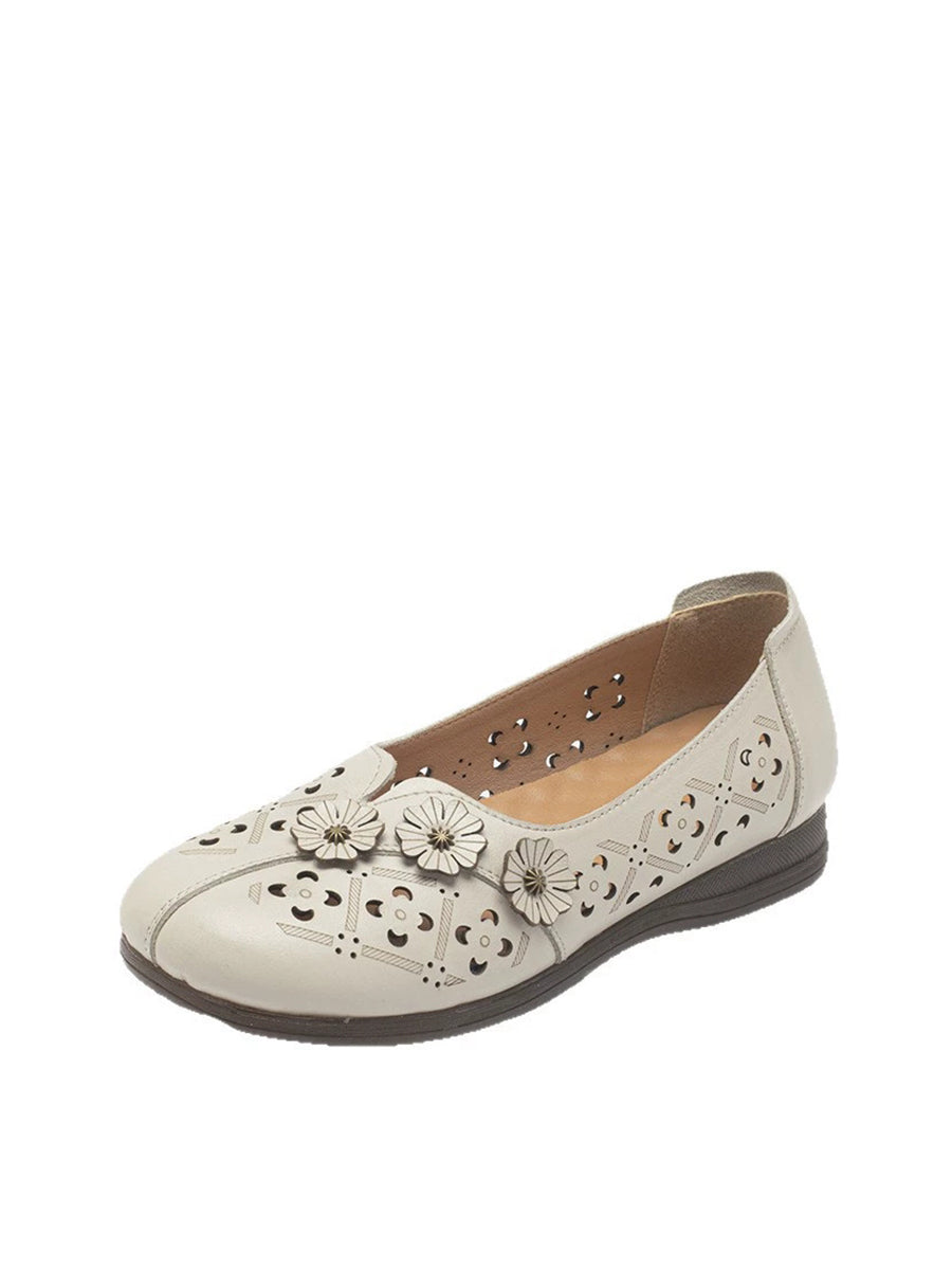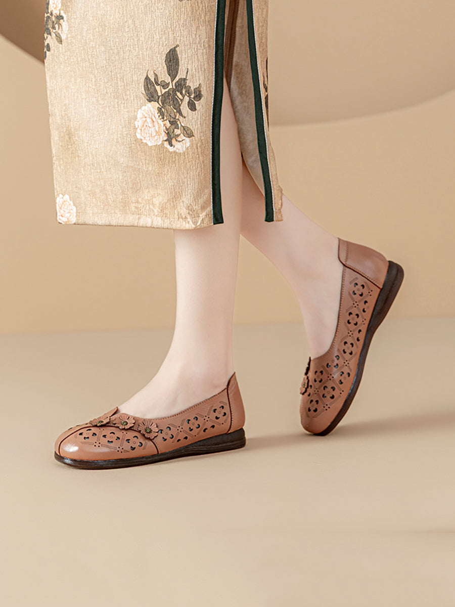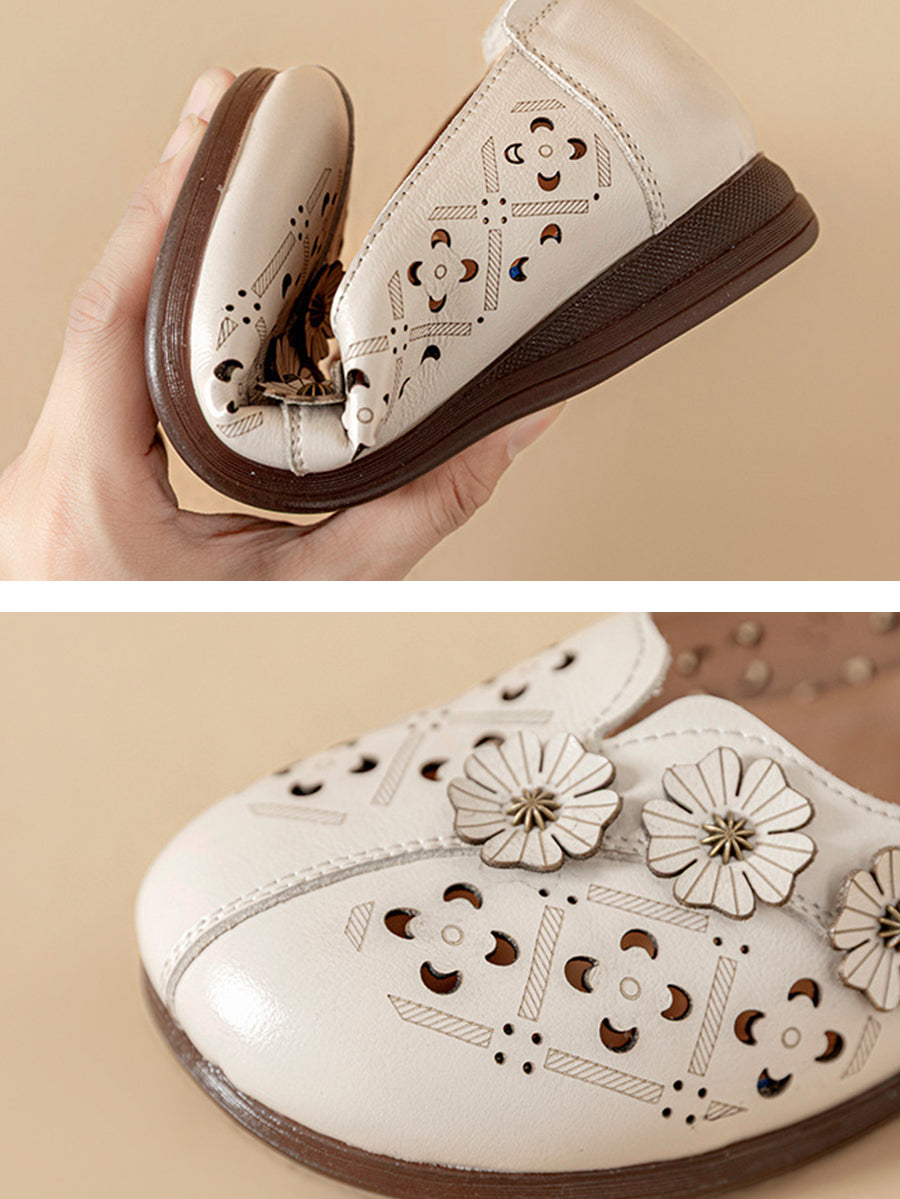 Damen-Sandalen im Vintage-Stil mit Blumenmuster aus echtem Leder