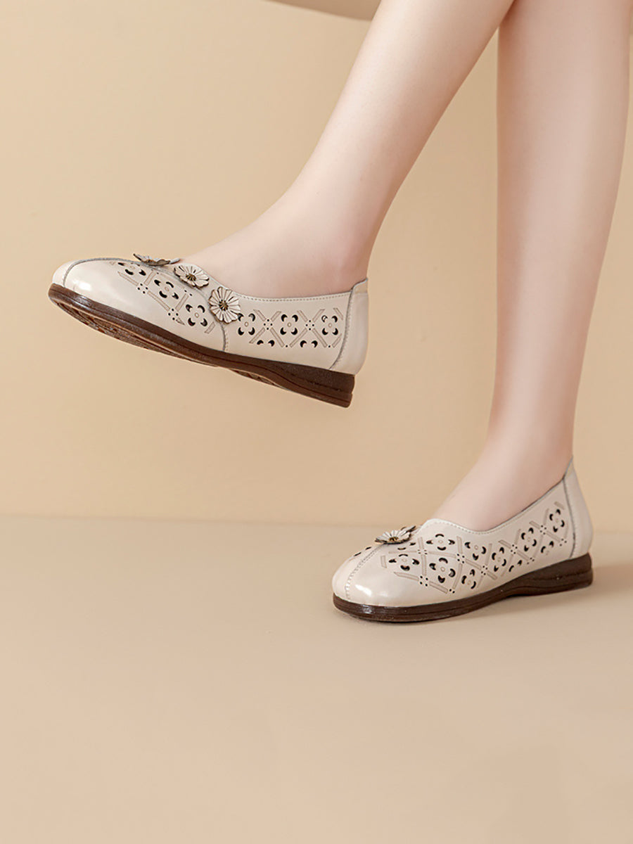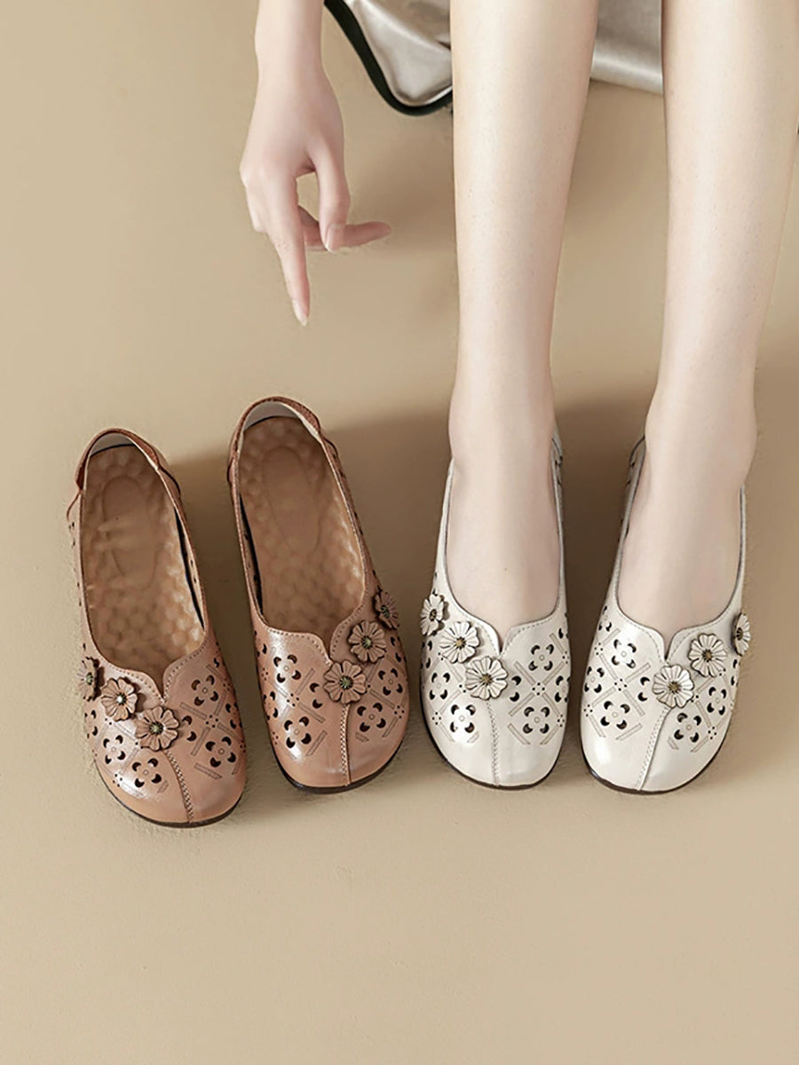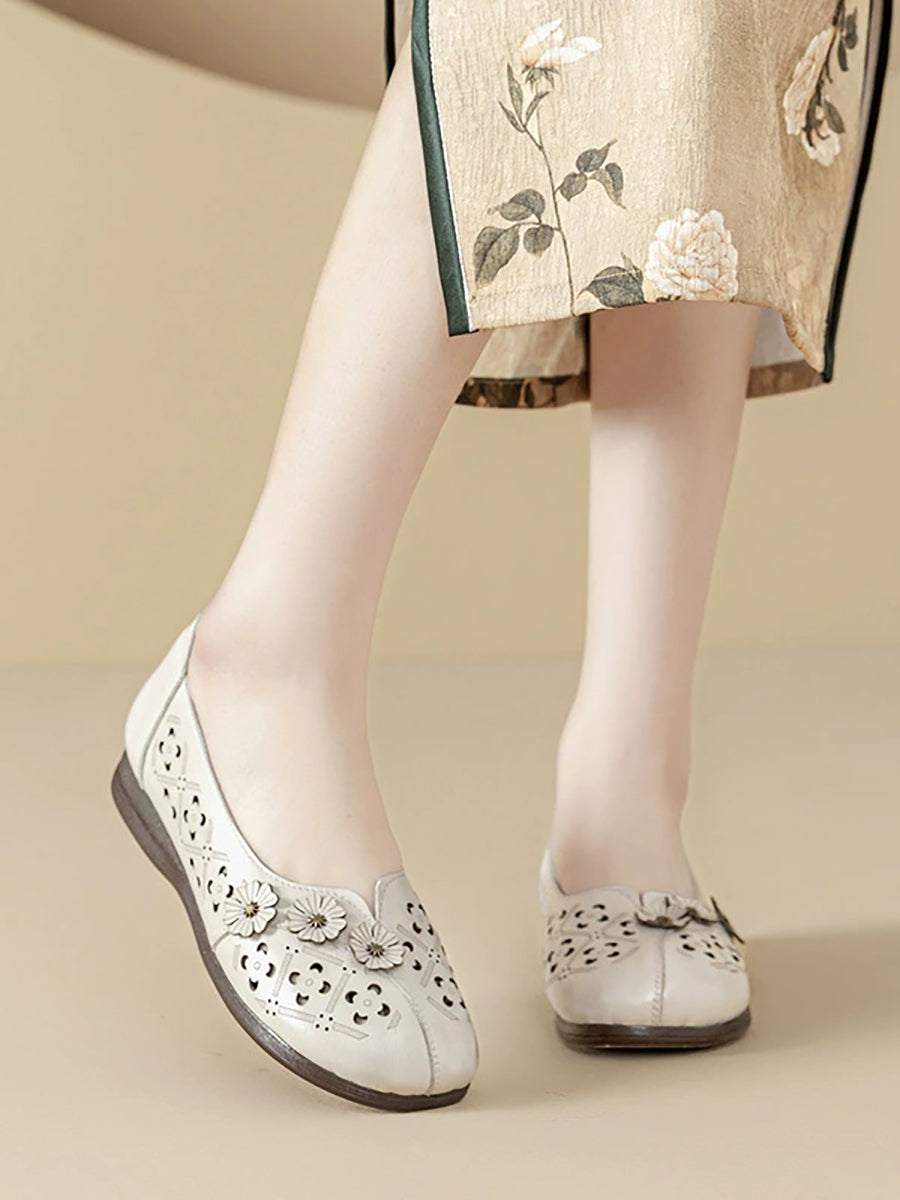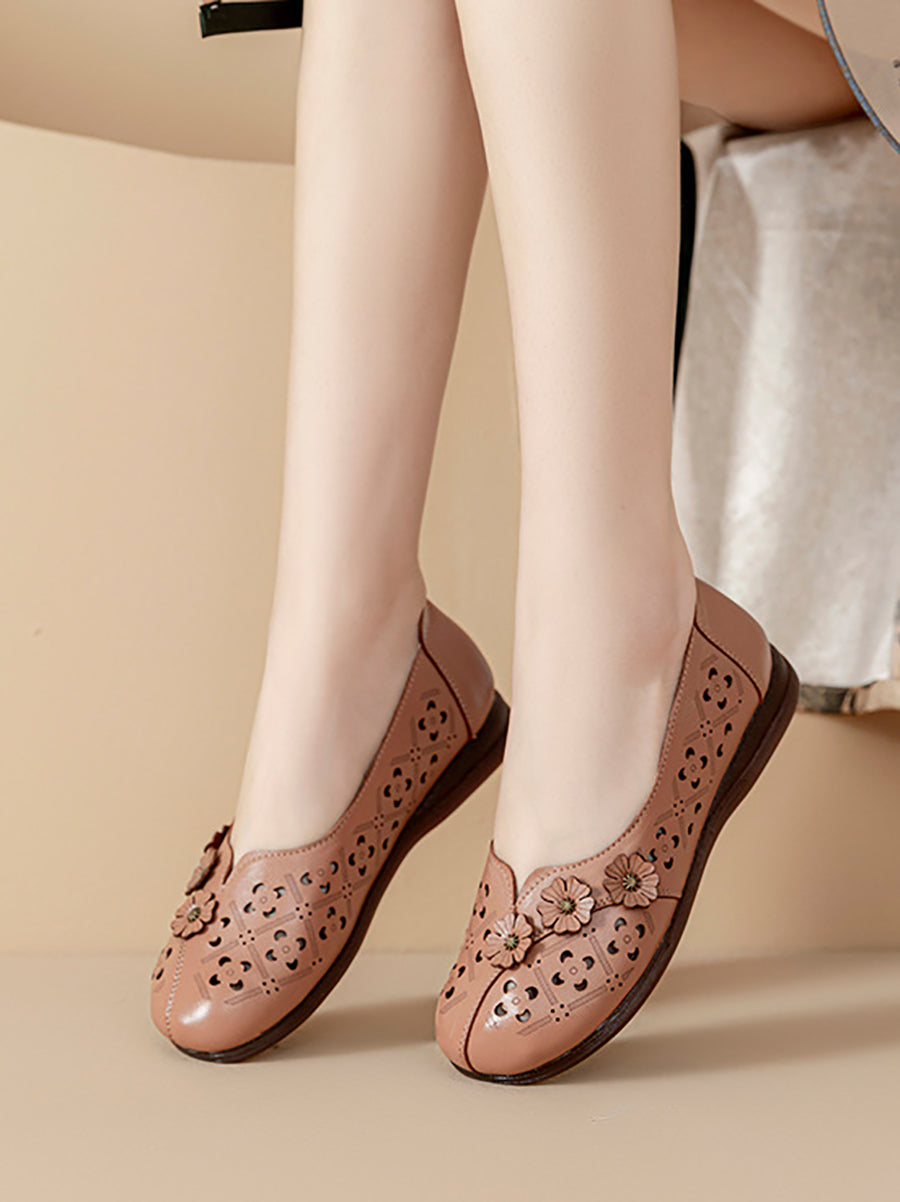 Damen-Sandalen im Vintage-Stil mit Blumenmuster aus echtem Leder