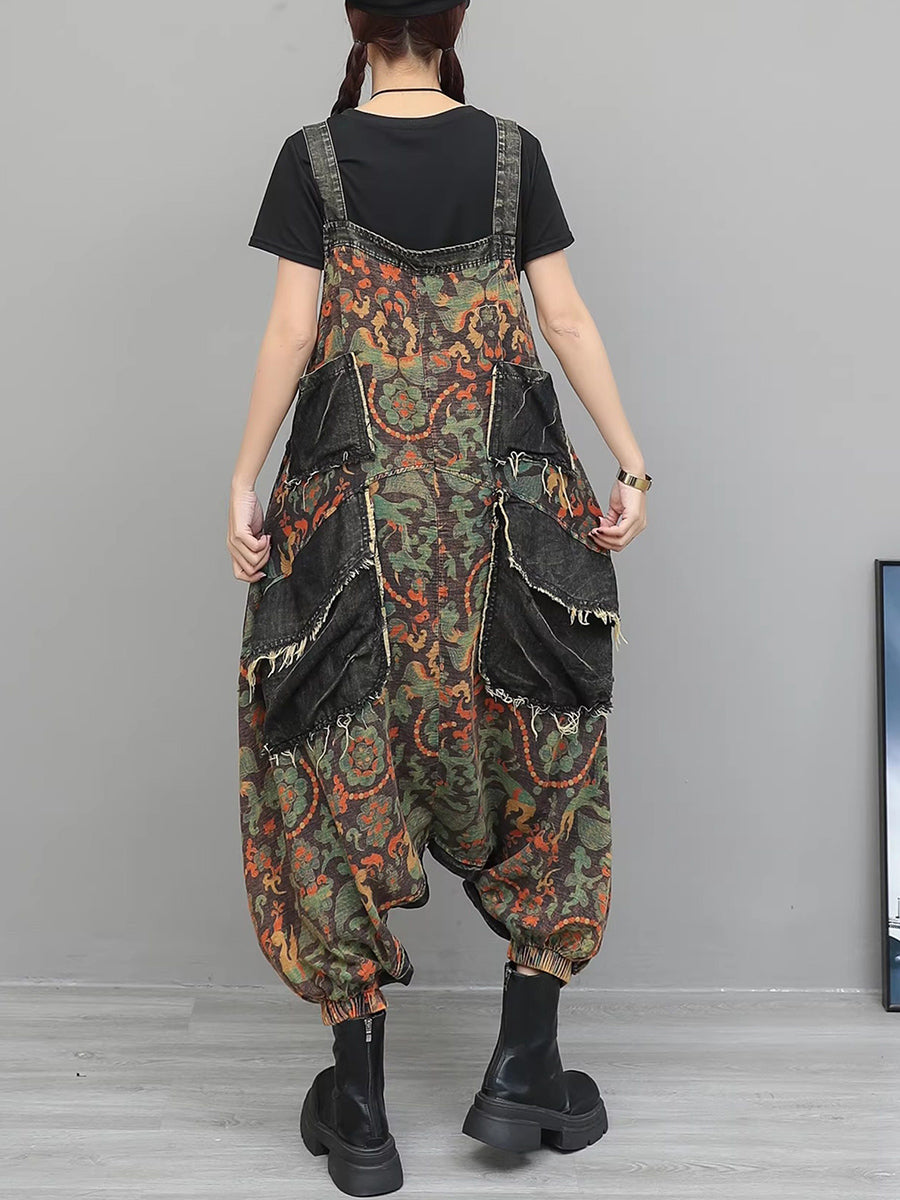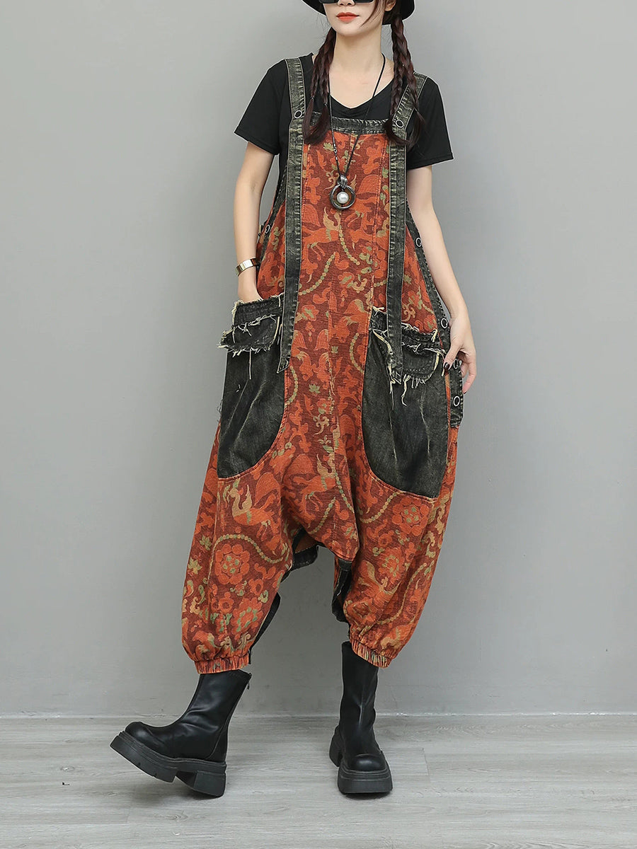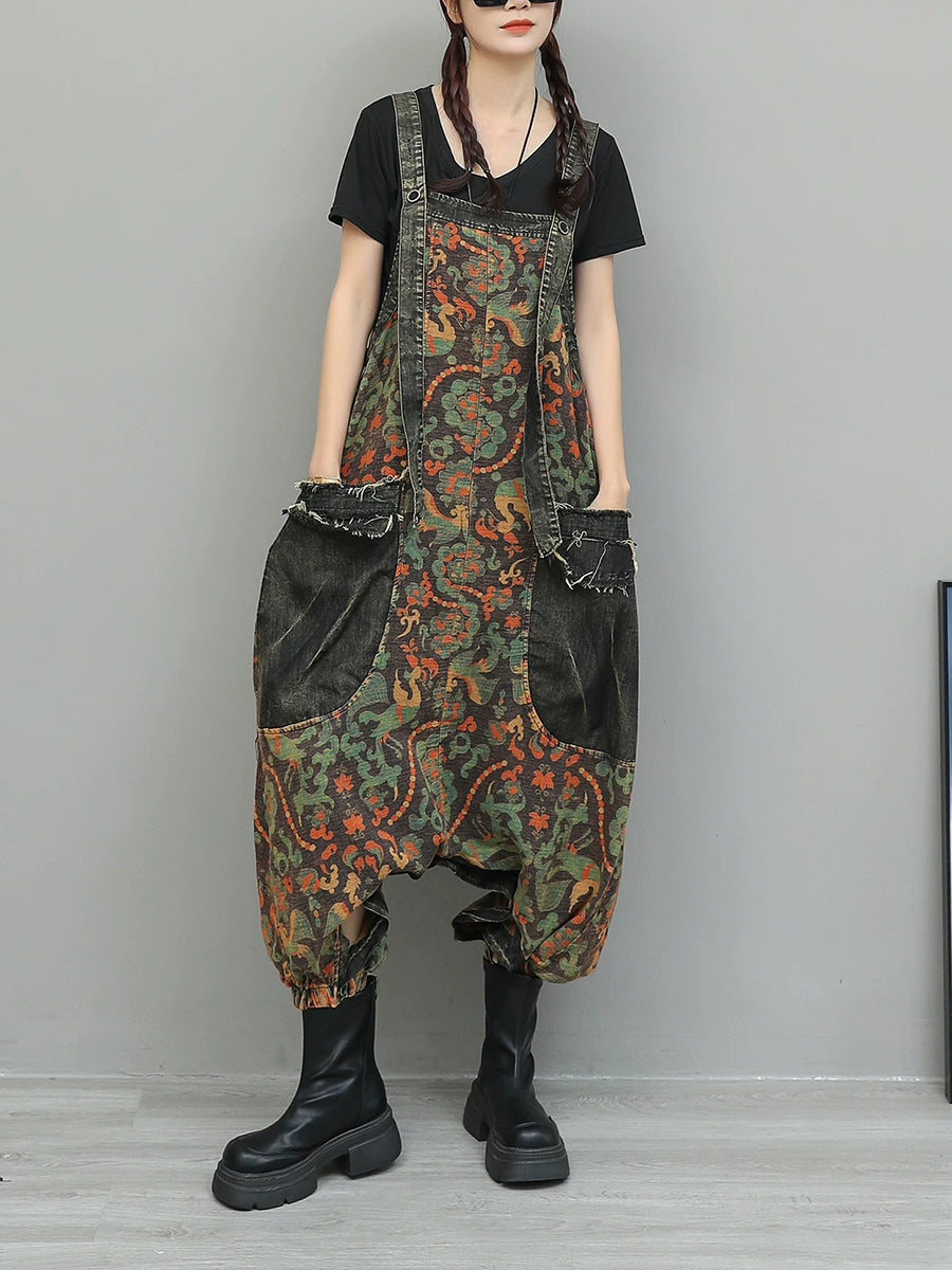 Vintage-Jeansoverall mit Blumenmuster für Damen