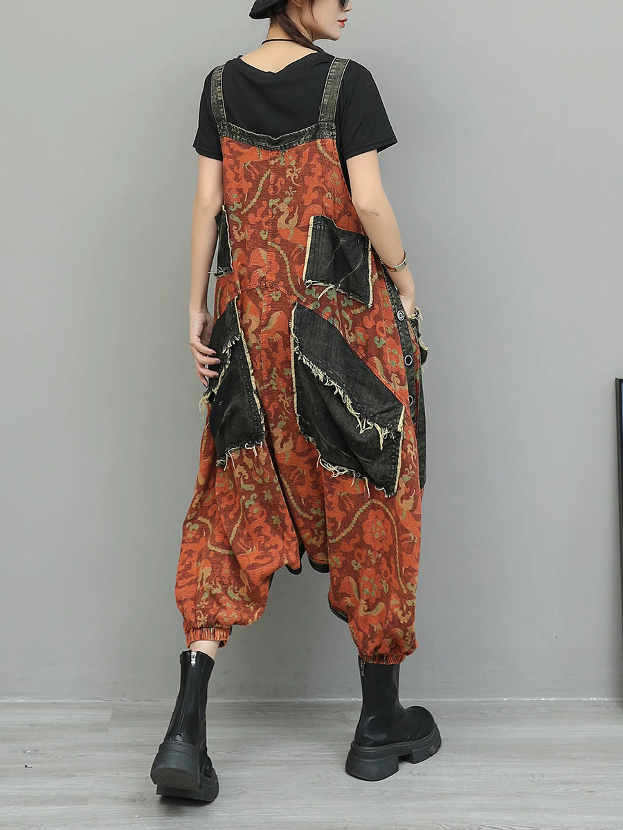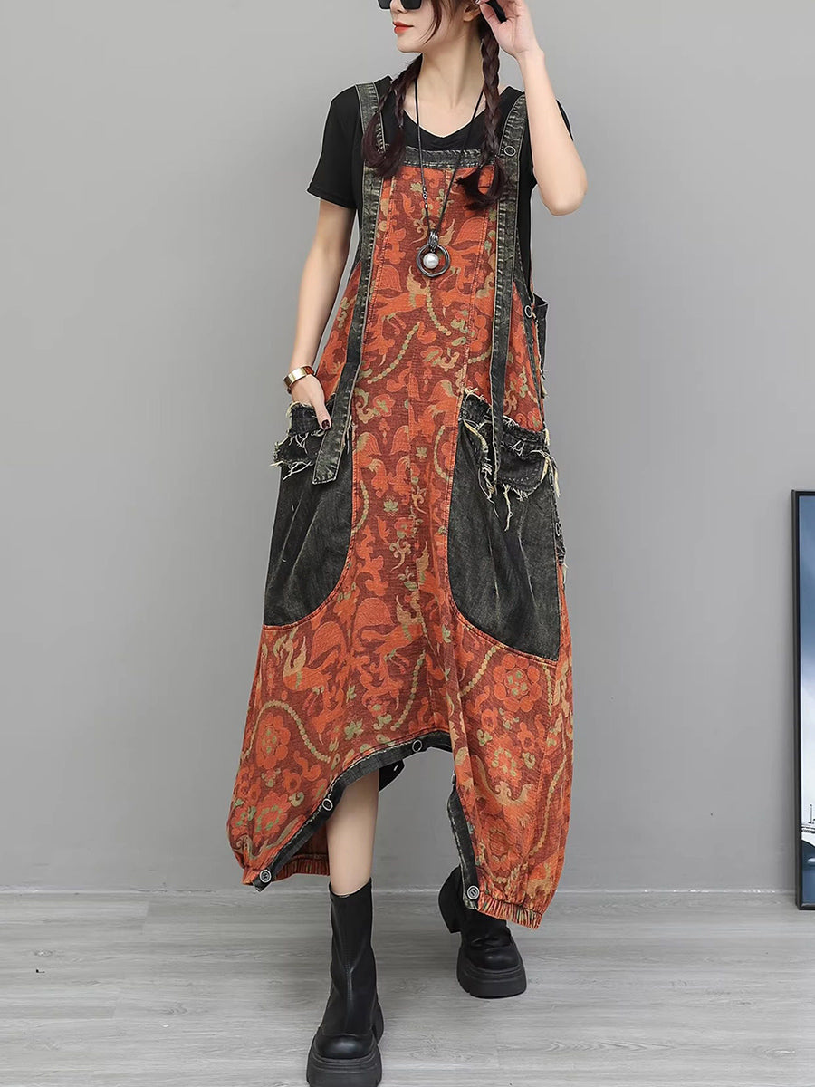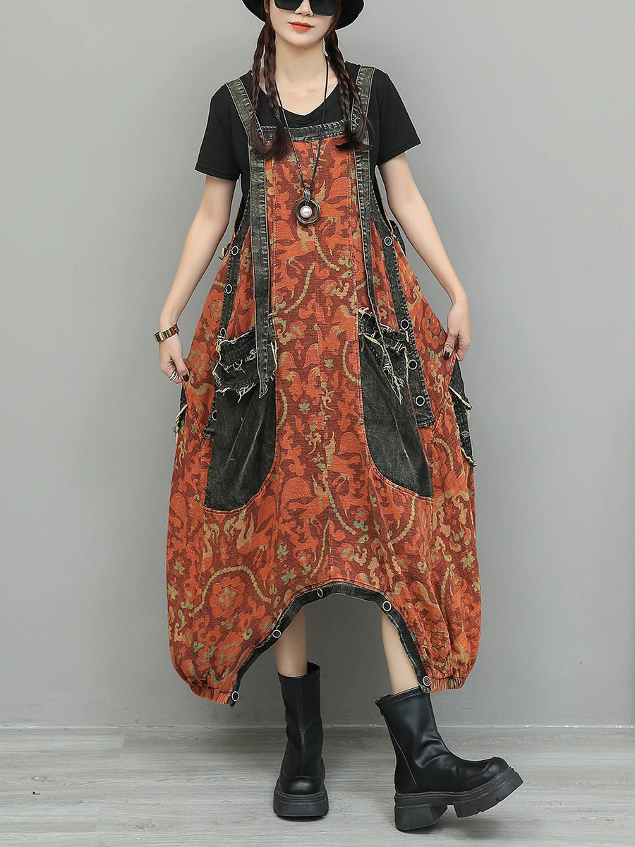 Vintage-Jeansoverall mit Blumenmuster für Damen